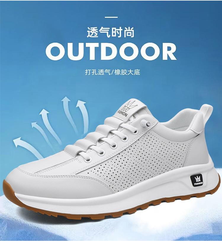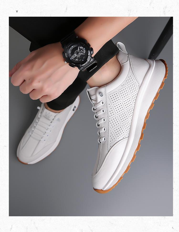 Zapatos de hombre, nuevos zapatos deportivos casuales de verano, zapatillas sin cordones, zapatos blancos de cuero genuino para hombre, zapatos de cuero hueco, zapatos de moda para hombre
