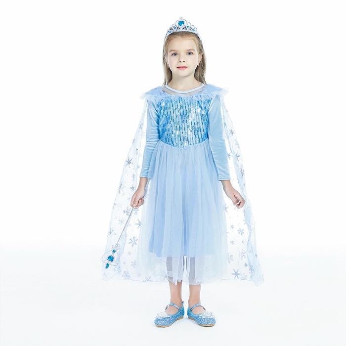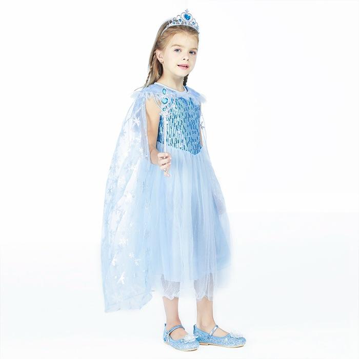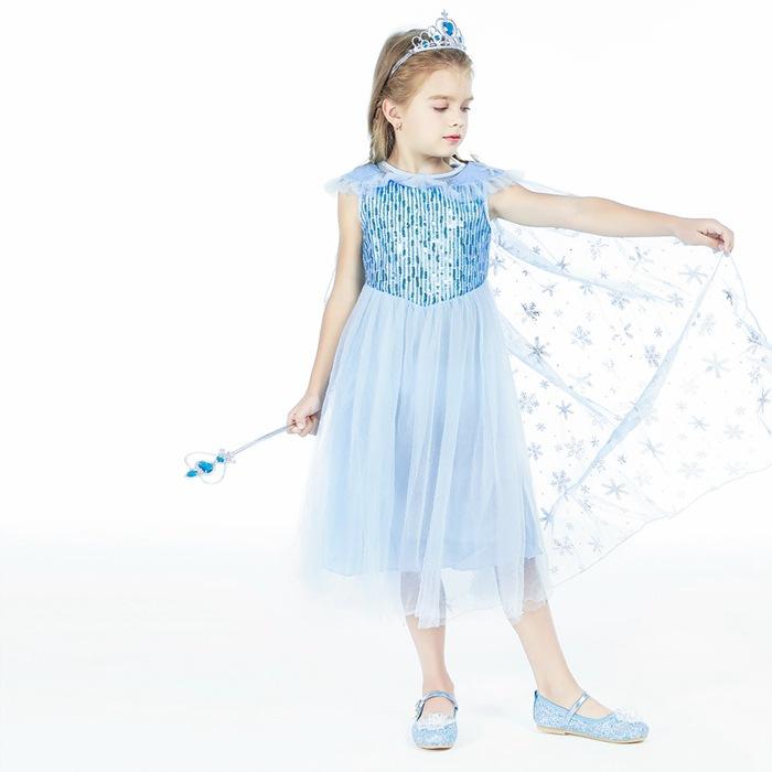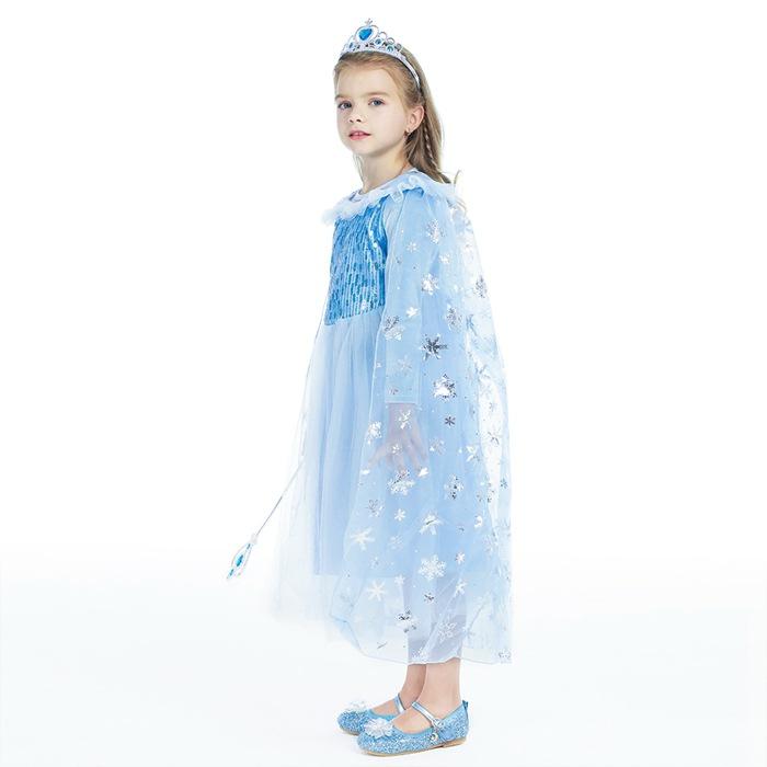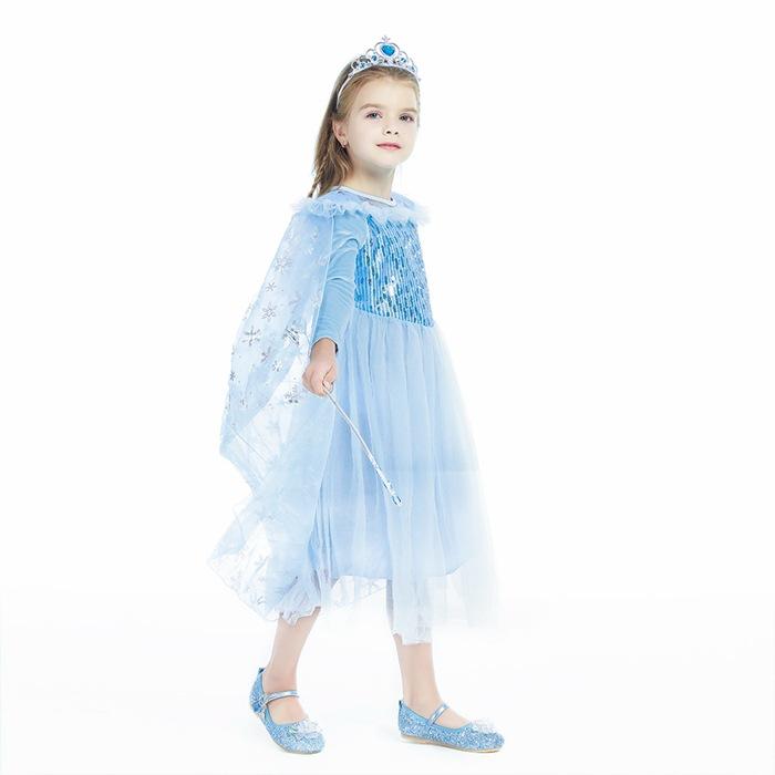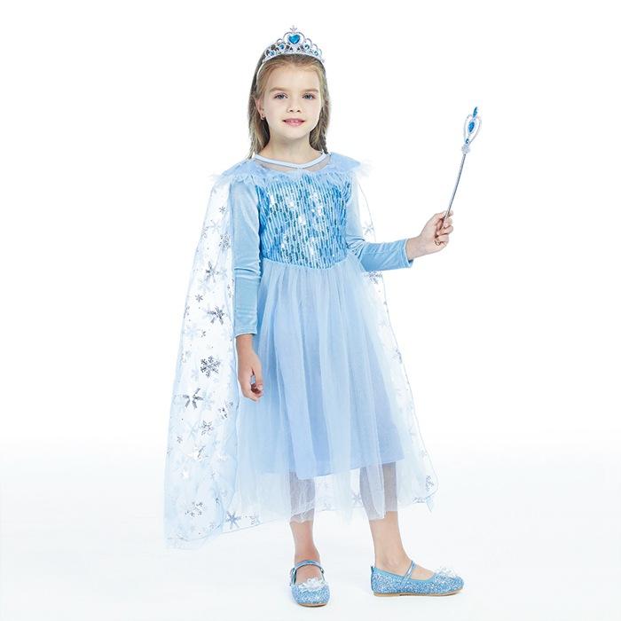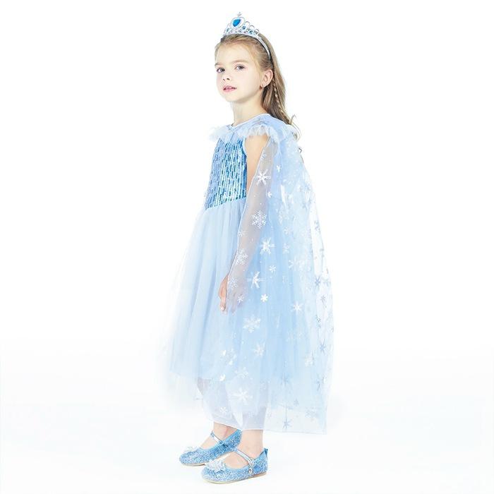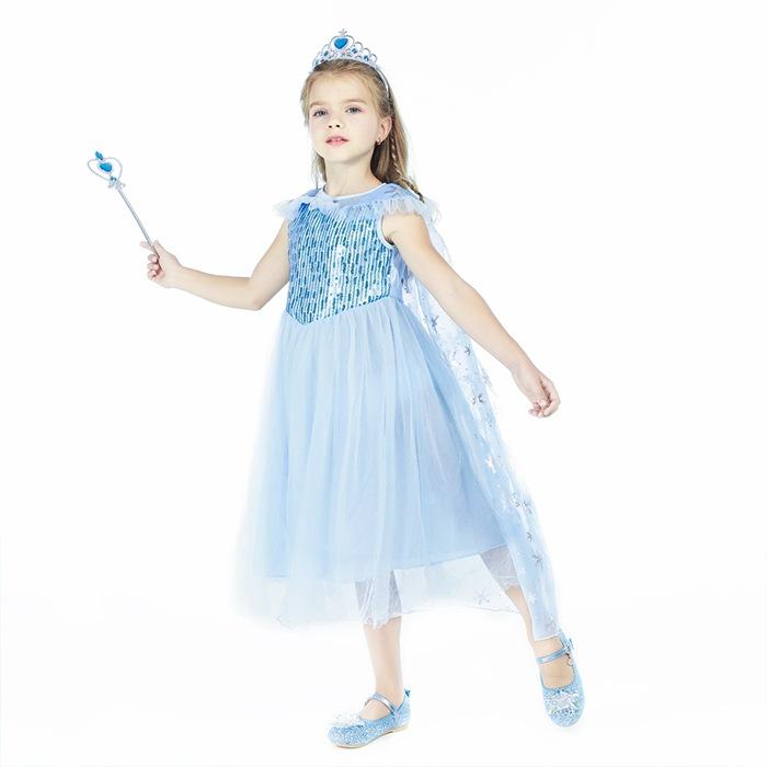 2021 Nuevo Vestido de Princesa Congelada Aisha Europeo y Americano Nuevo Vestido de Actuación para Niños Vestido con Capa de Lentejuelas
