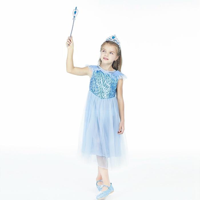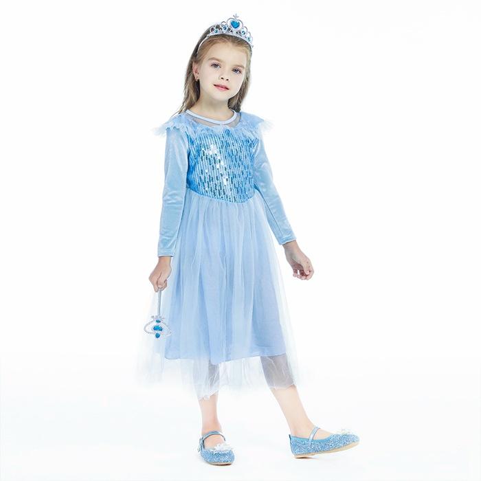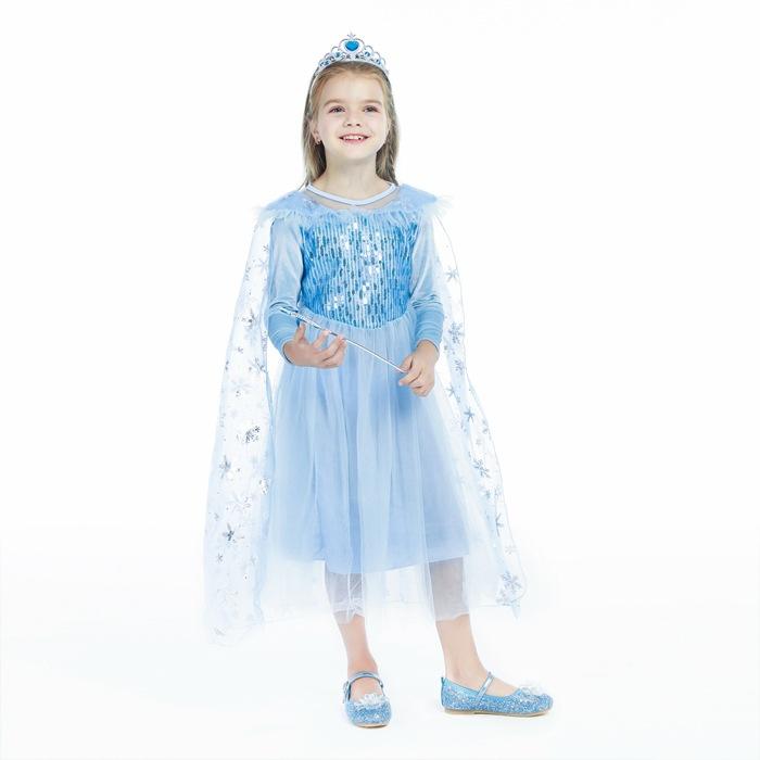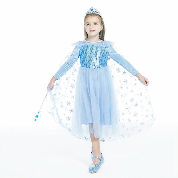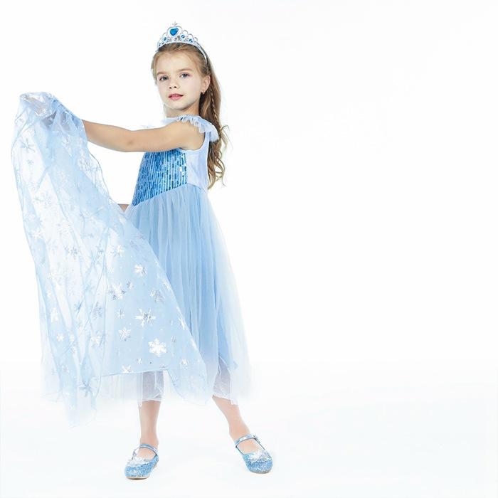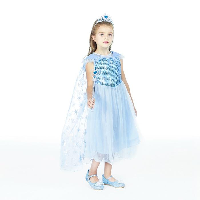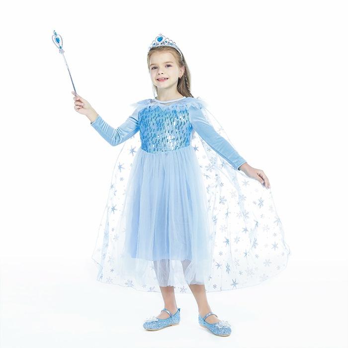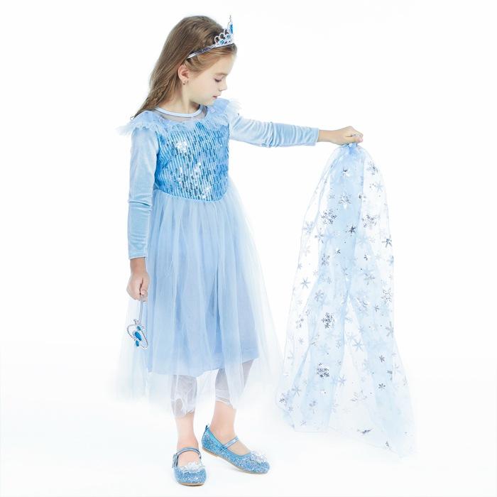 2021 Nuevo Vestido de Princesa Congelada Aisha Europeo y Americano Nuevo Vestido de Actuación para Niños Vestido con Capa de Lentejuelas