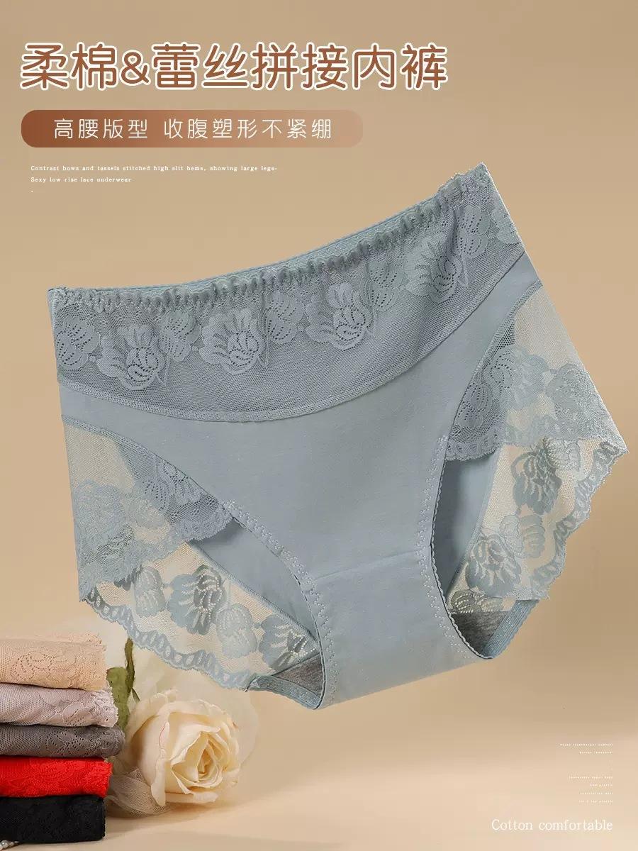 Ropa interior para niñas, de verano, ligera, sexy, de encaje, transpirable, de puro algodón grafeno, cintura alta, tallas grandes, que contrae el vientre, bragas para mujer
