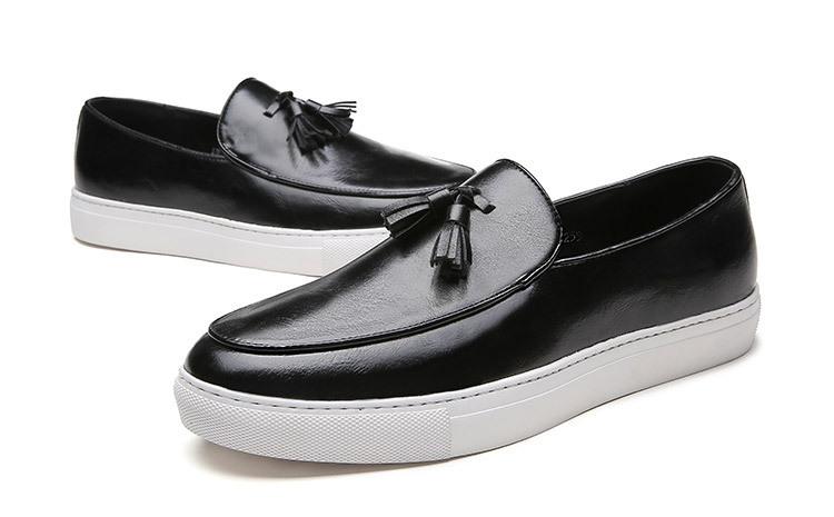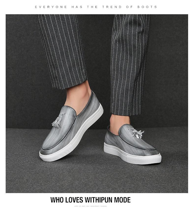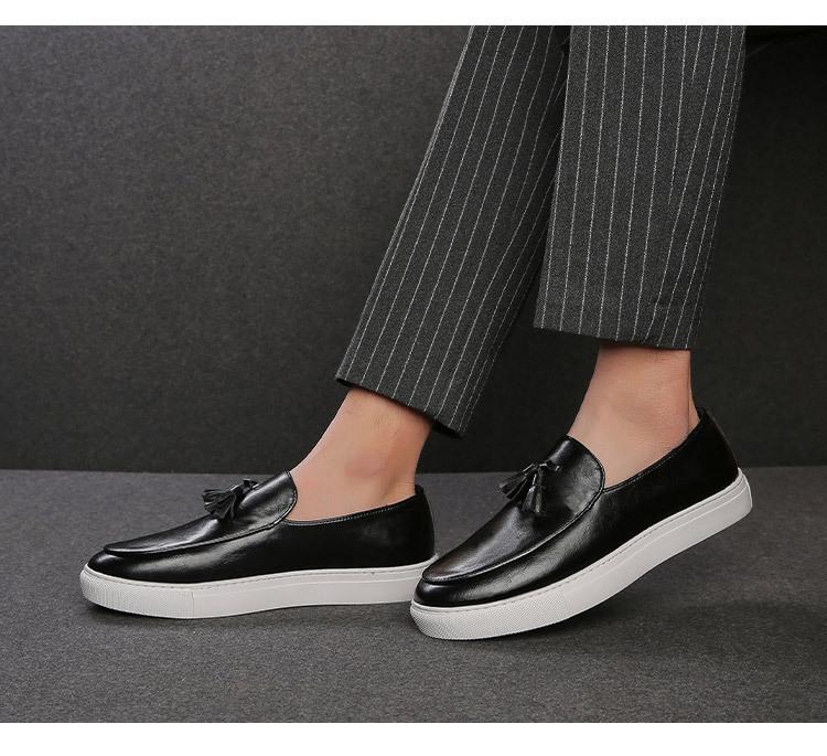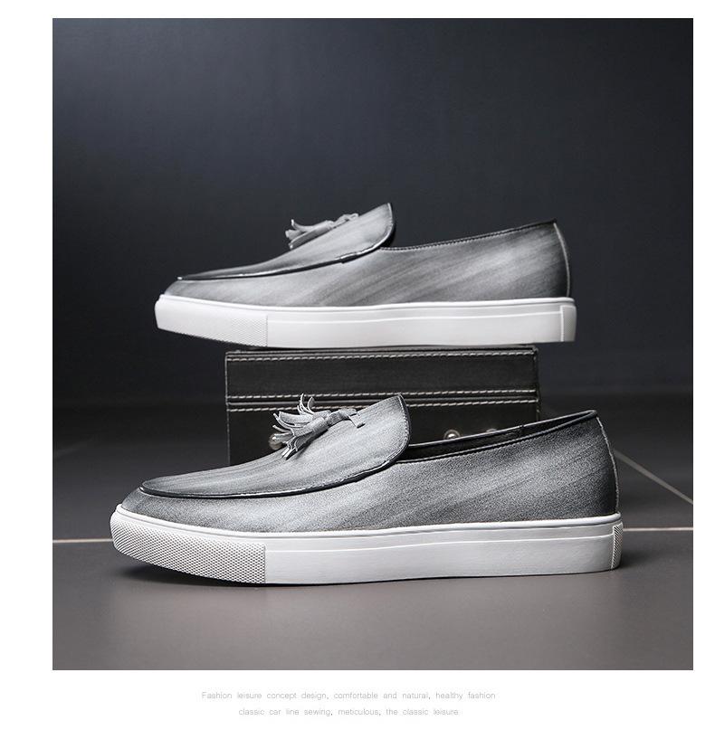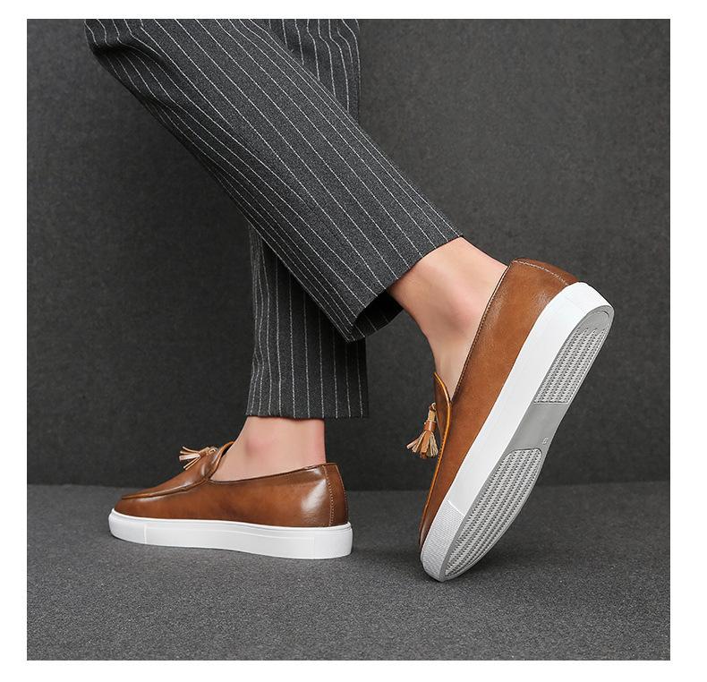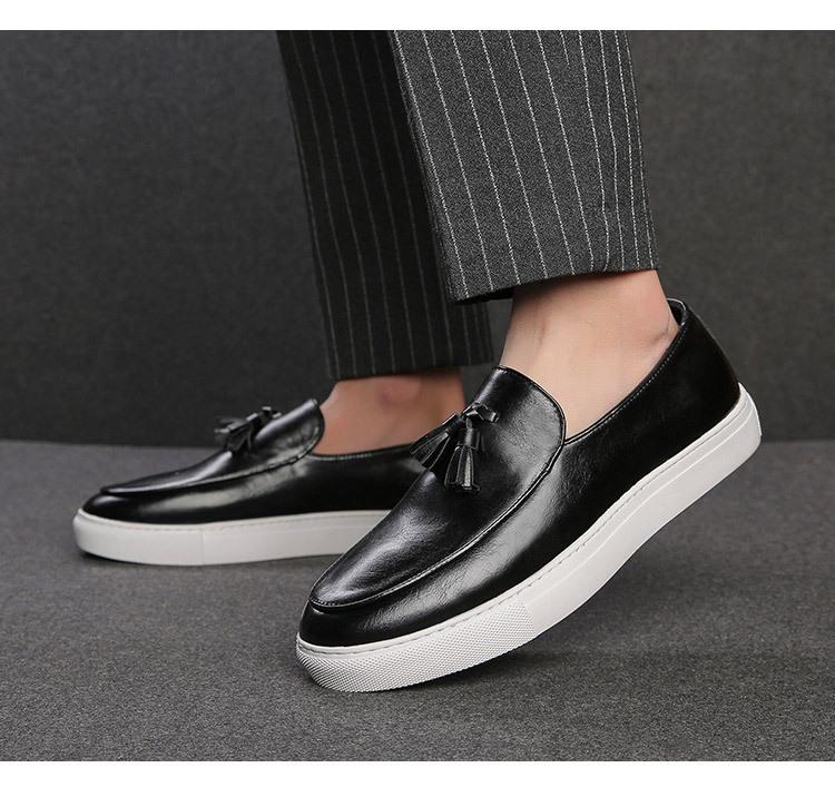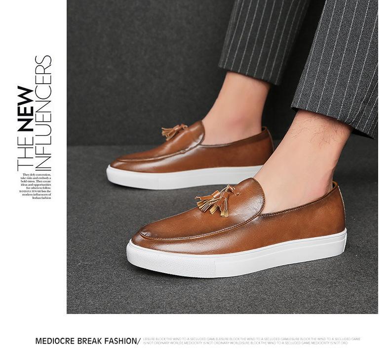 Zapatos de Hombre Talla Grande 46 Transfronterizos Primavera Negocios Slip-On Borlas Tenis Zapatos de Cuero Casuales Slip-On para Hombre de Color Puro a la Moda