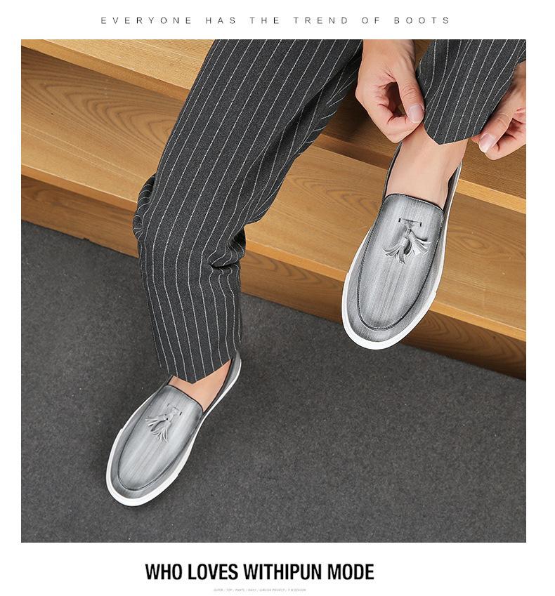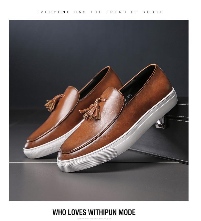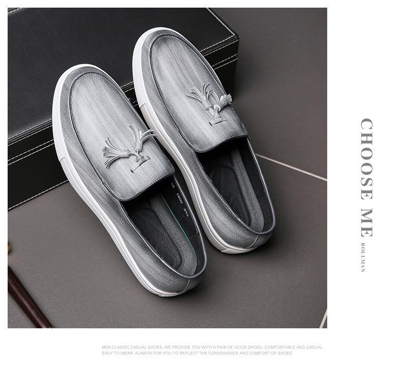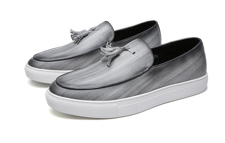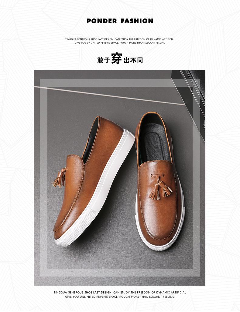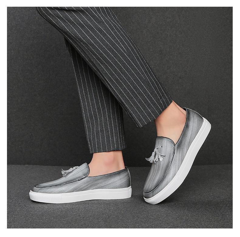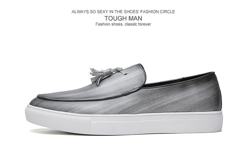 Zapatos de Hombre Talla Grande 46 Transfronterizos Primavera Negocios Slip-On Borlas Tenis Zapatos de Cuero Casuales Slip-On para Hombre de Color Puro a la Moda