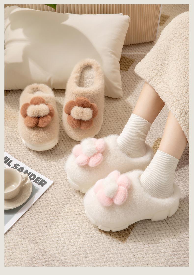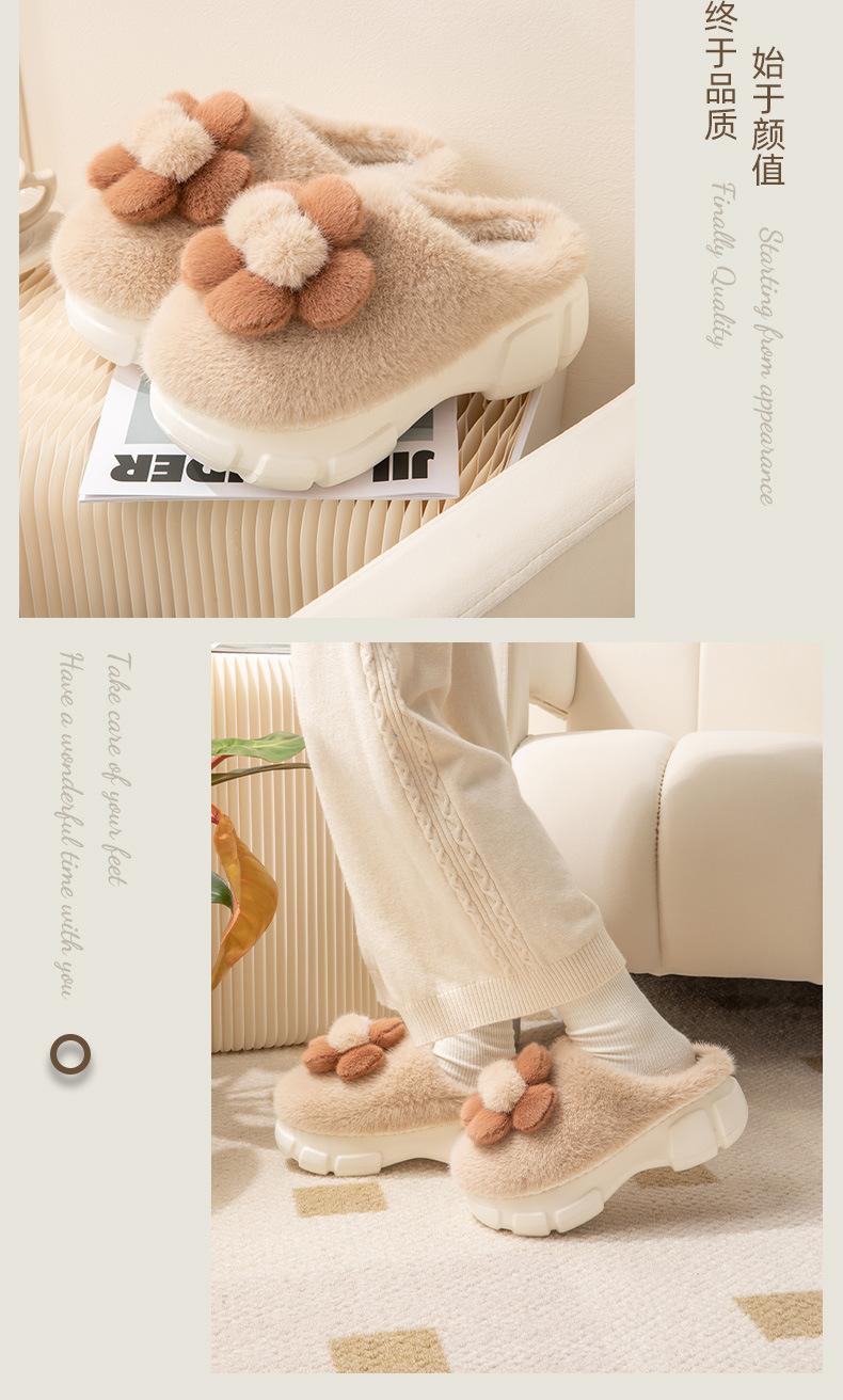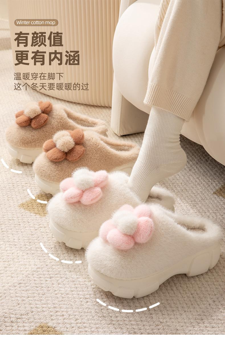 Zapatillas de algodón cálidas Nanbowan para mujer, de invierno, con pequeñas flores, estilo coreano, suela gruesa, con aumento de EVA, para interiores y hogares, venta al por mayor