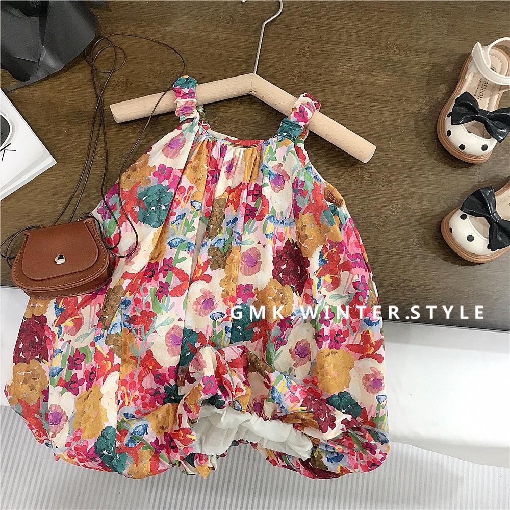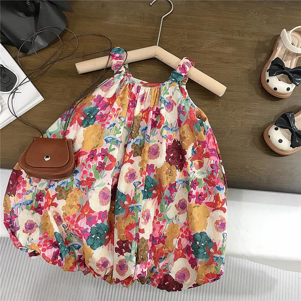 Verano Nuevo Niña Elegante Vestido Slip Floral Bebé Niña Tendencia de Moda Vestido de Princesa Capullo de Flor Comercio Exterior