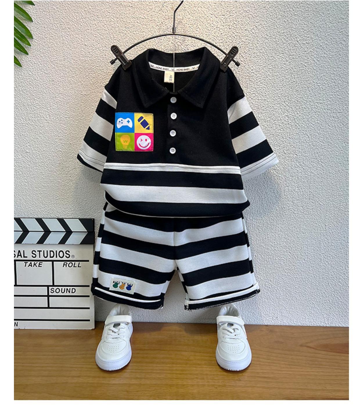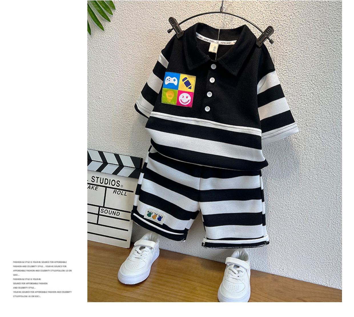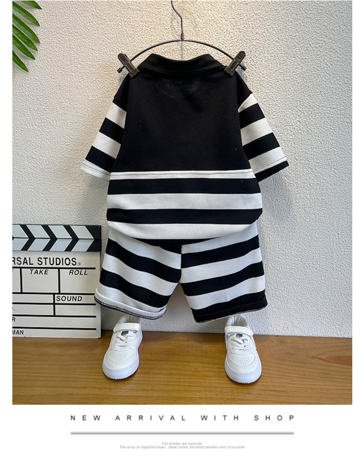 Ropa para Niños Traje de Moda de Verano para Niño Estilo Occidental a Rayas Ropa de Manga Corta para Bebé Moda Casual de Verano para Niño