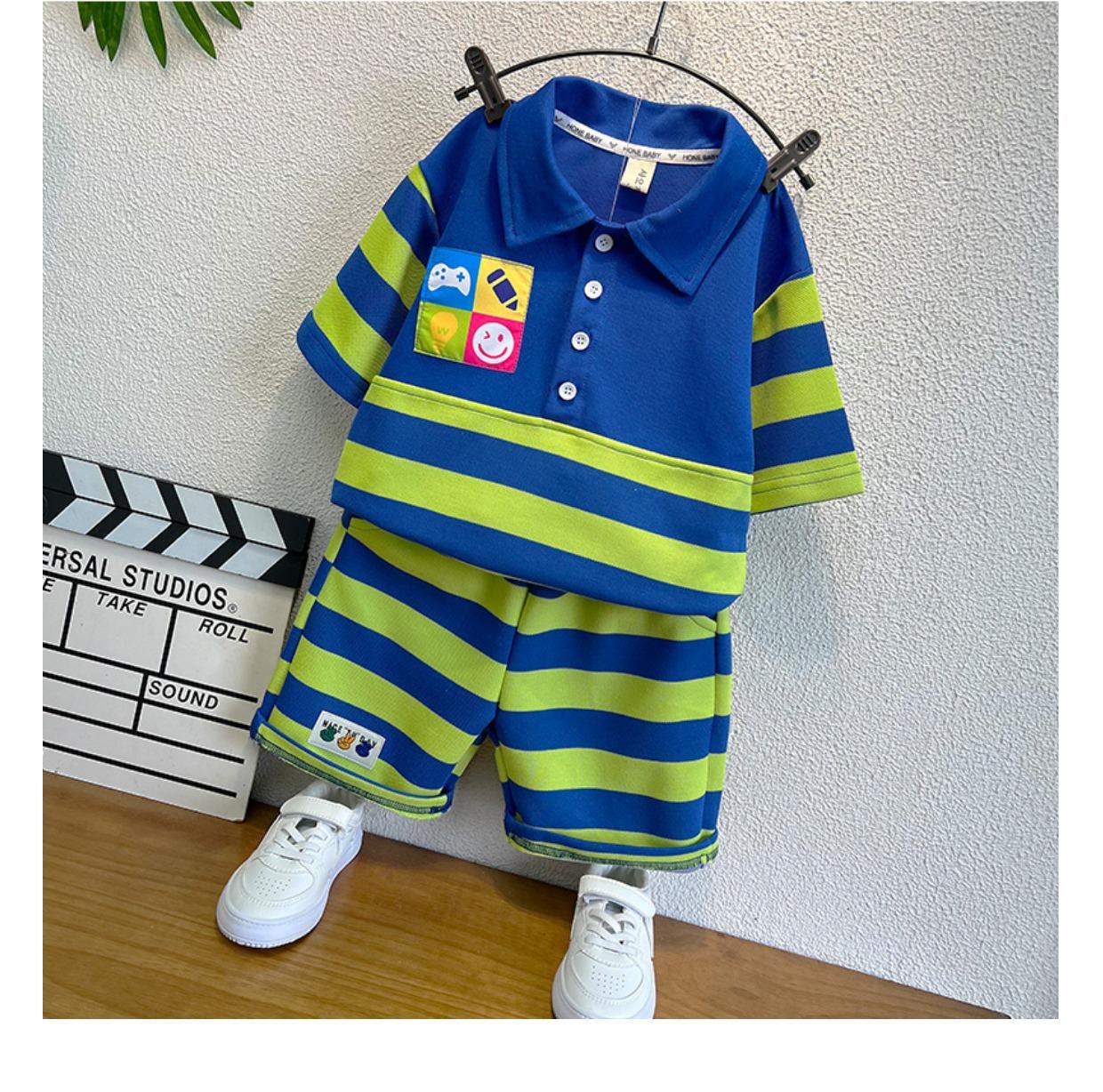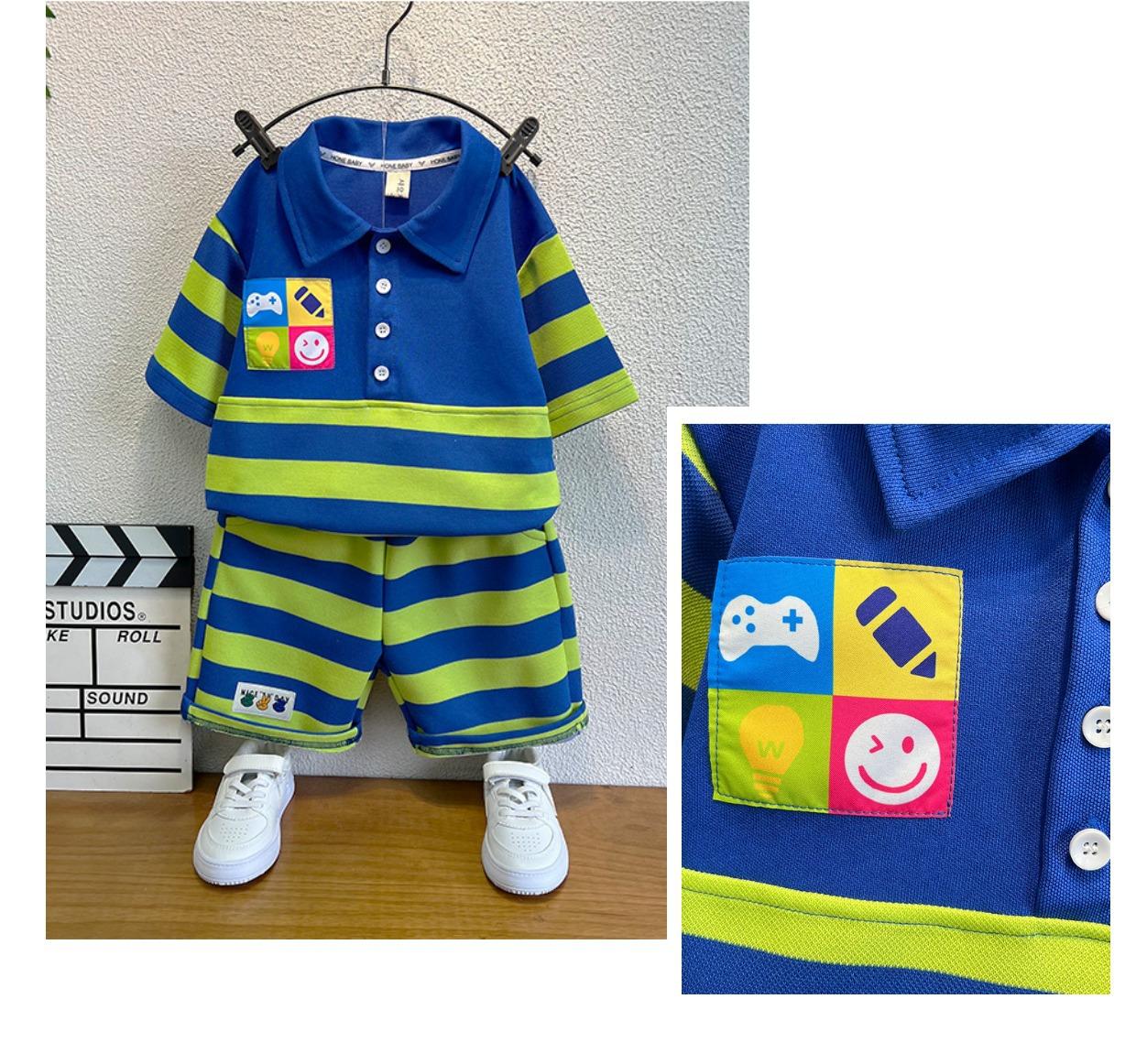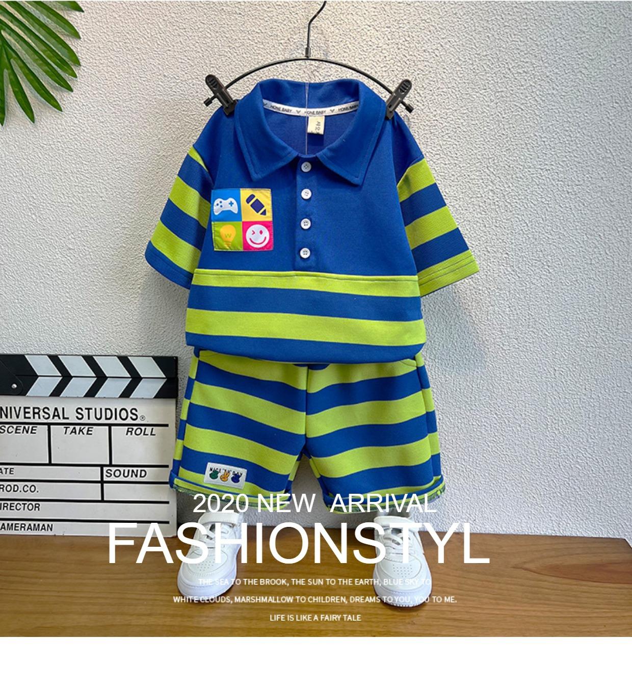 Ropa para Niños Traje de Moda de Verano para Niño Estilo Occidental a Rayas Ropa de Manga Corta para Bebé Moda Casual de Verano para Niño