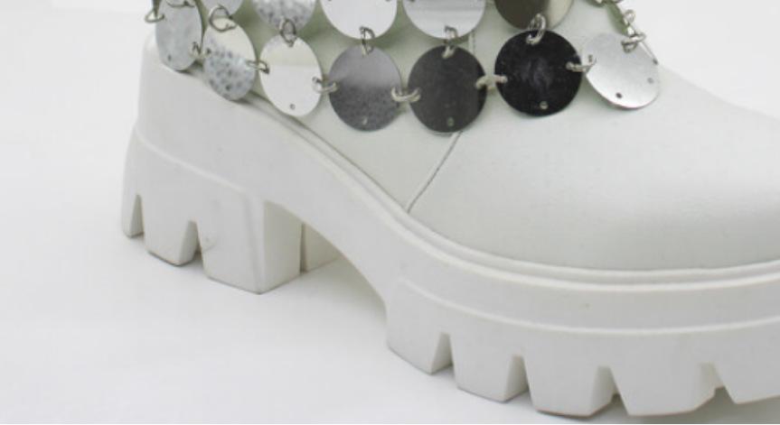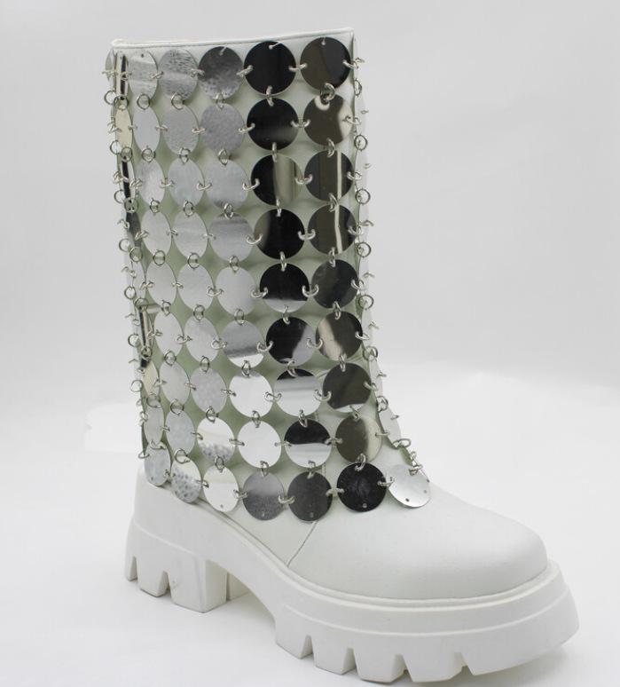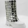 Botas Martin de media pantorrilla con lentejuelas, estilo europeo y americano, nuevas, de comercio exterior 2024, con punta redonda, manga, fondo grueso, tacón grueso, botas de mujer de talla grande a la moda