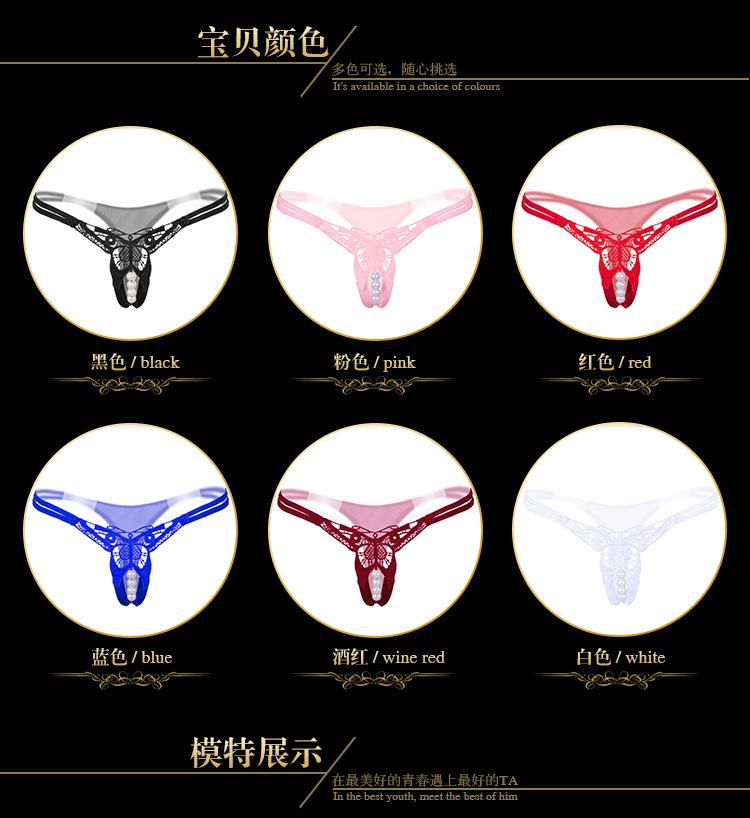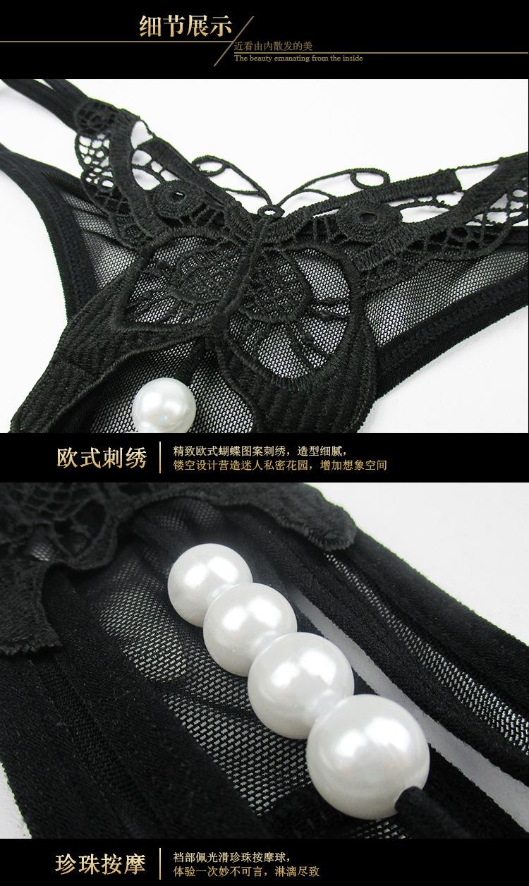 Ropa interior sexy transparente para mujer, con entrepierna abierta, bordado, tentación, cintura baja, tanga ahuecada, pantalones de masaje con perlas, 2163