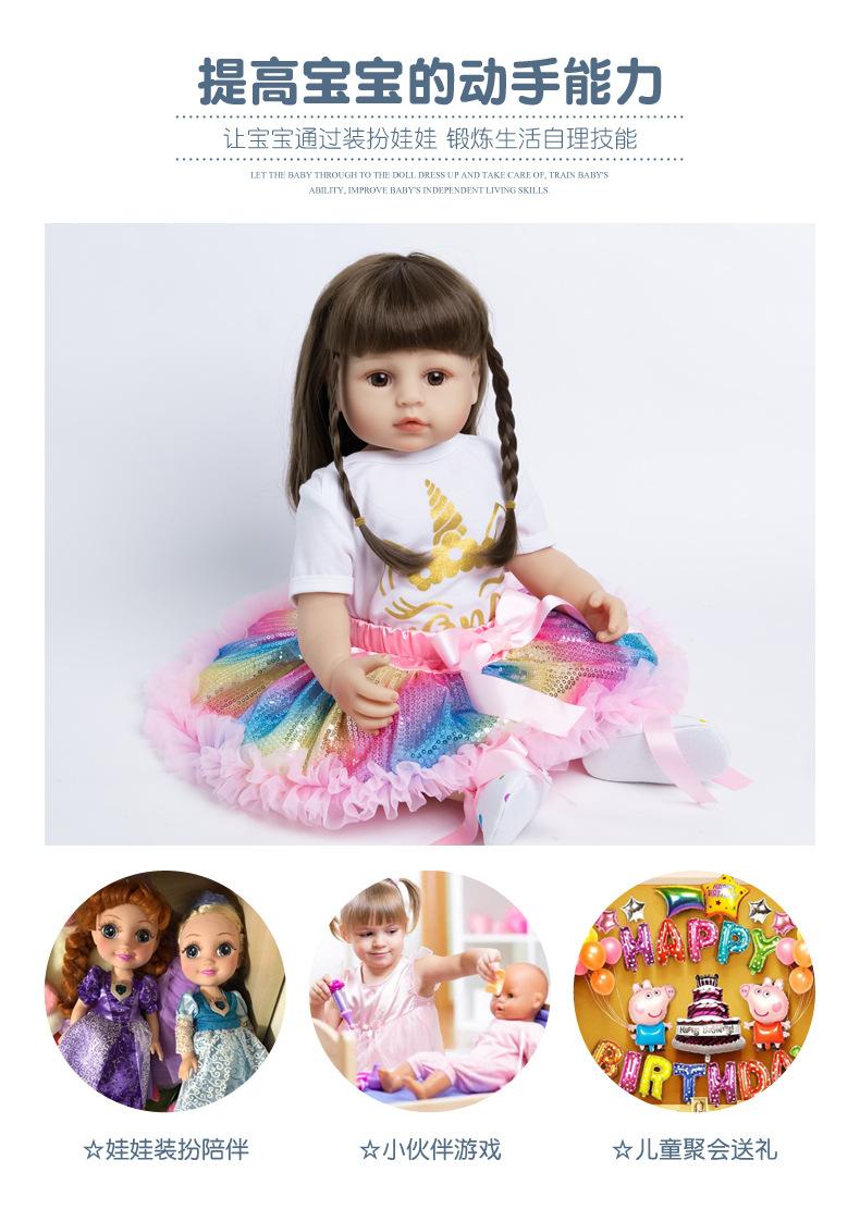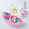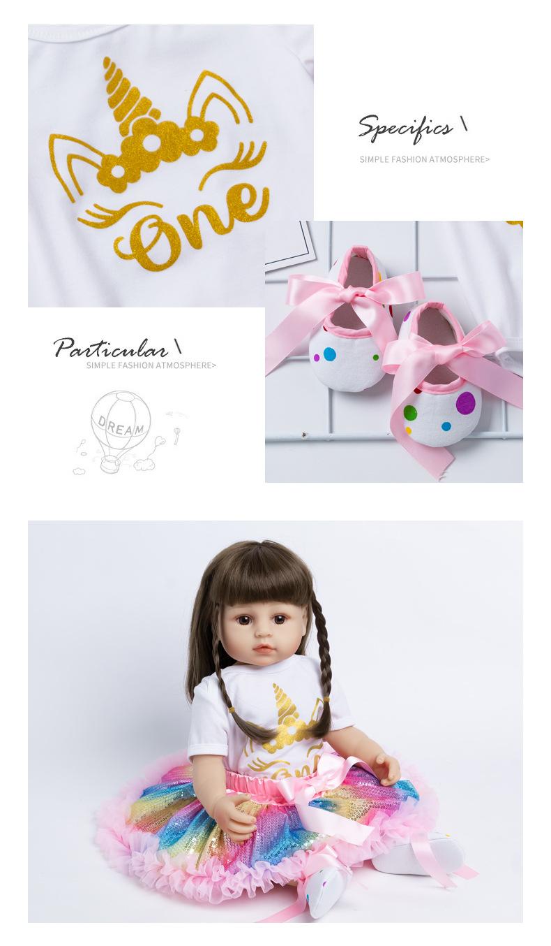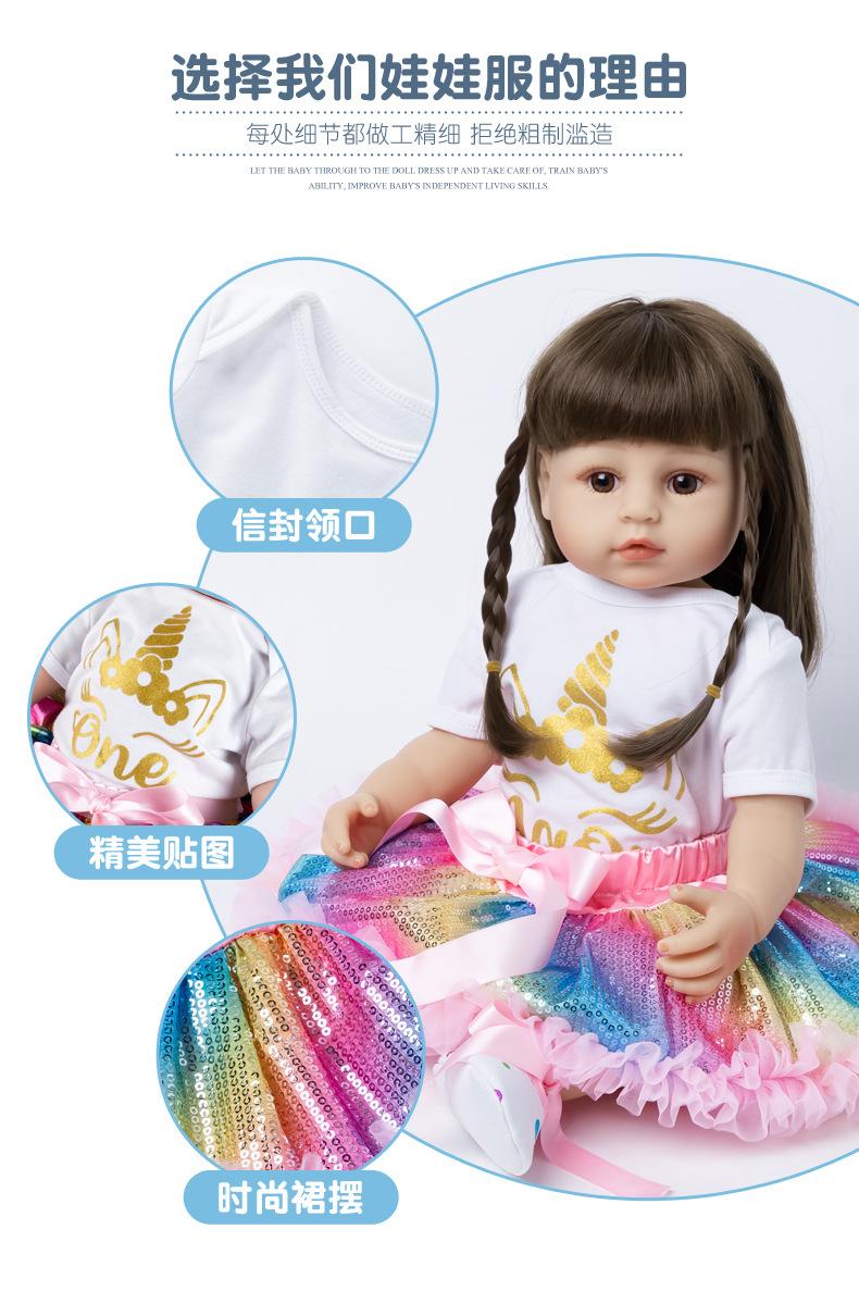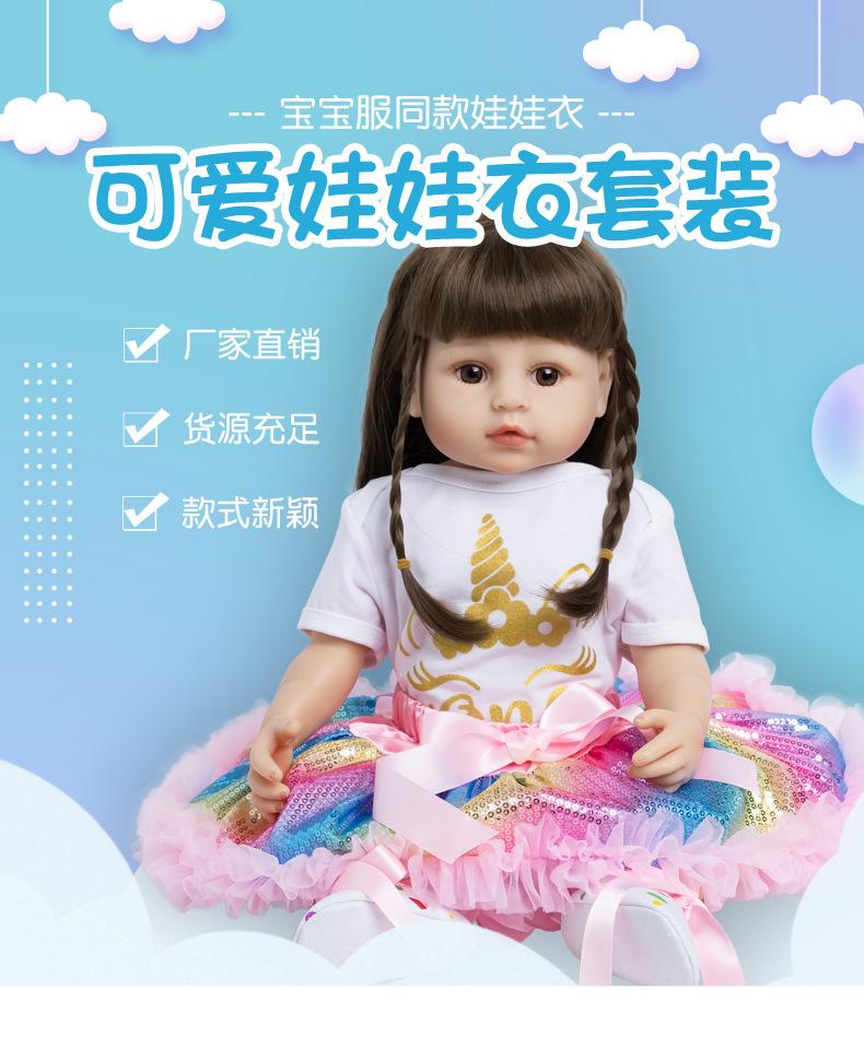 Falda abullonada de arcoíris caqui de manga corta con unicornio transfronterizo, 55 cm, ropa de muñeca de simulación para bebé de 20 a 22 pulgadas