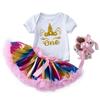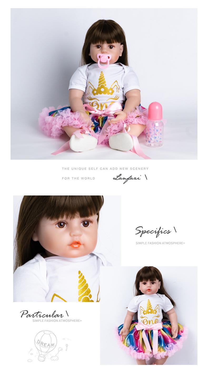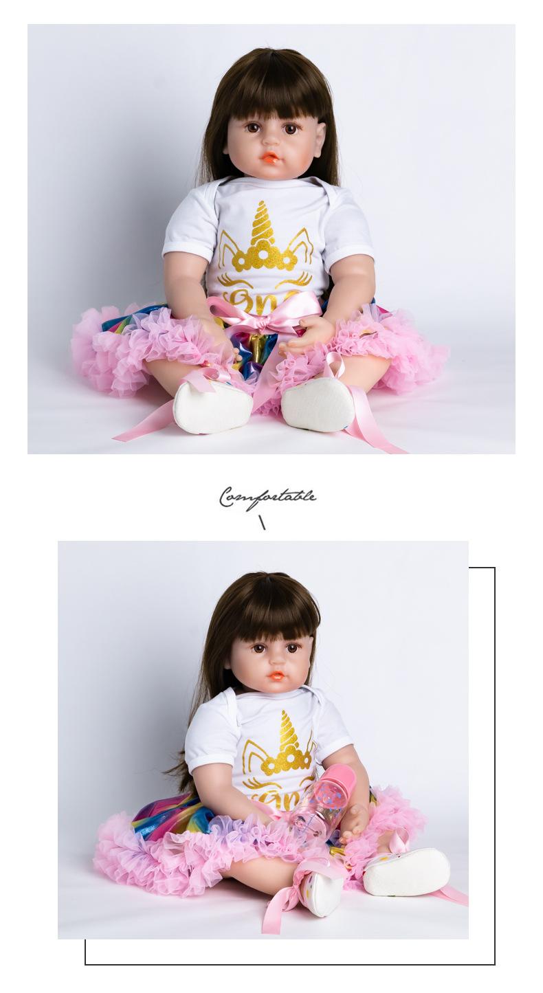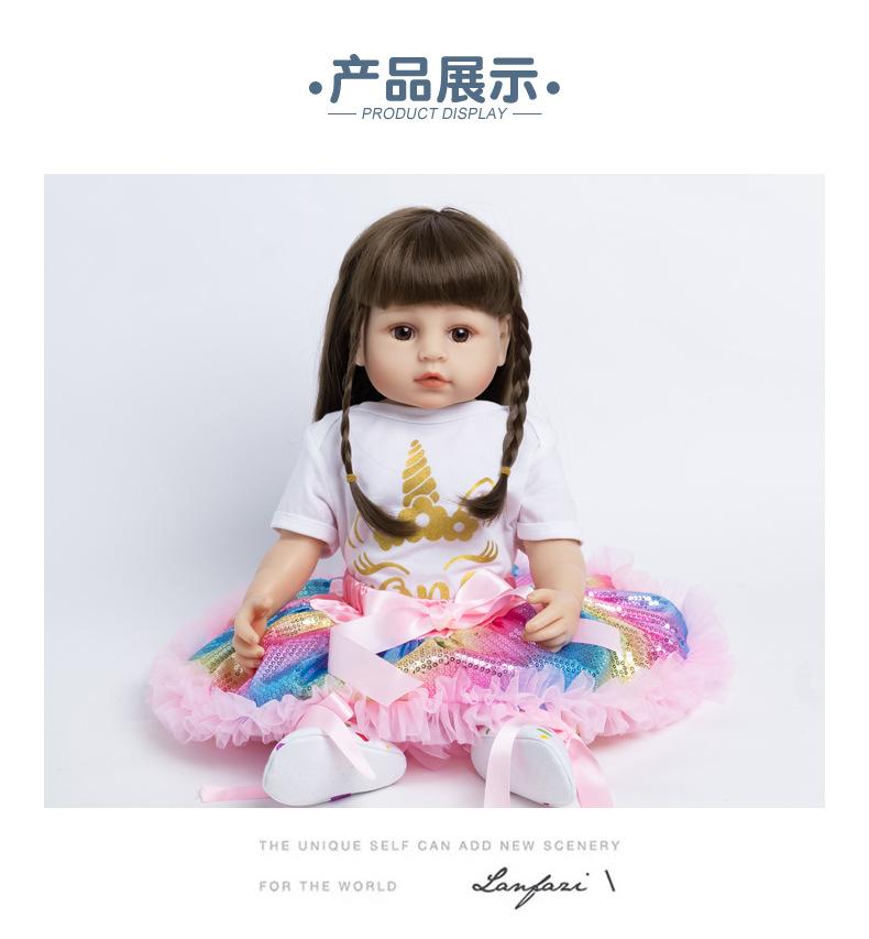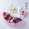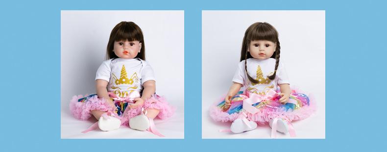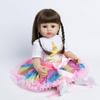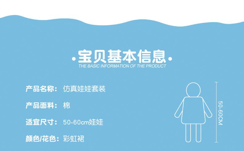 Falda abullonada de arcoíris caqui de manga corta con unicornio transfronterizo, 55 cm, ropa de muñeca de simulación para bebé de 20 a 22 pulgadas