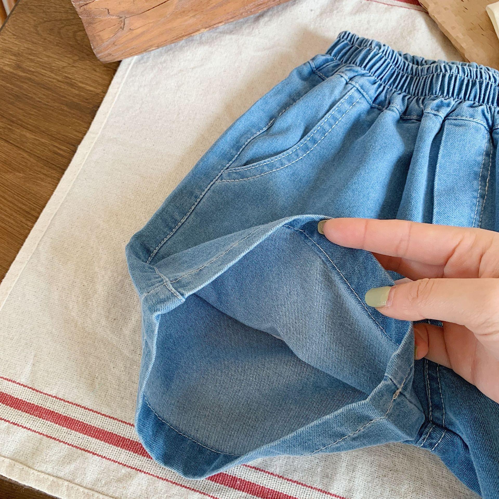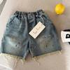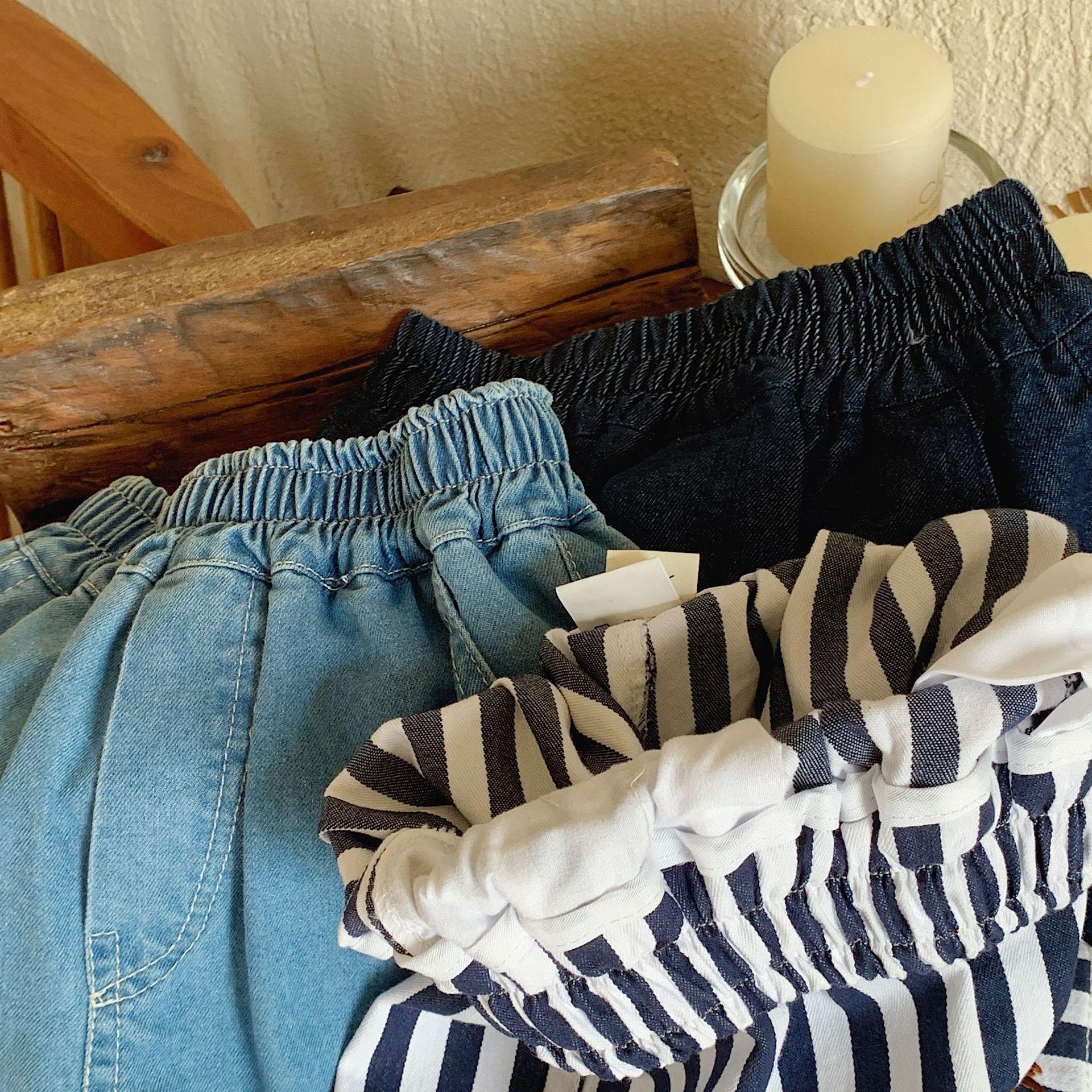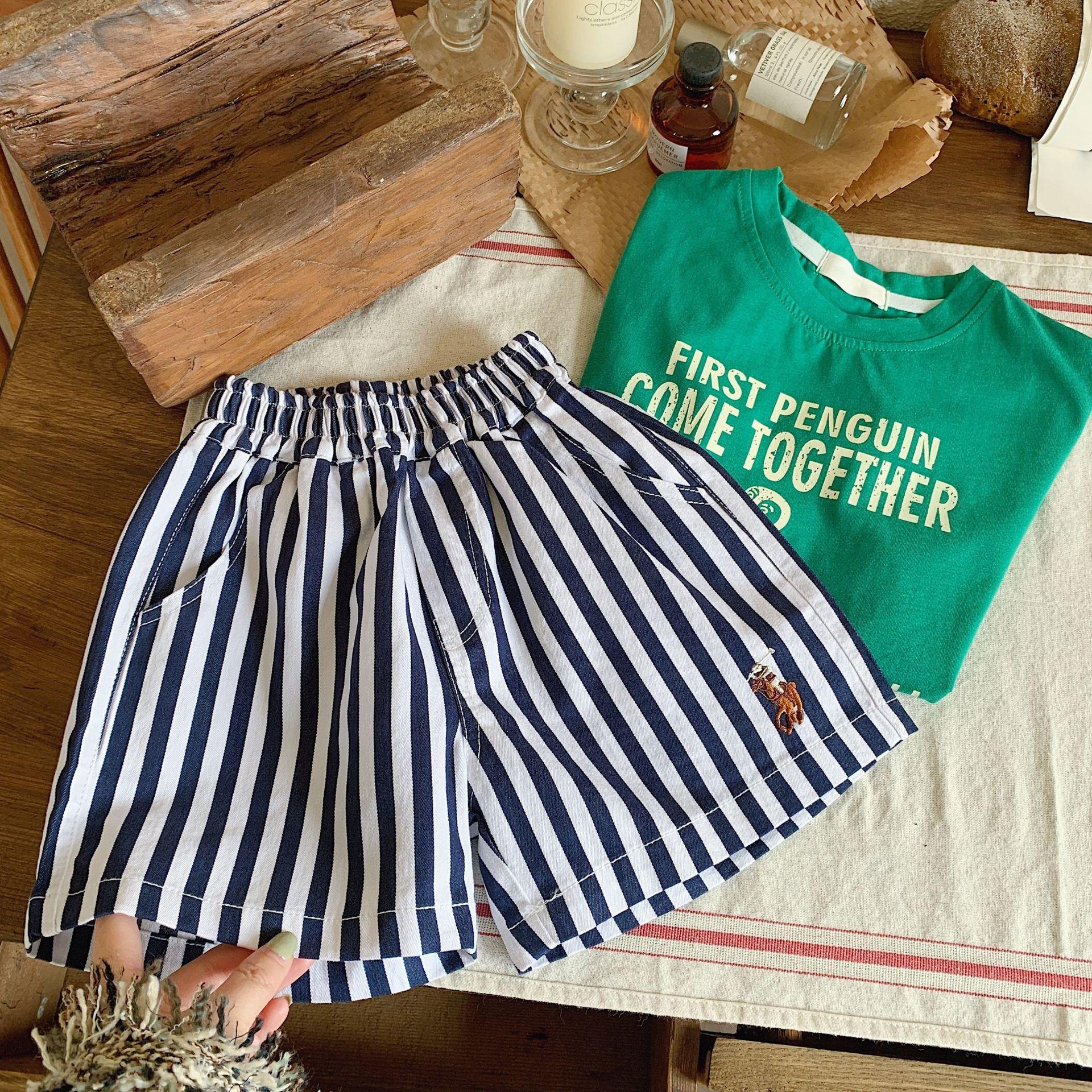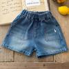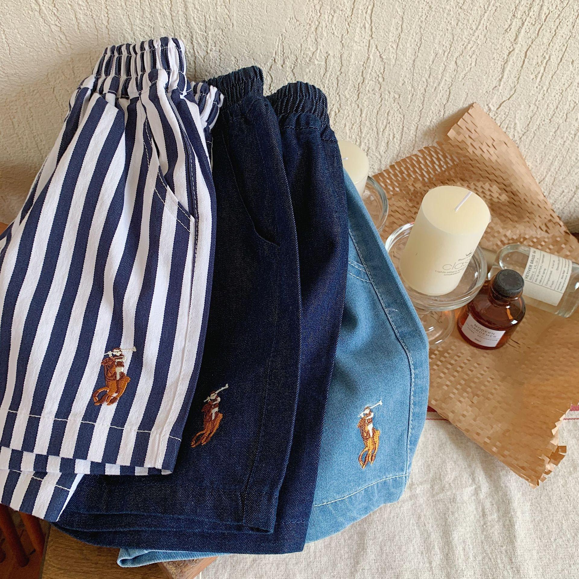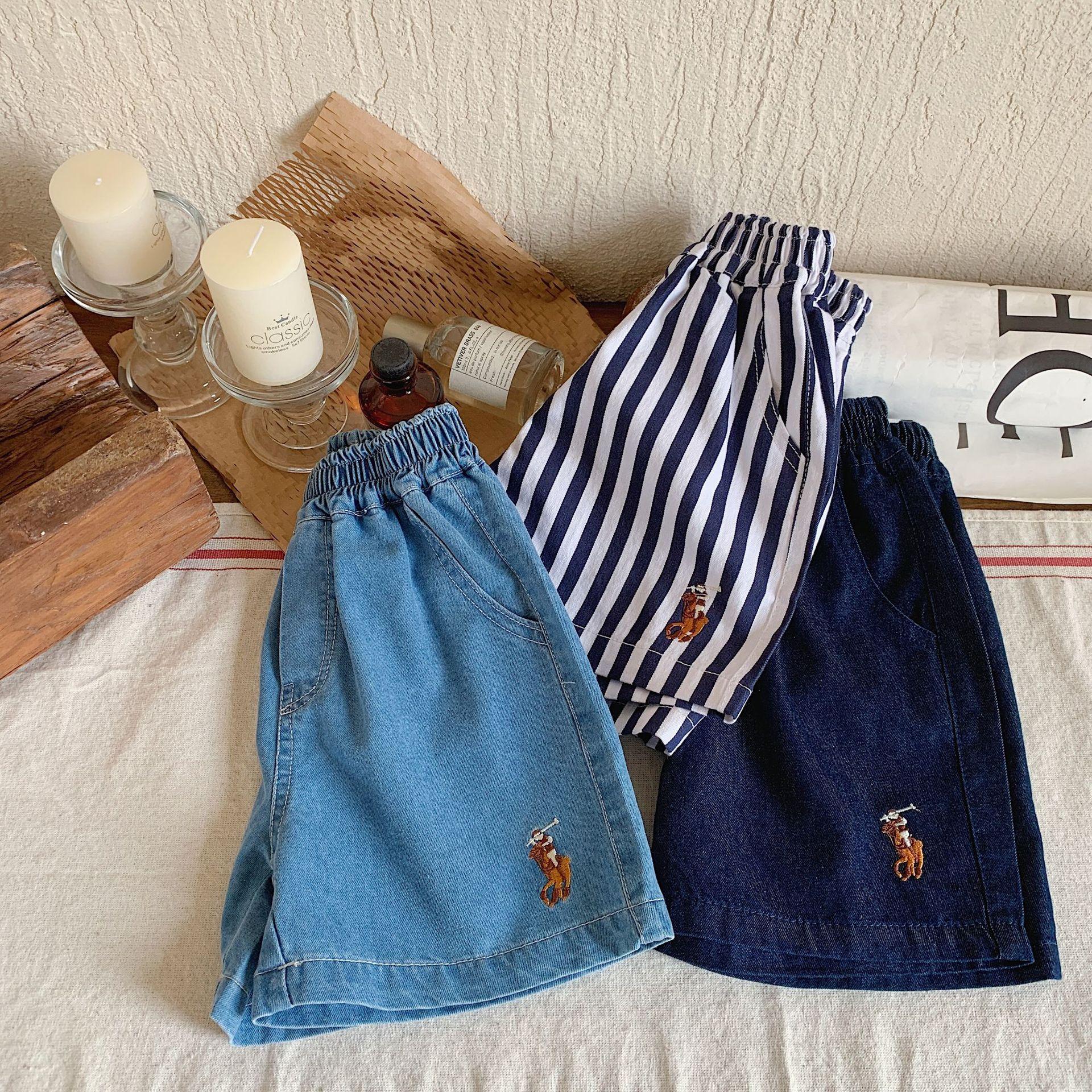 Pantalones cortos para niños, verano 2025, nuevos pantalones vaqueros bordados a rayas para niños y niñas, pantalones de moda para bebés