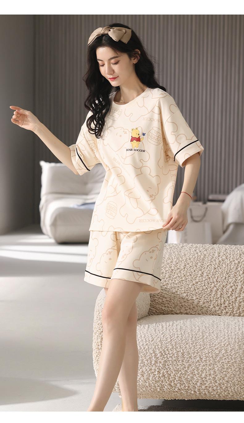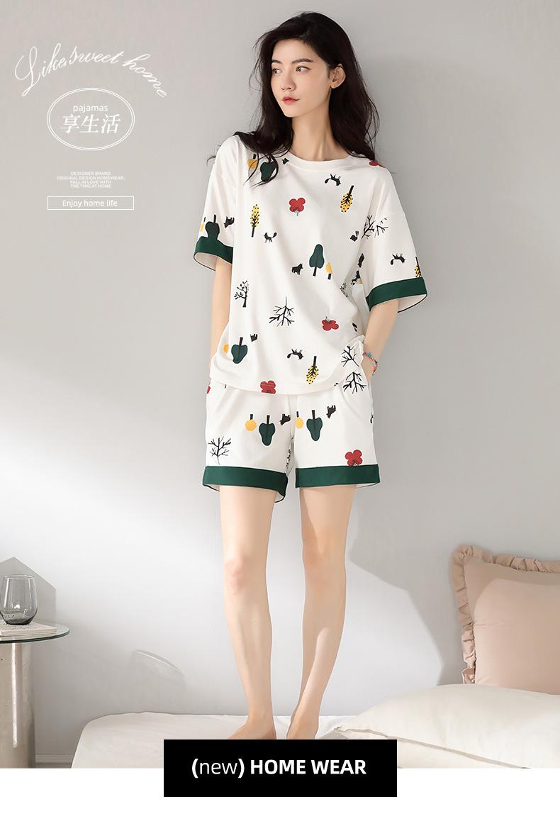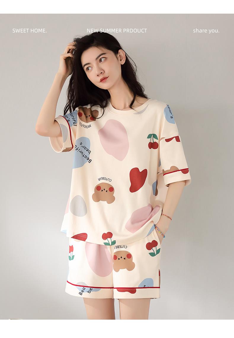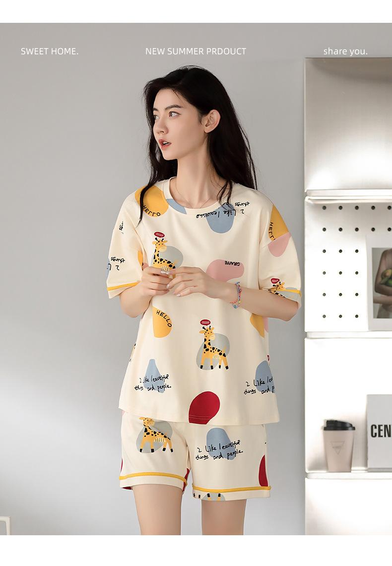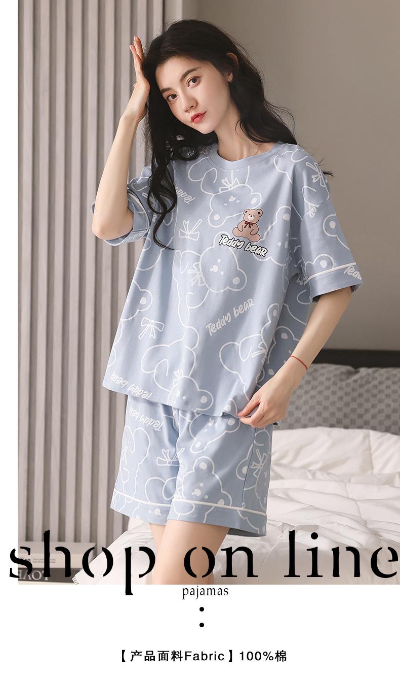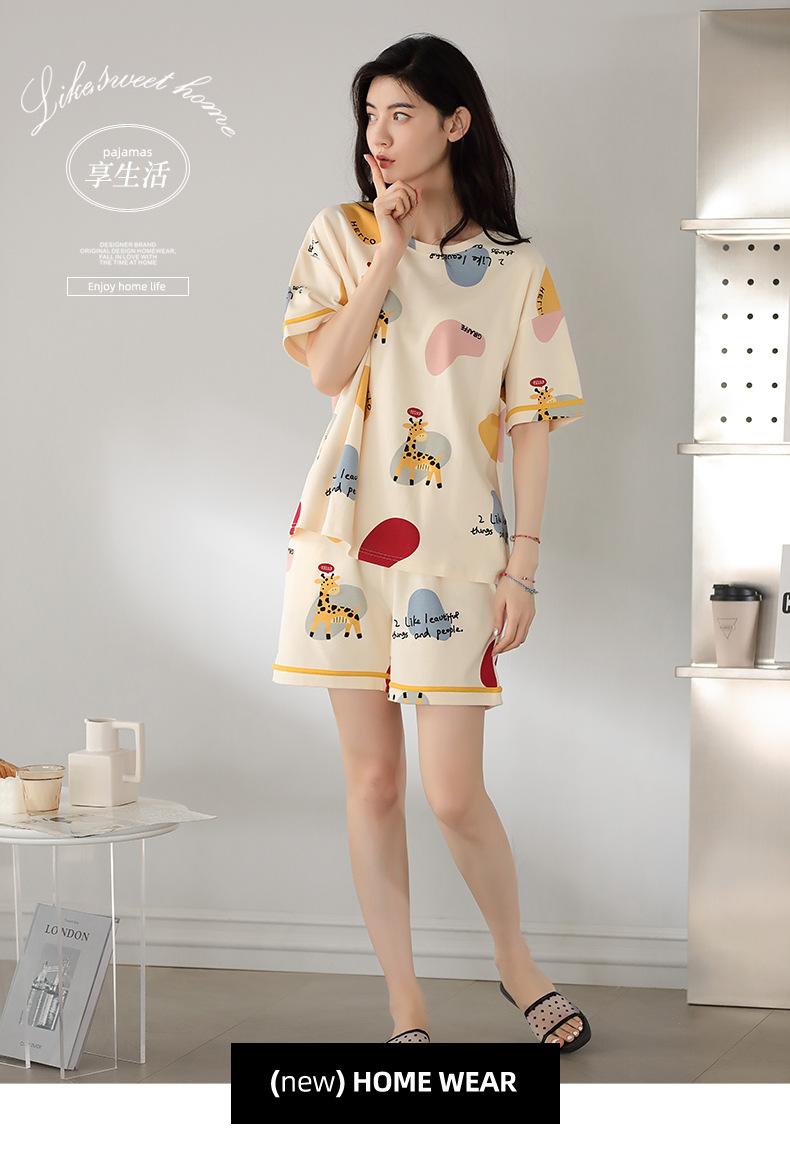 Pijama de algodón de verano para mujer, pantalones cortos de manga corta con cuello redondo, ropa de casa, bonita prenda exterior informal con dibujos animados, traje nuevo fino