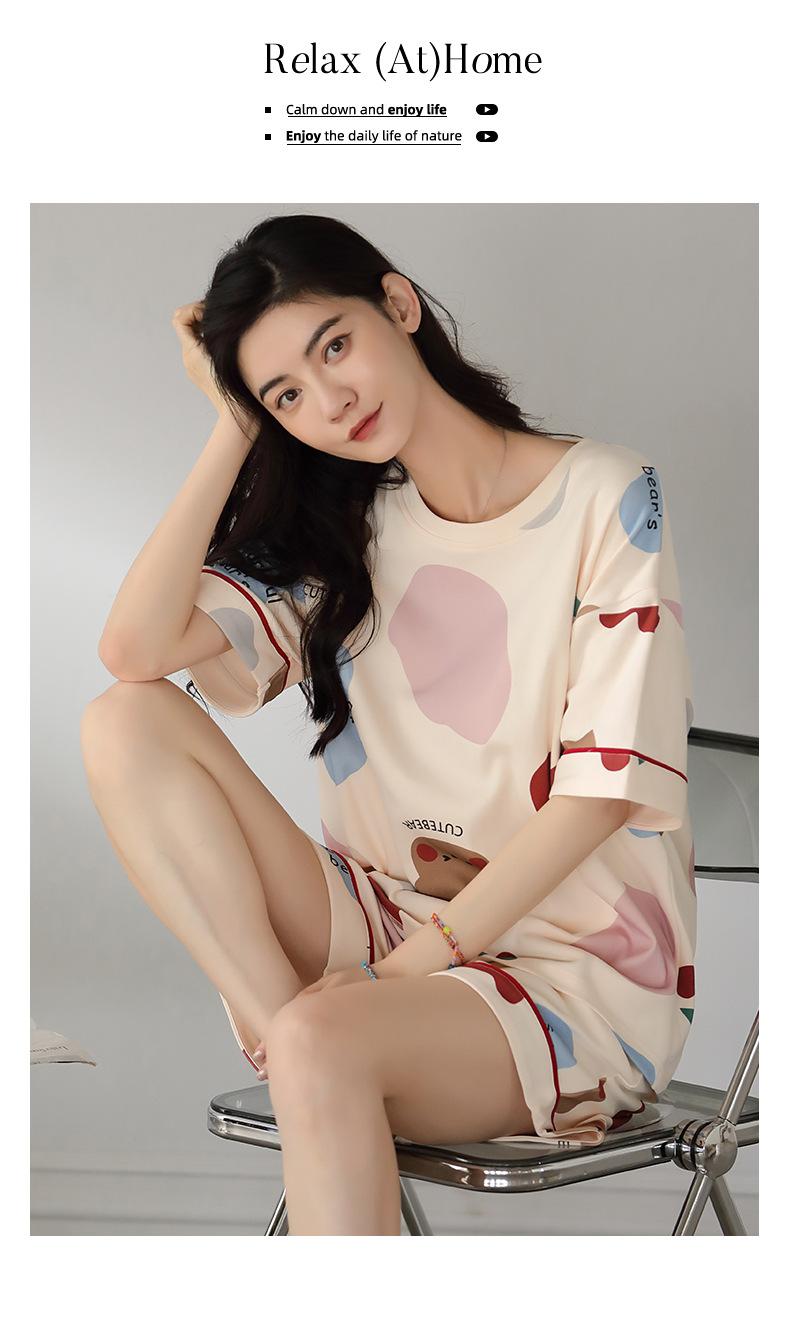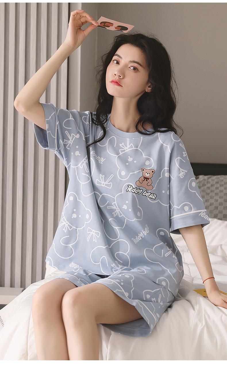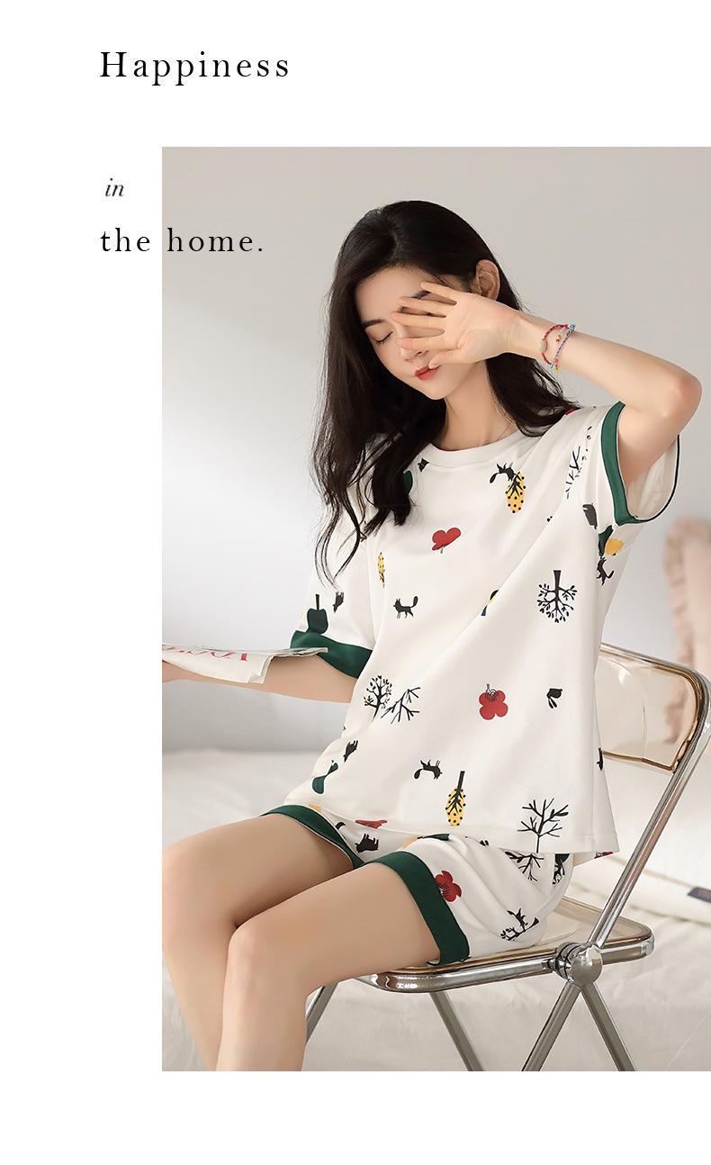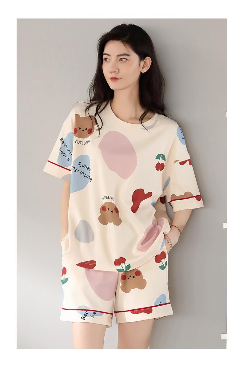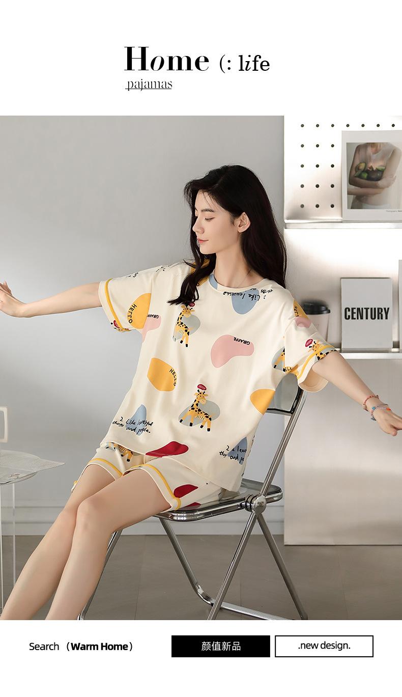 Pijama de algodón de verano para mujer, pantalones cortos de manga corta con cuello redondo, ropa de casa, bonita prenda exterior informal con dibujos animados, traje nuevo fino