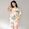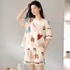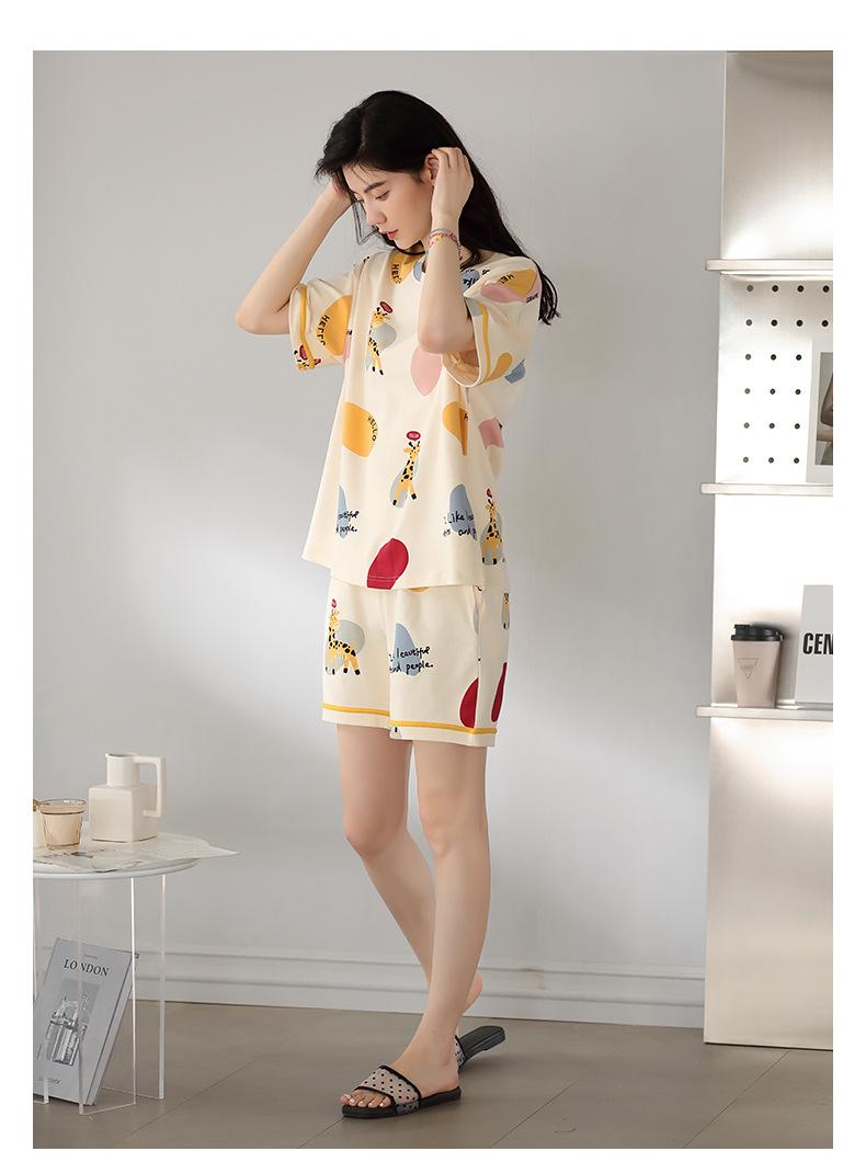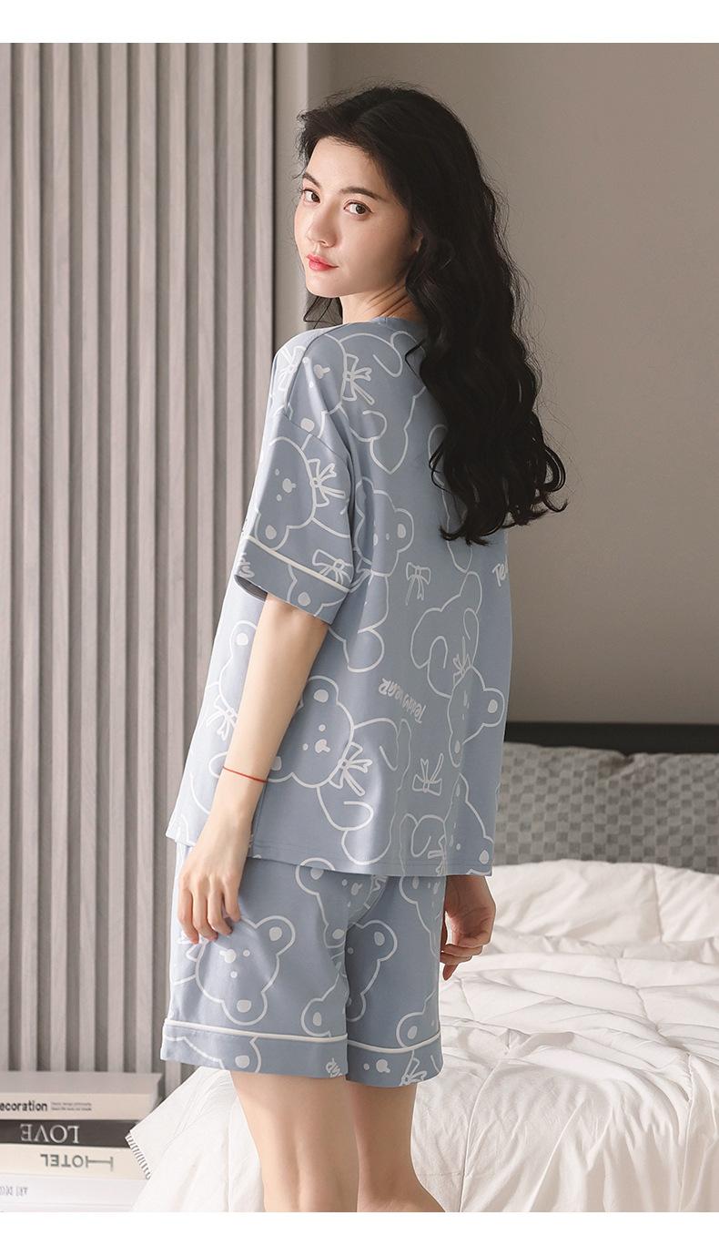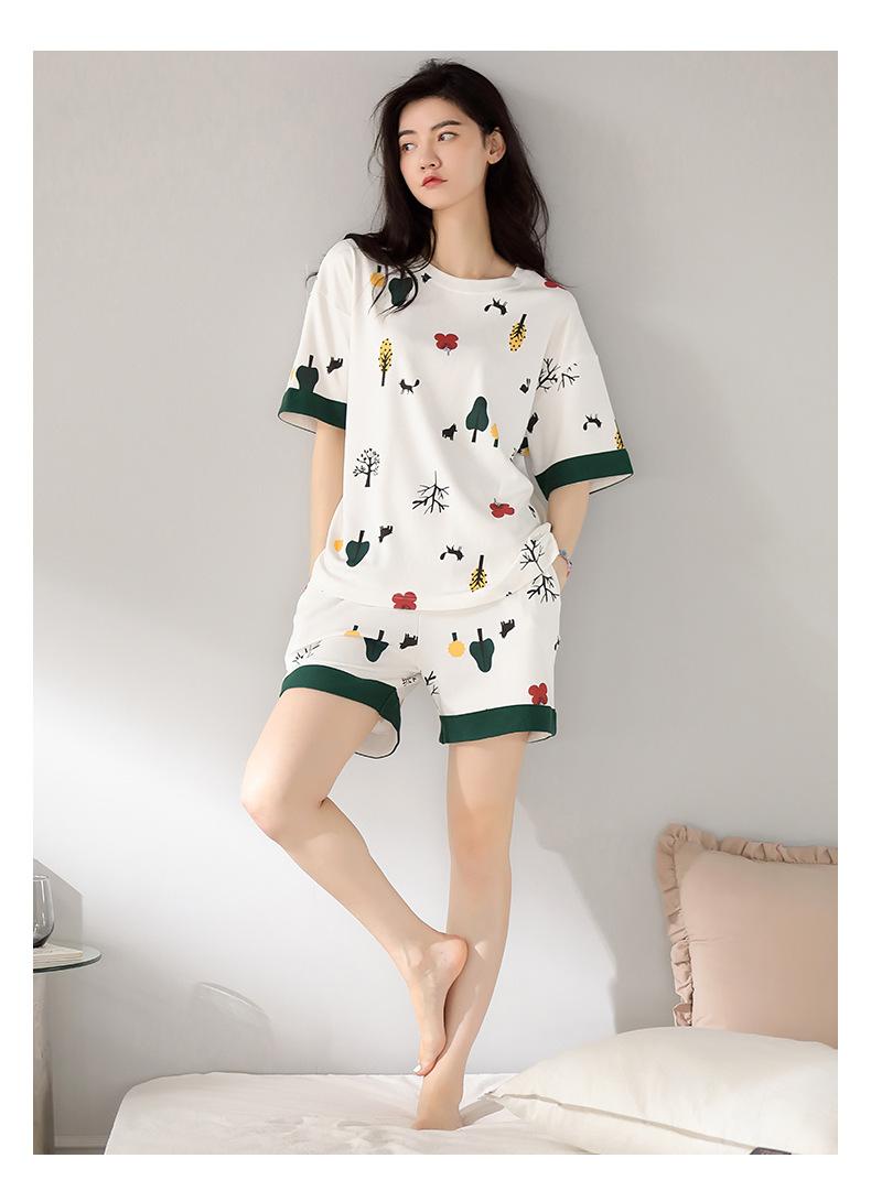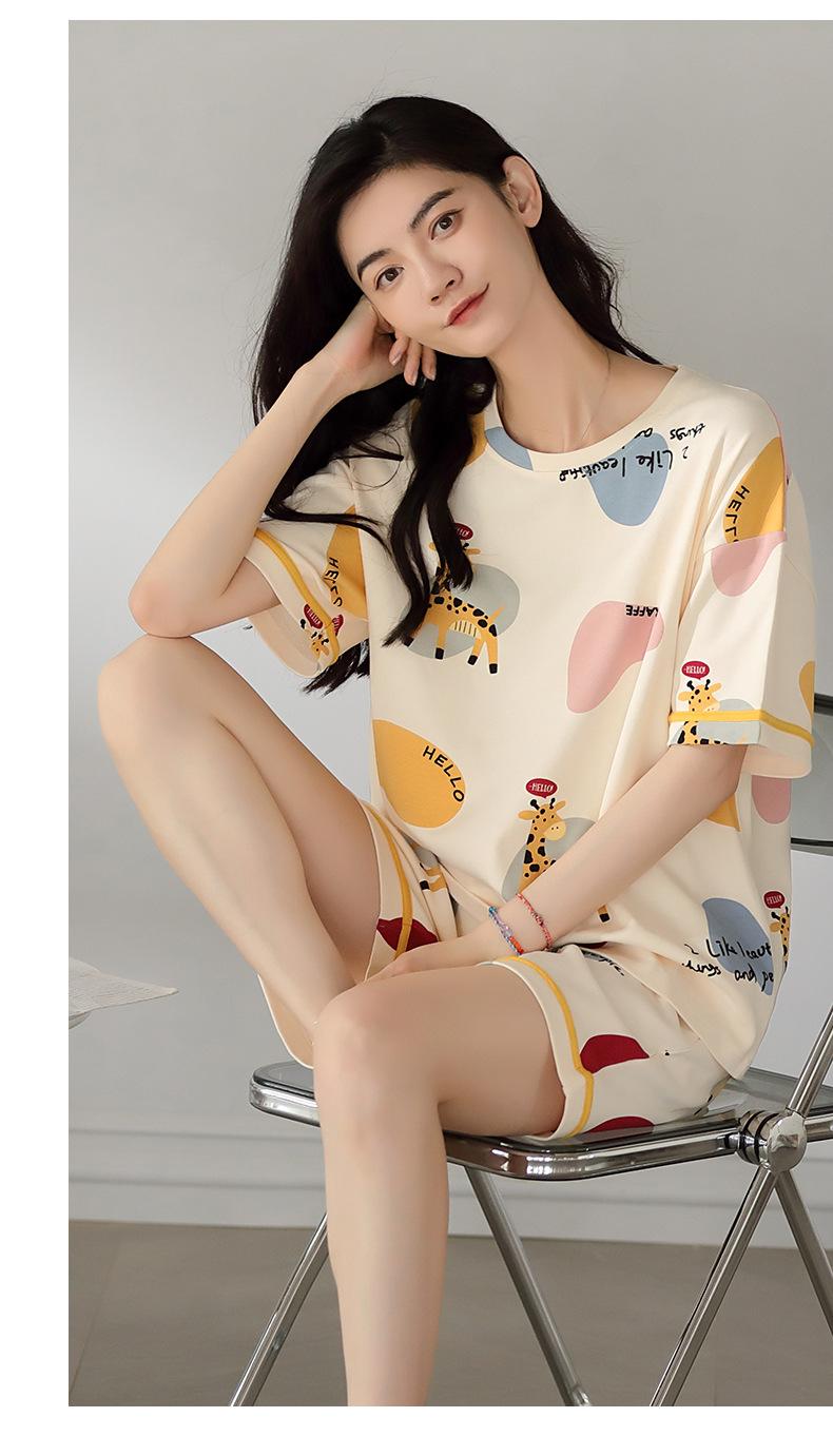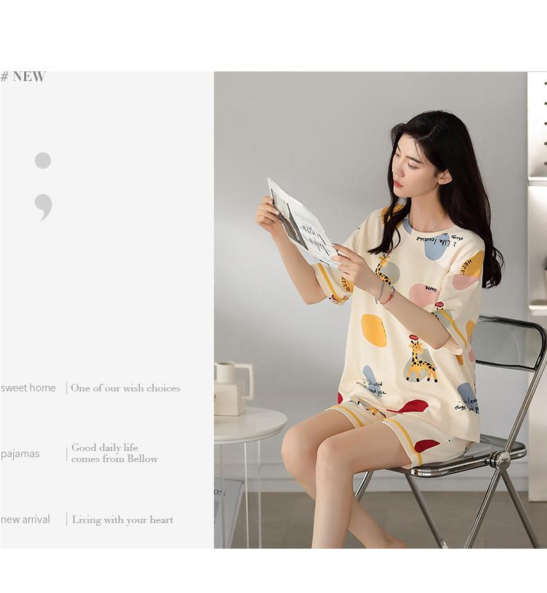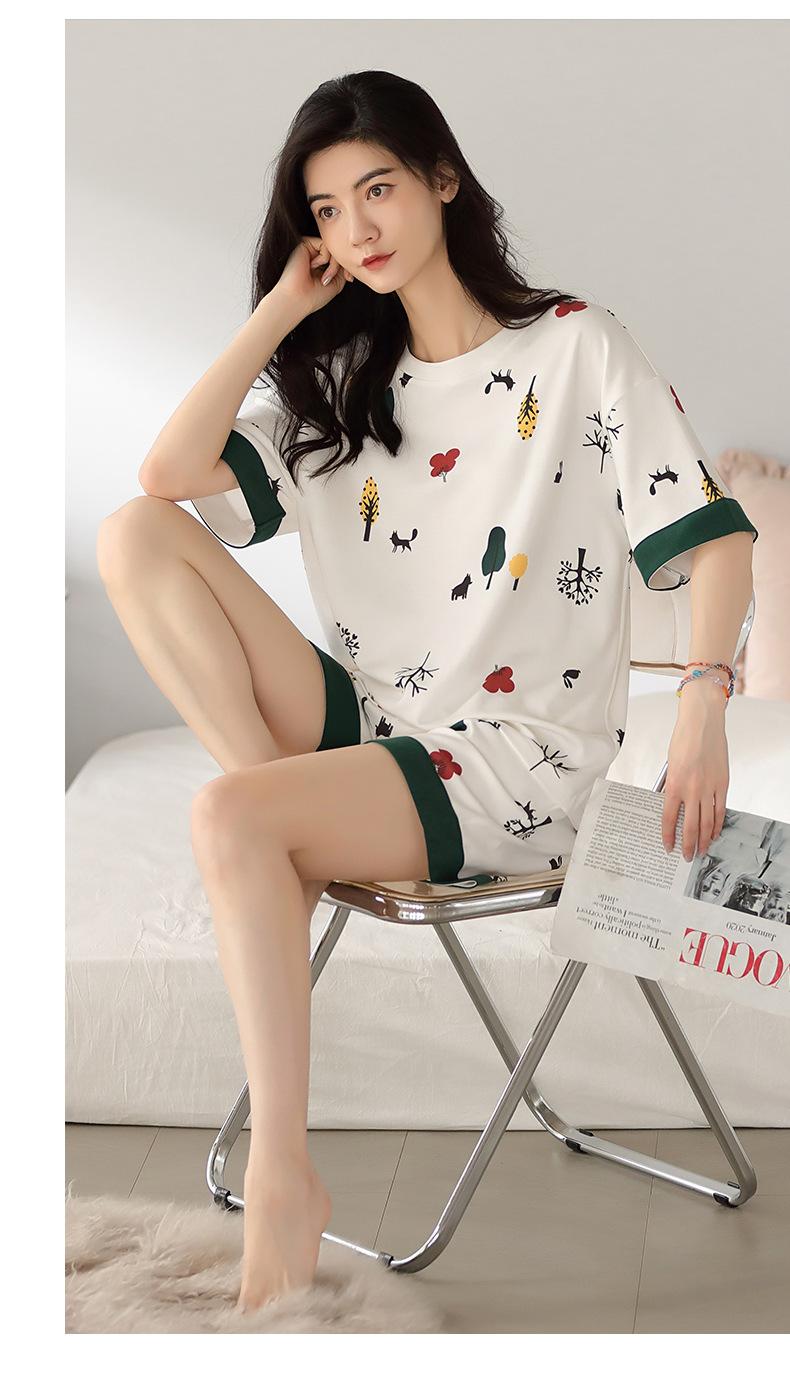Pijama de algodón de verano para mujer, pantalones cortos de manga corta con cuello redondo, ropa de casa, bonita prenda exterior informal con dibujos animados, traje nuevo fino