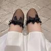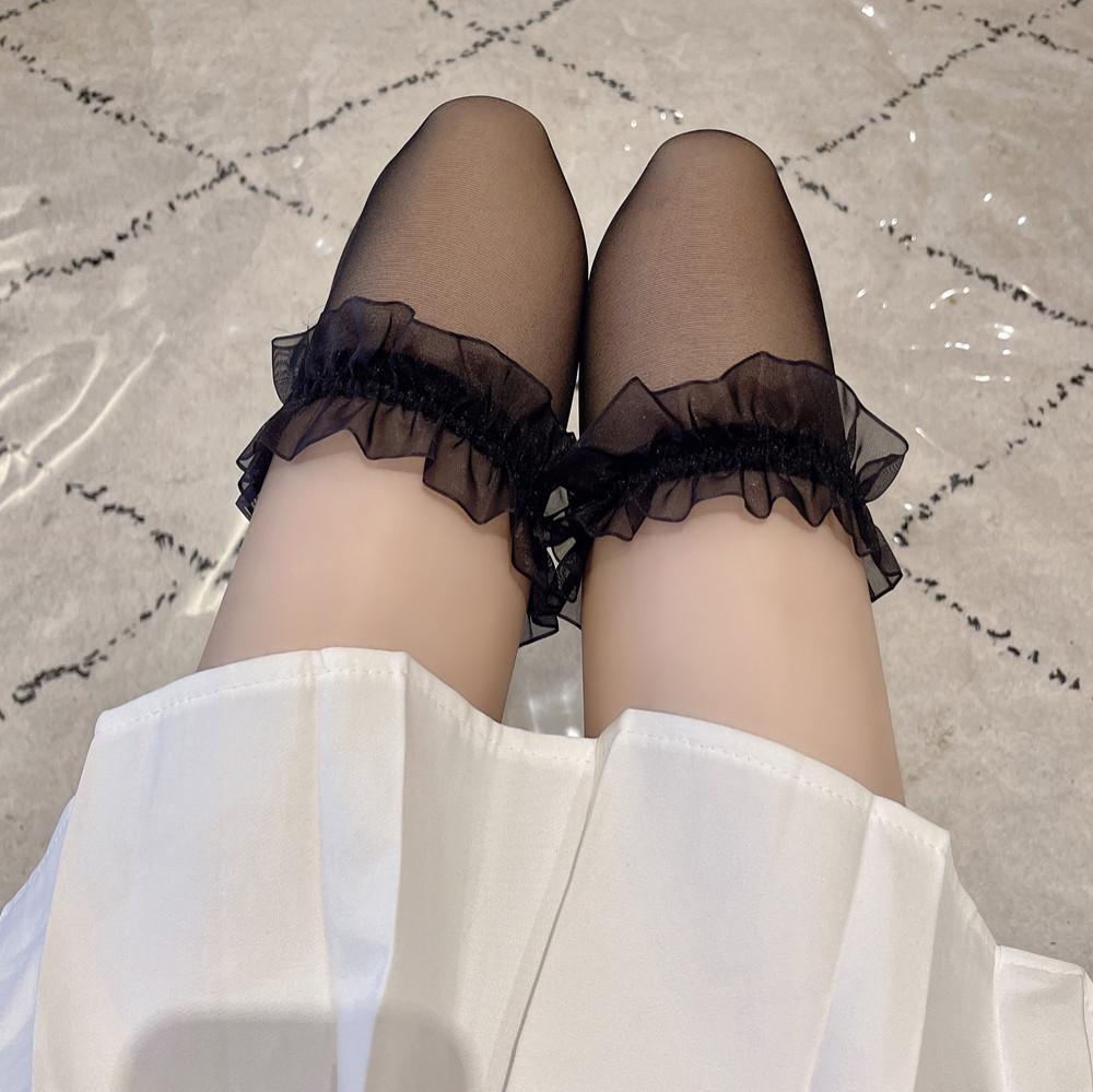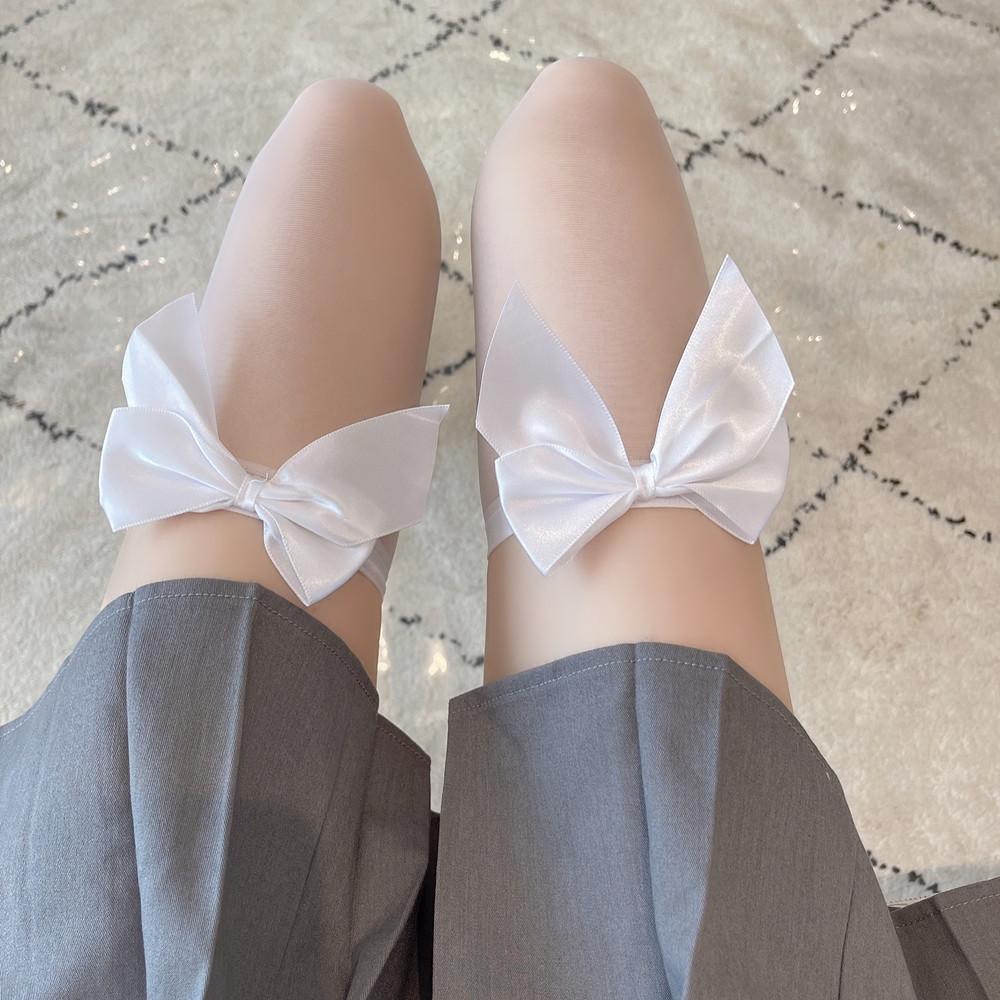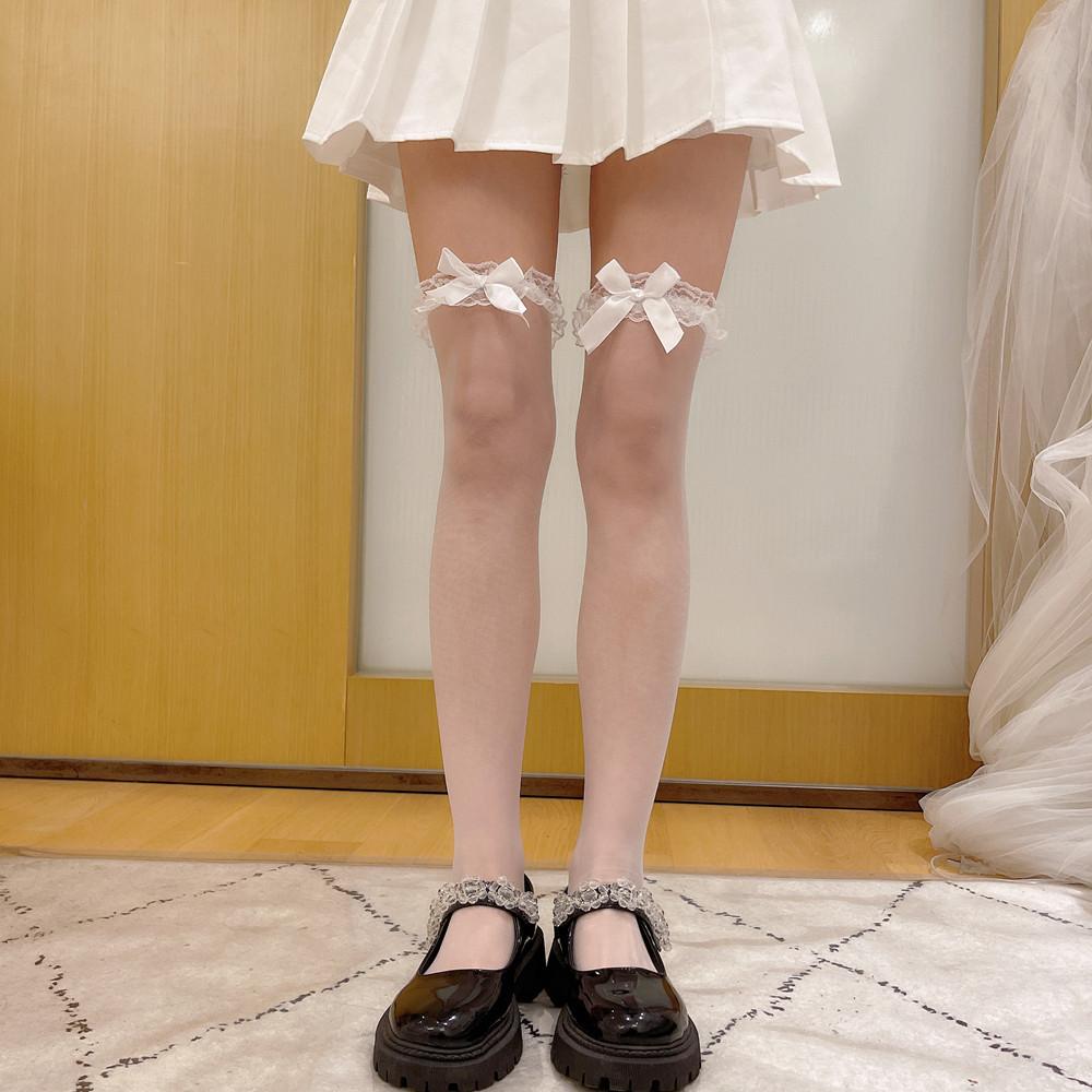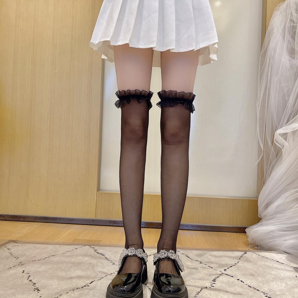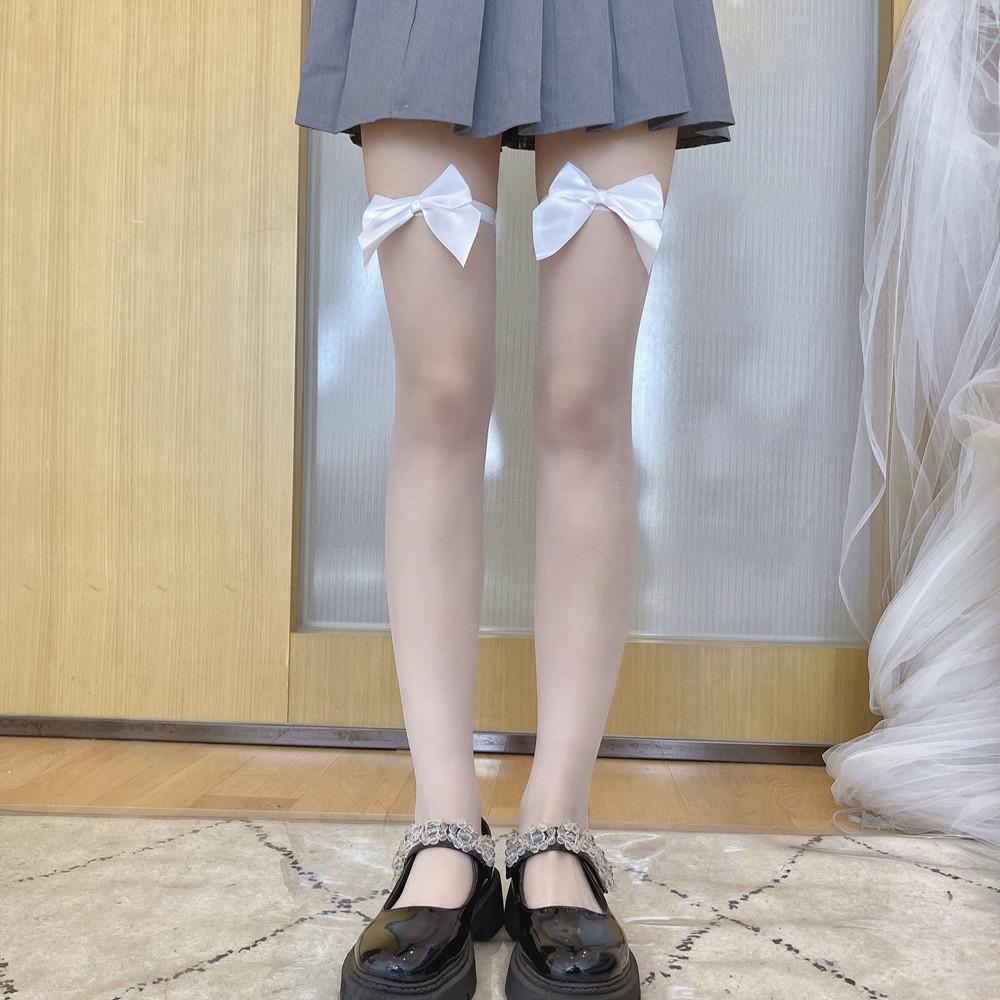 Medias altas de verano para mujer, estilo japonés, ultrafinas, de color sólido, con núcleo de seda hilado, de malla abullonada y lazo.