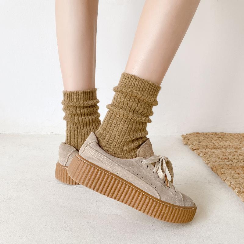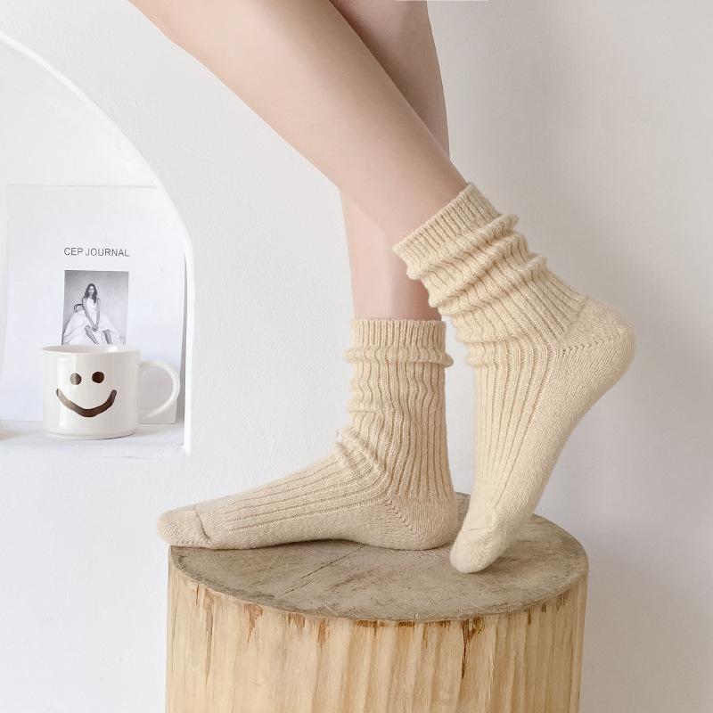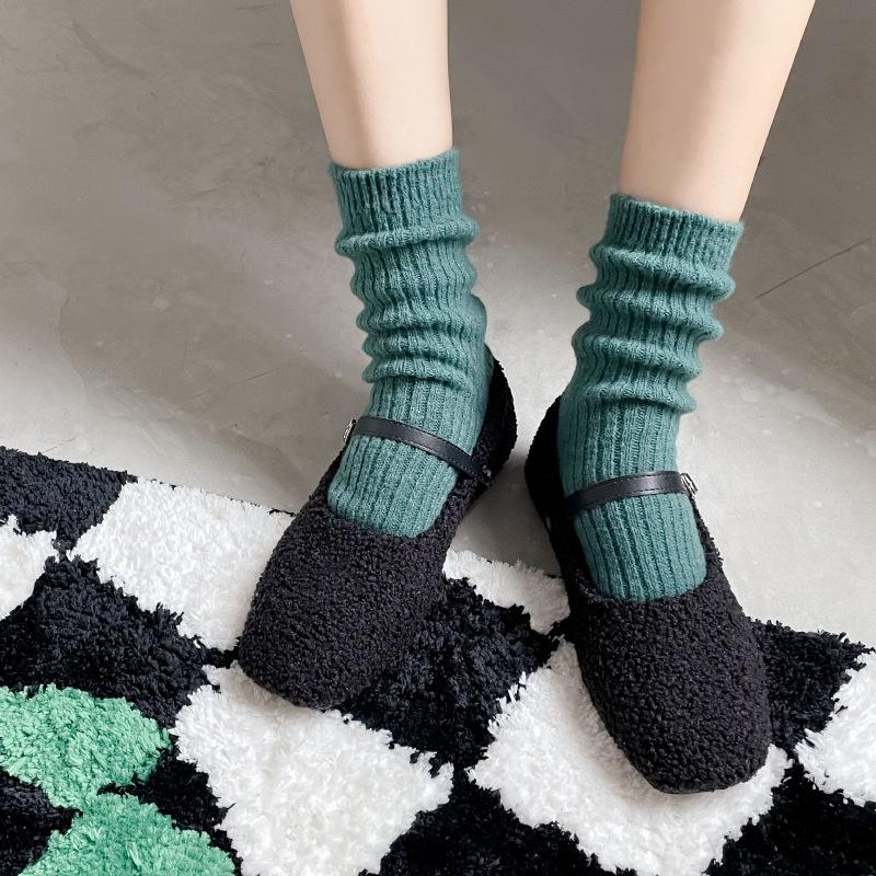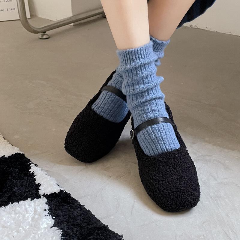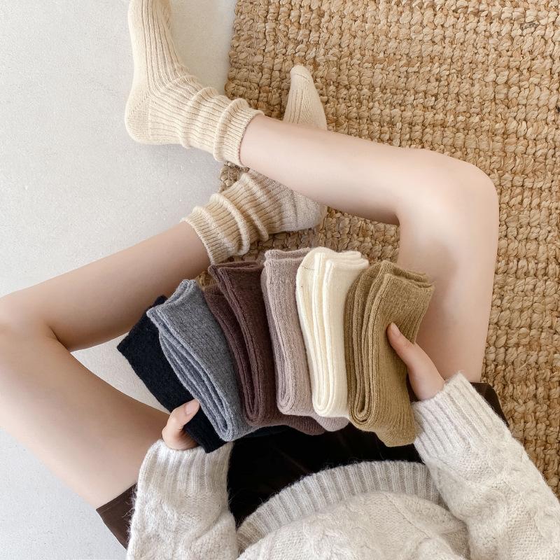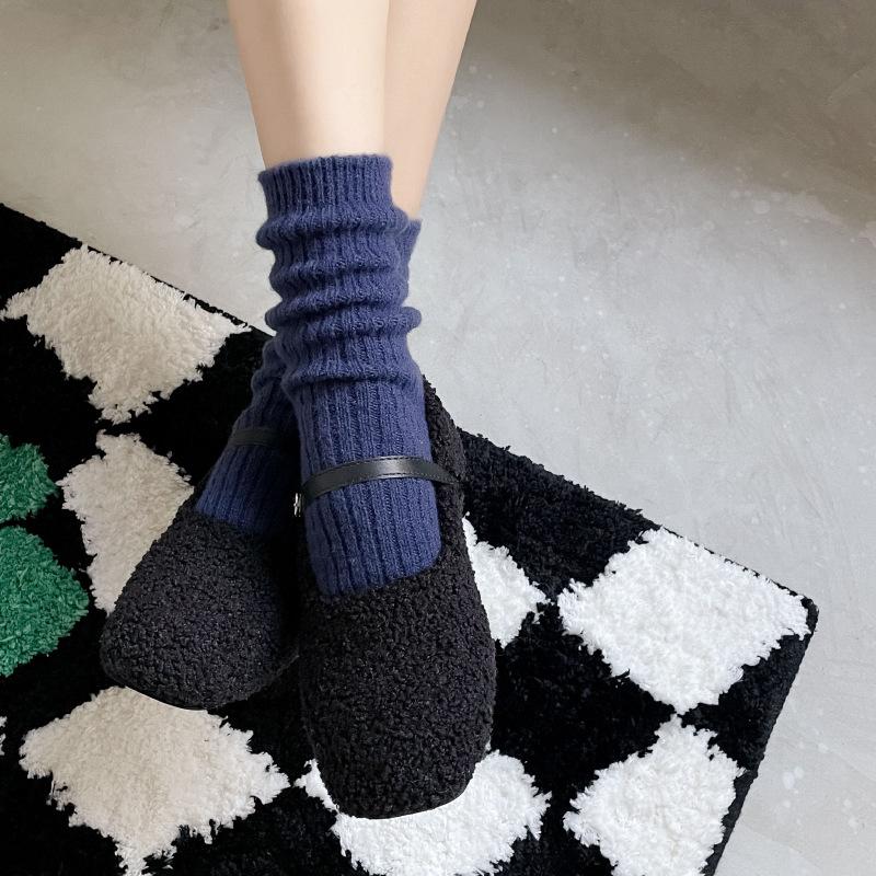 Calcetines Gruesos de Invierno para Mujer Calcetines de Lana de Media Caña Coreanos ins Cálidos Suaves Calcetines de Media Caña con Cordón Calcetines de Rizo Calcetines de Mujer