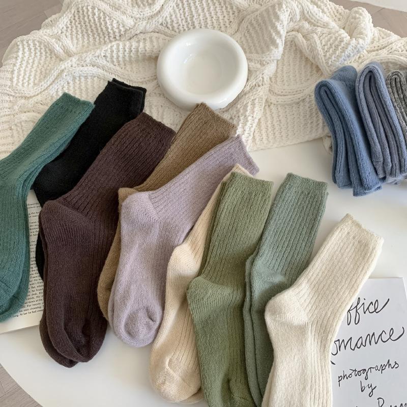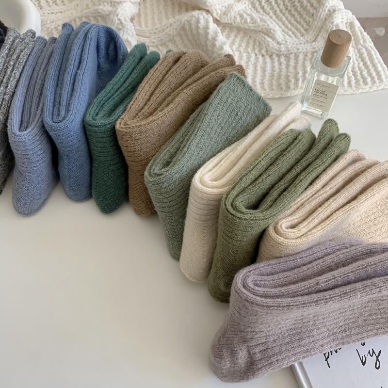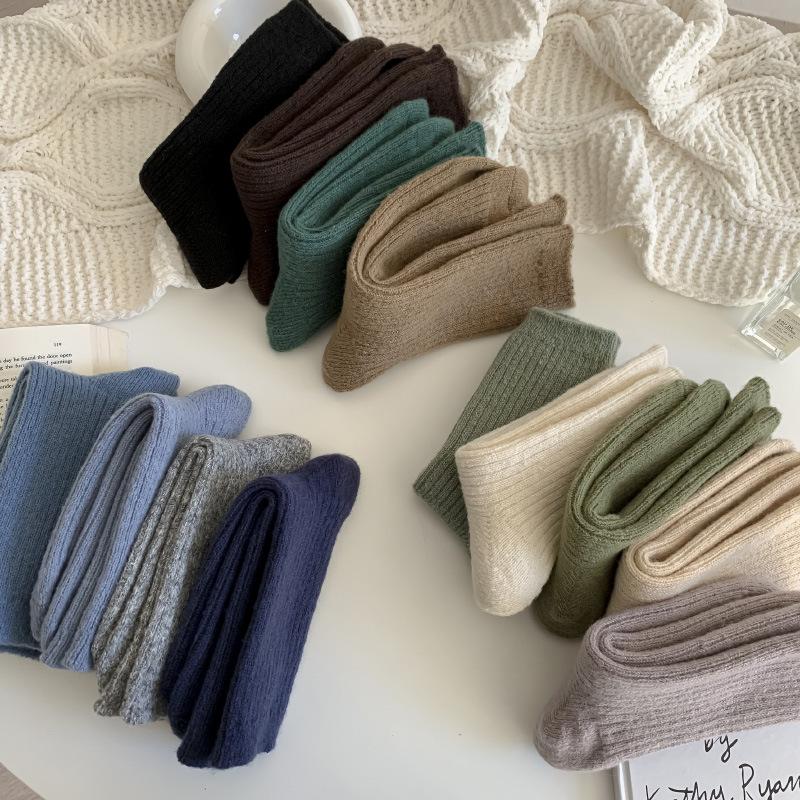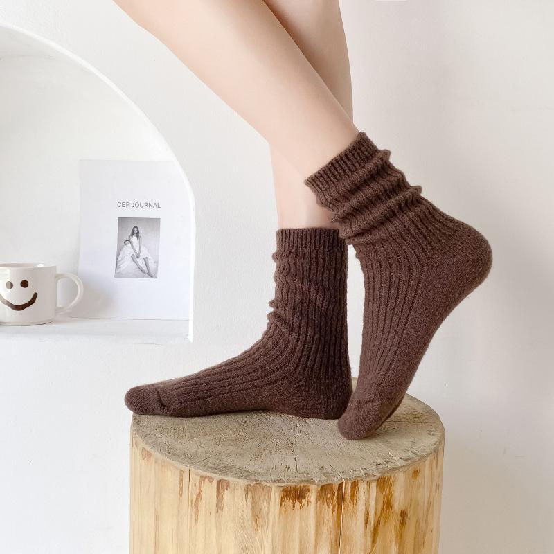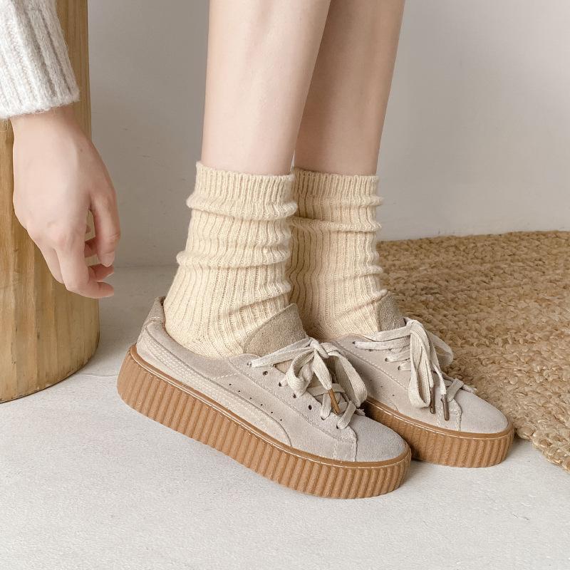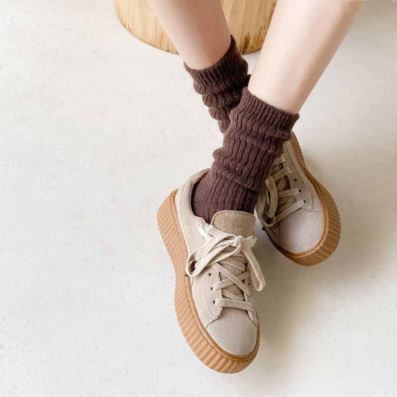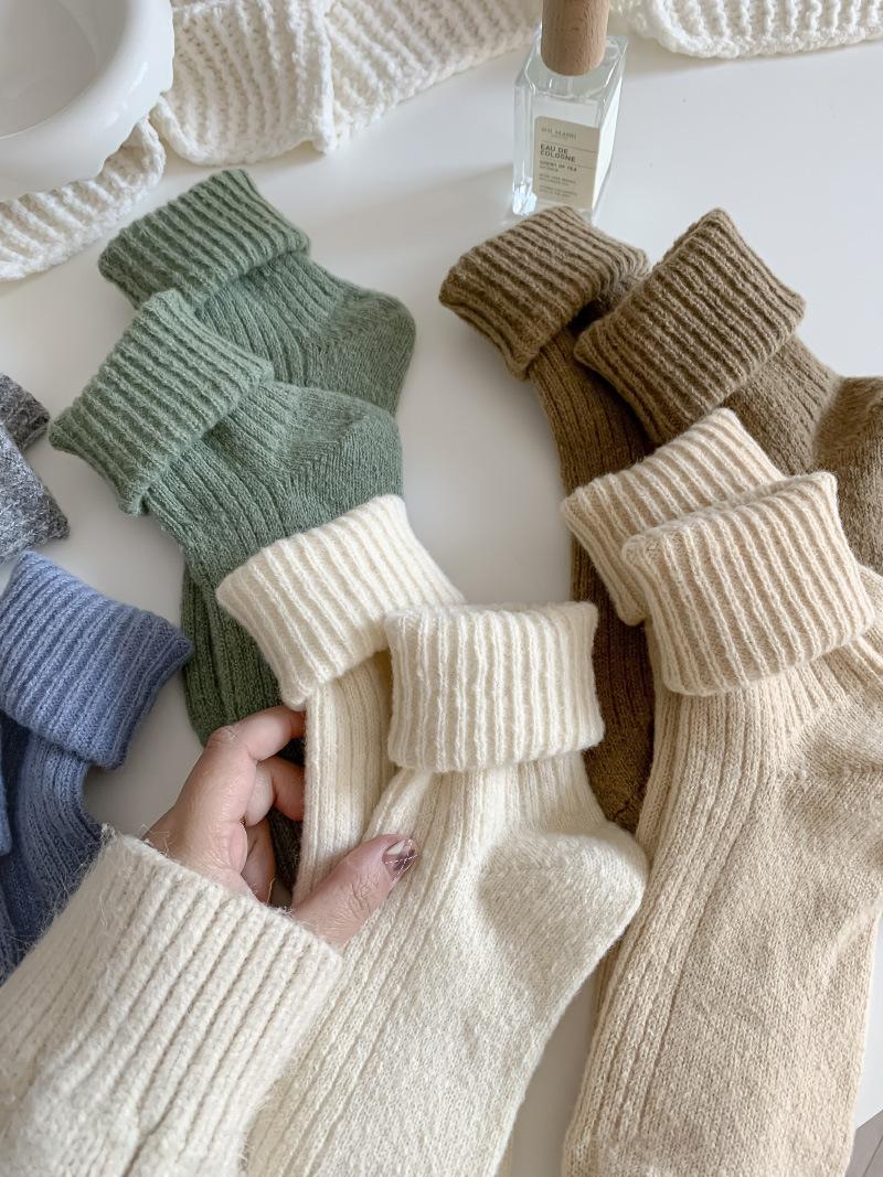 Calcetines Gruesos de Invierno para Mujer Calcetines de Lana de Media Caña Coreanos ins Cálidos Suaves Calcetines de Media Caña con Cordón Calcetines de Rizo Calcetines de Mujer