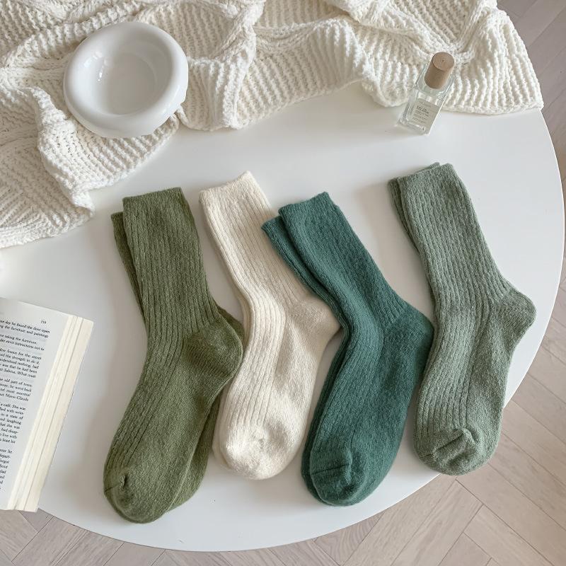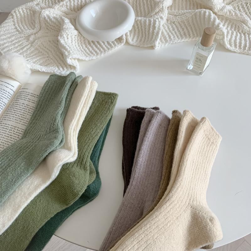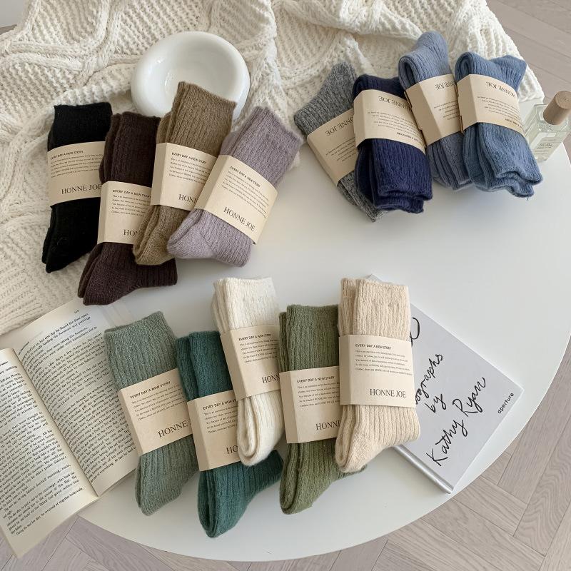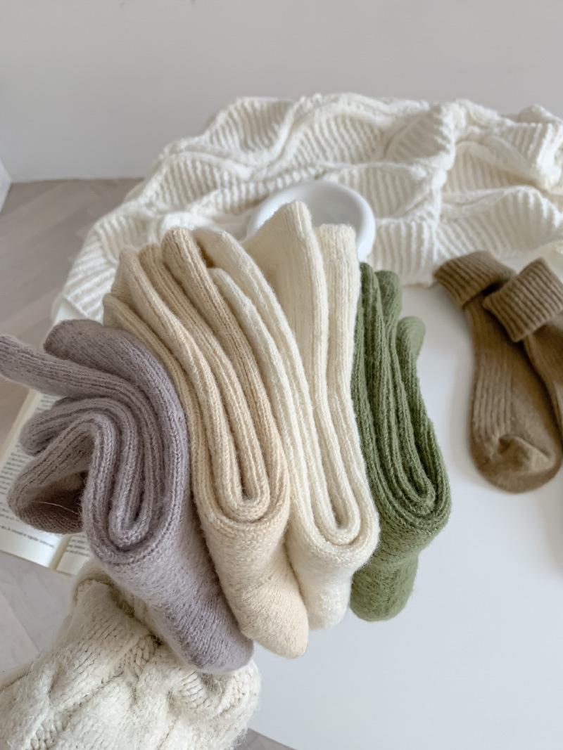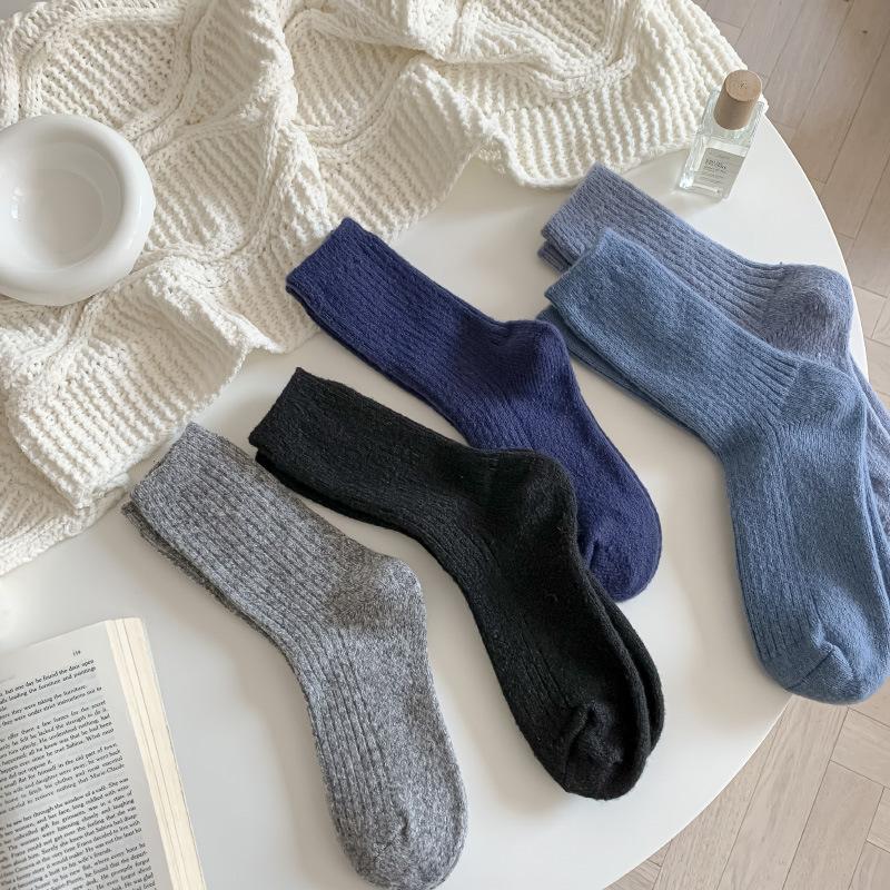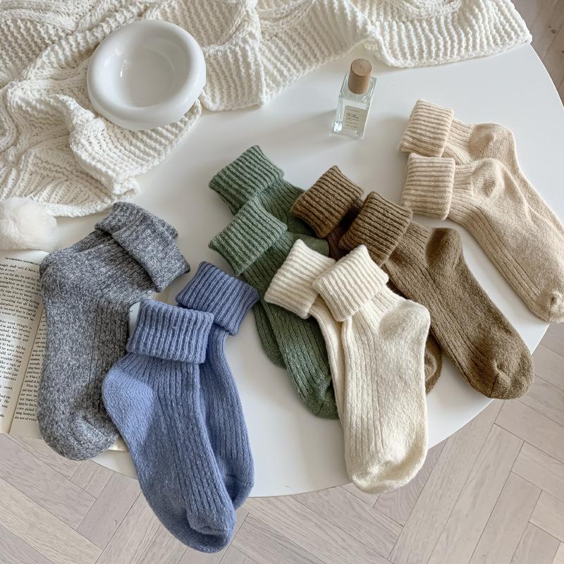 Calcetines Gruesos de Invierno para Mujer Calcetines de Lana de Media Caña Coreanos ins Cálidos Suaves Calcetines de Media Caña con Cordón Calcetines de Rizo Calcetines de Mujer