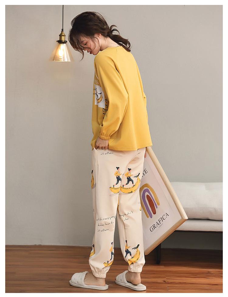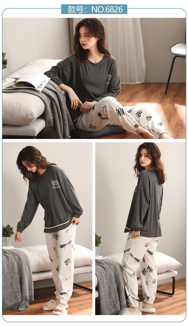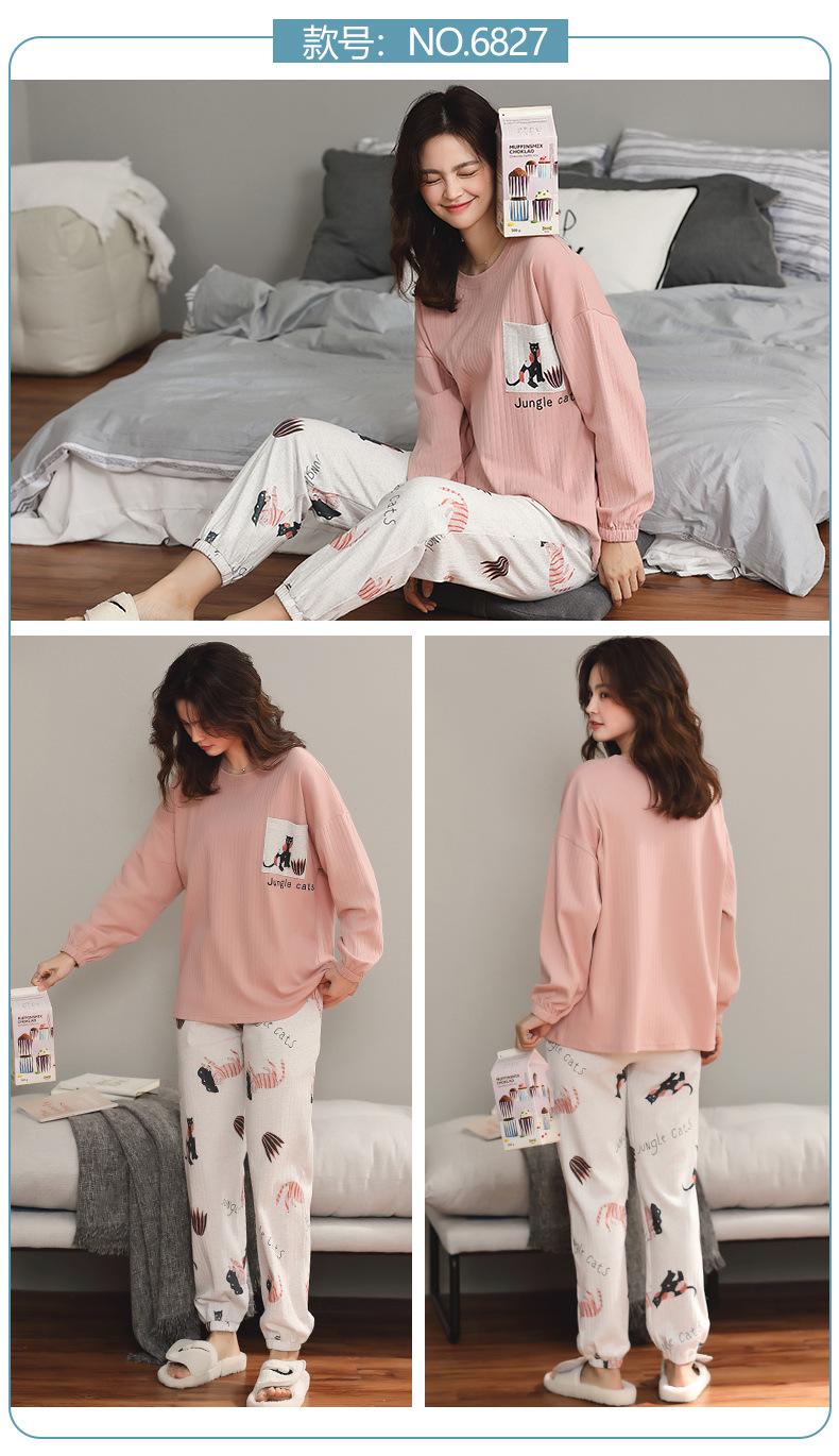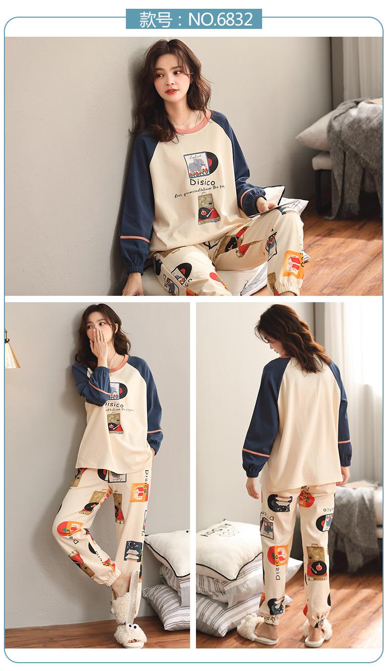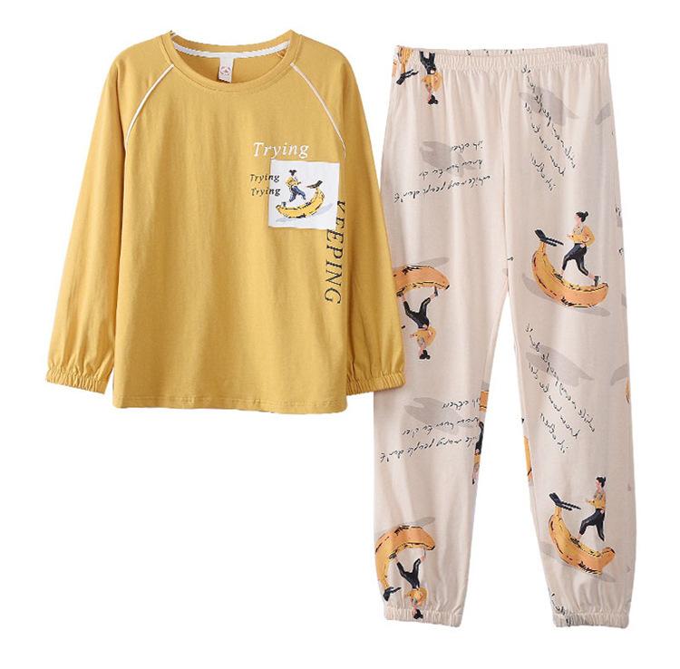 Pijamas de mujer de otoño de algodón de manga larga para mujer, finos, bonitos, con dibujos animados, para estar en casa, informales, para otoño y primavera.