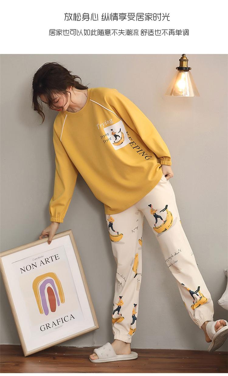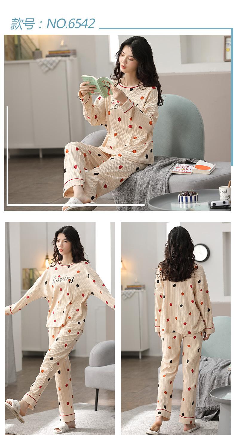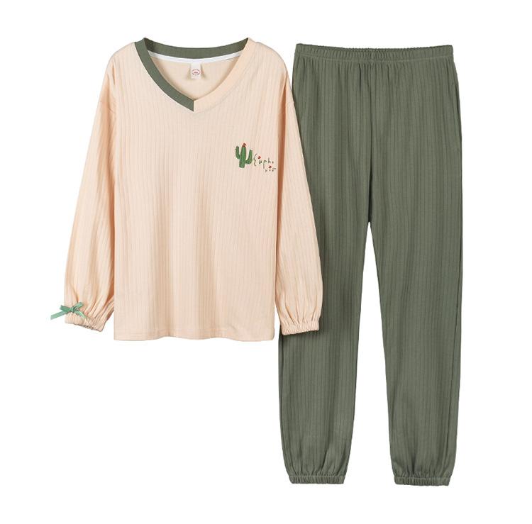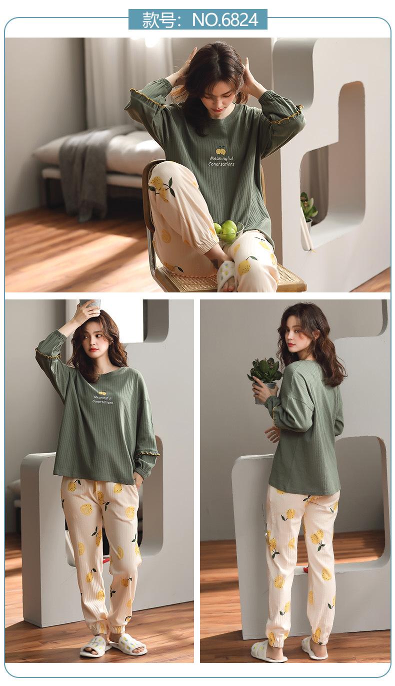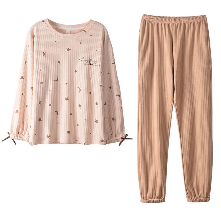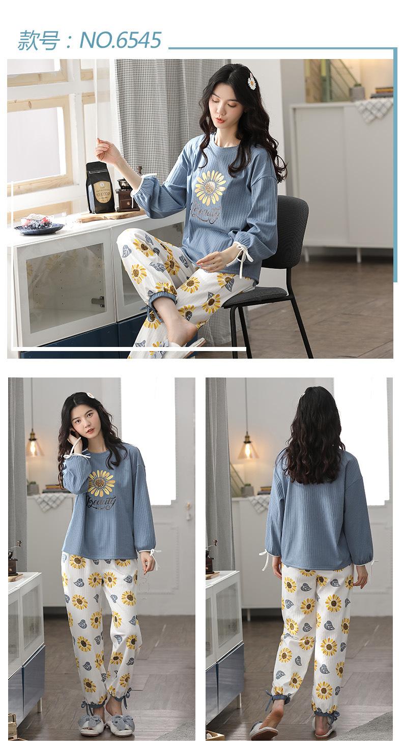 Pijamas de mujer de otoño de algodón de manga larga para mujer, finos, bonitos, con dibujos animados, para estar en casa, informales, para otoño y primavera.