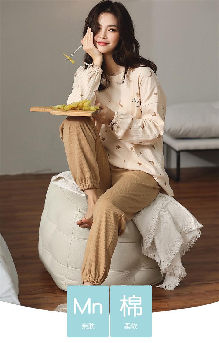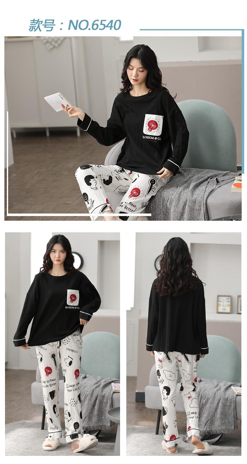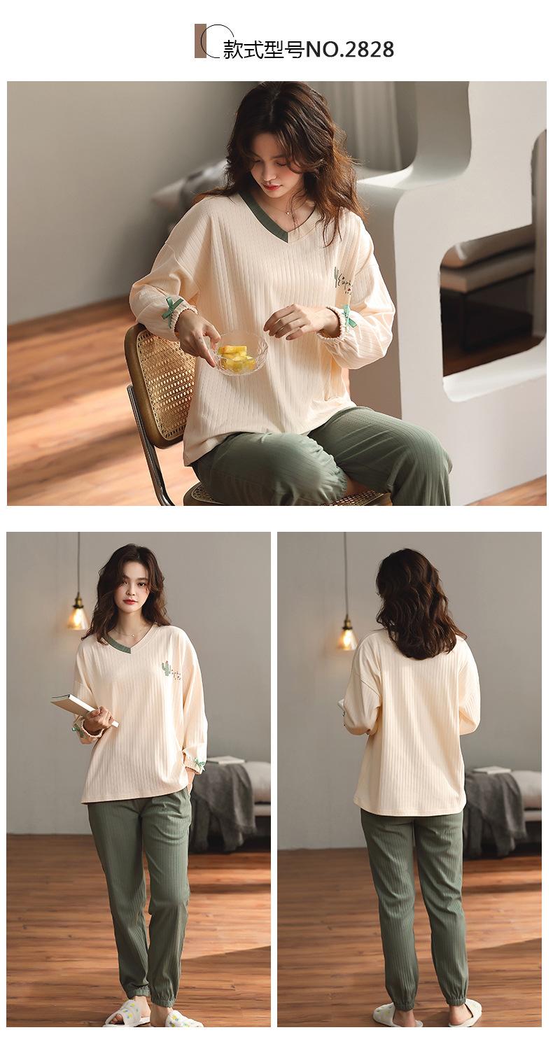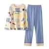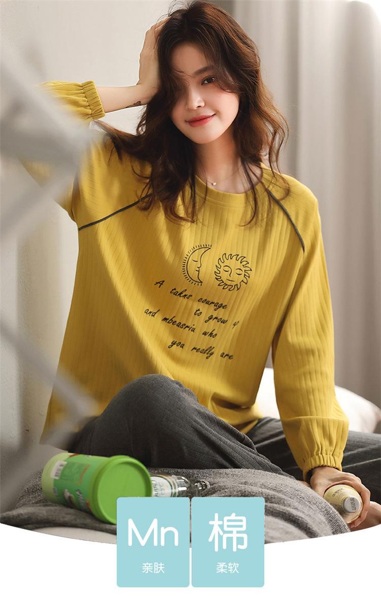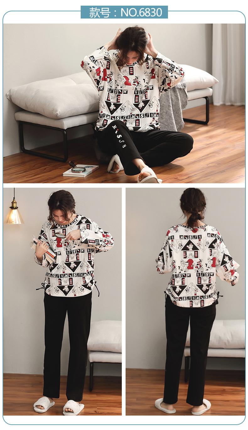 Pijamas de mujer de otoño de algodón de manga larga para mujer, finos, bonitos, con dibujos animados, para estar en casa, informales, para otoño y primavera.