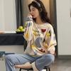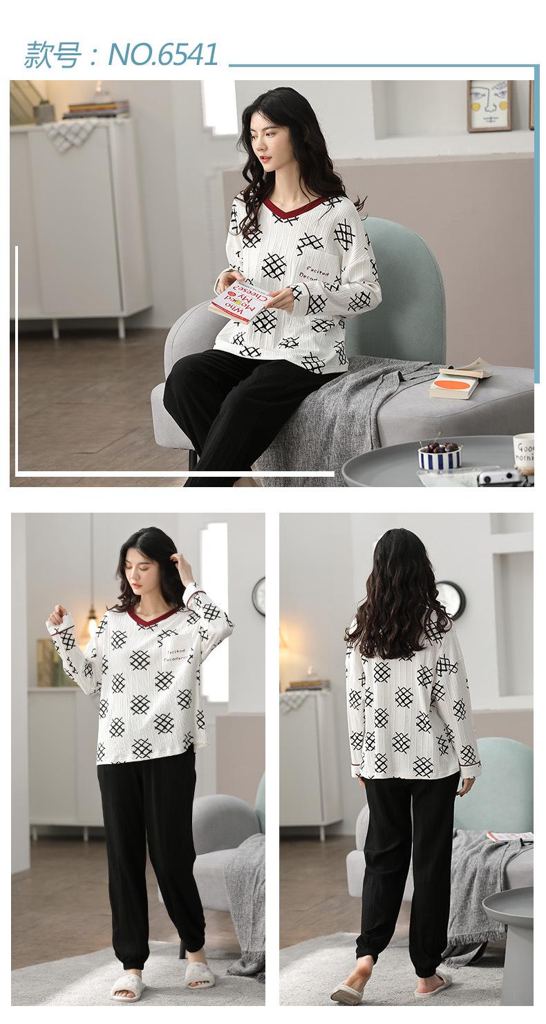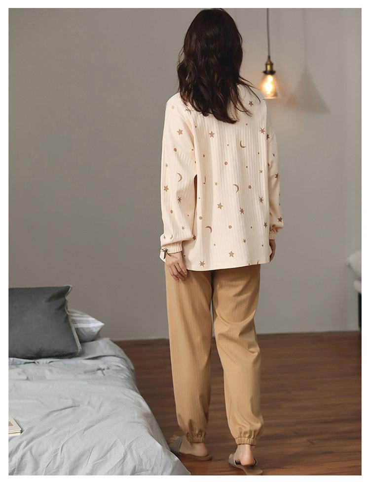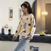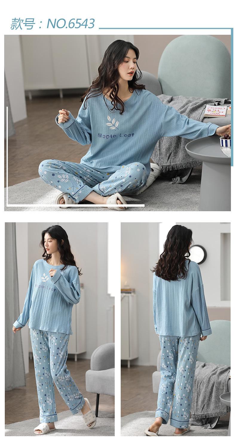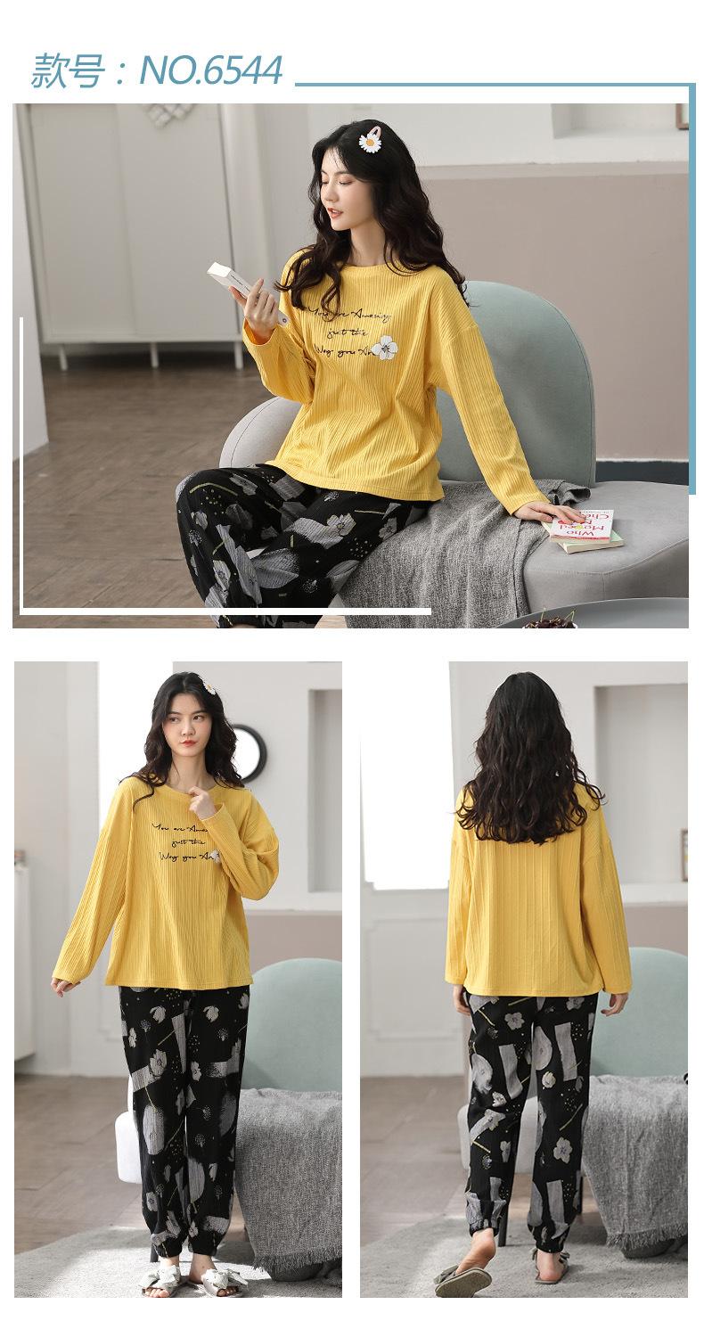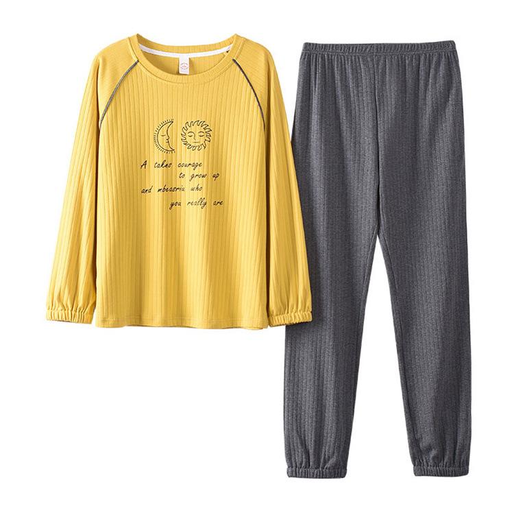 Pijamas de mujer de otoño de algodón de manga larga para mujer, finos, bonitos, con dibujos animados, para estar en casa, informales, para otoño y primavera.