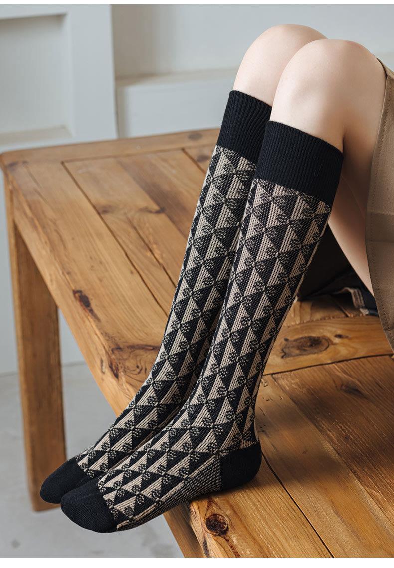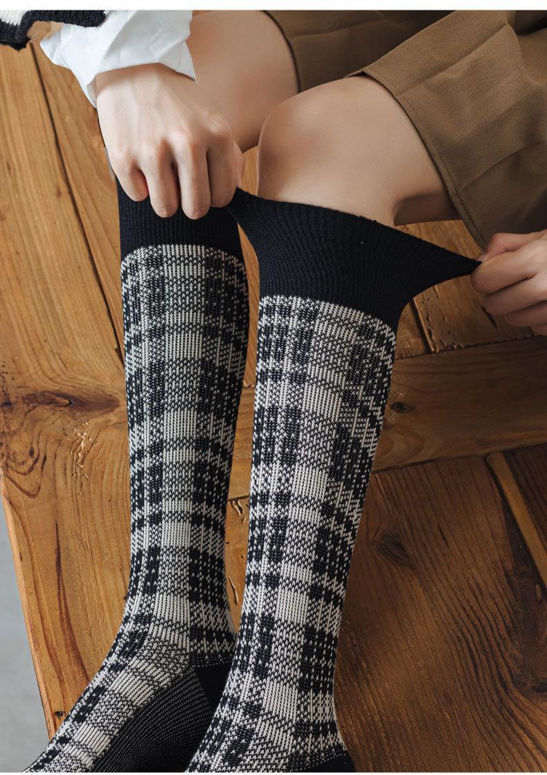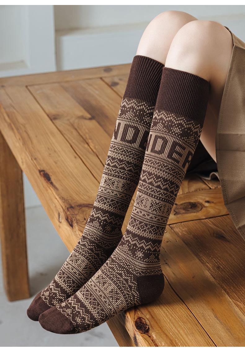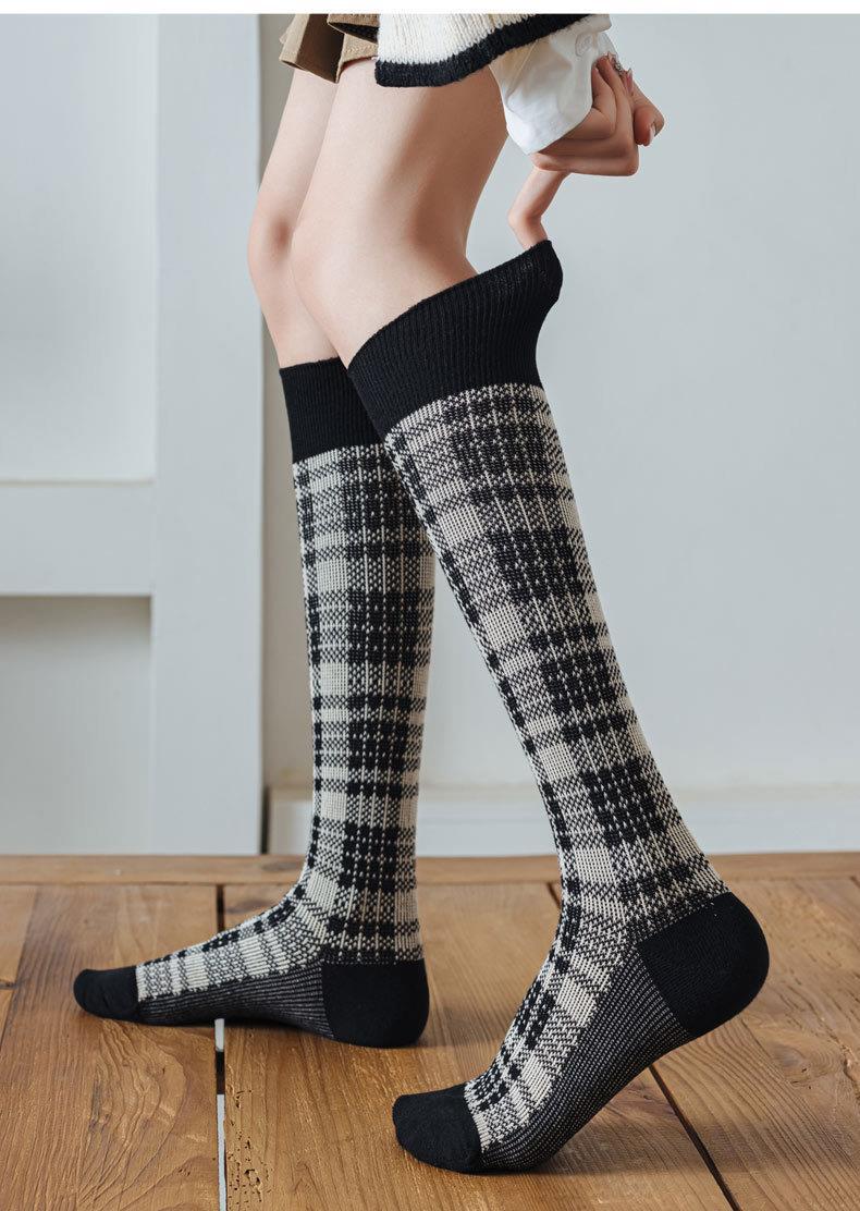 Calcetines con puño para niños hasta la rodilla estilo británico zapatos pequeños de cuero color curry ligeramente compresores adelgazantes otoño e invierno doble aguja doble camino retro calcetines altos