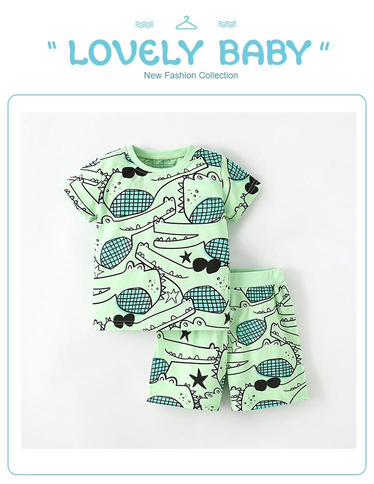 2025 Nuevo Traje de Verano para Niños Camiseta Algodón Manga Corta Shorts Conjunto de Dos Piezas Nuevo Ropa para Niños Casual y Cómoda Europea y Americana