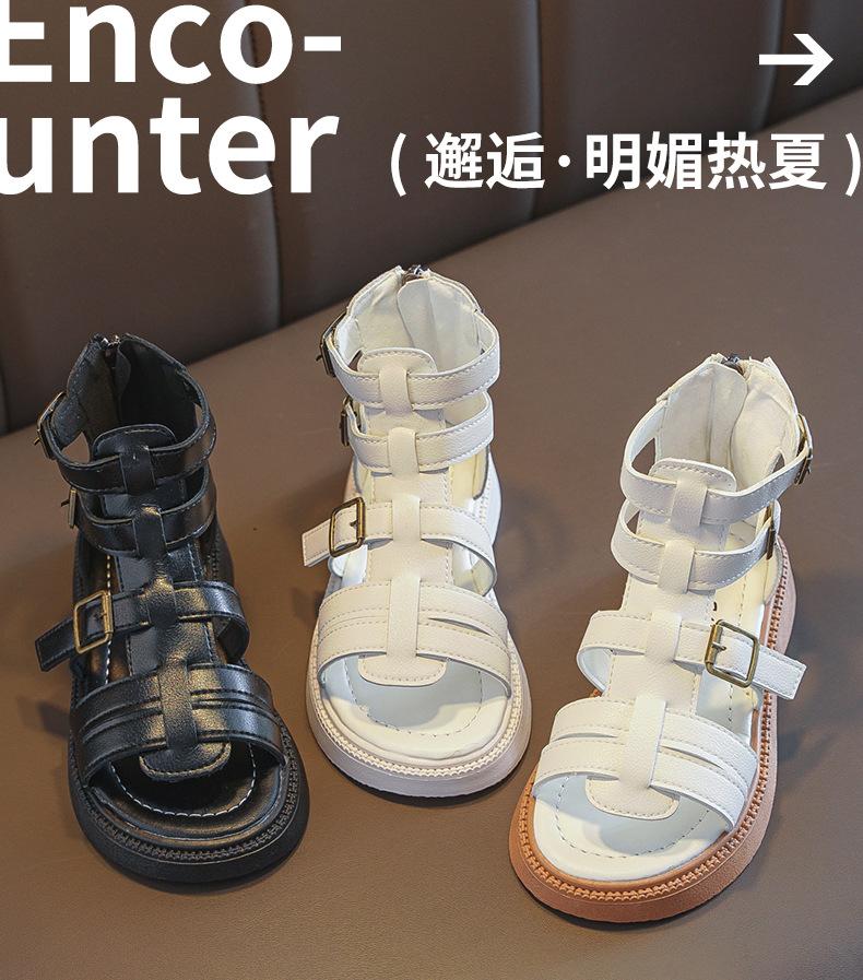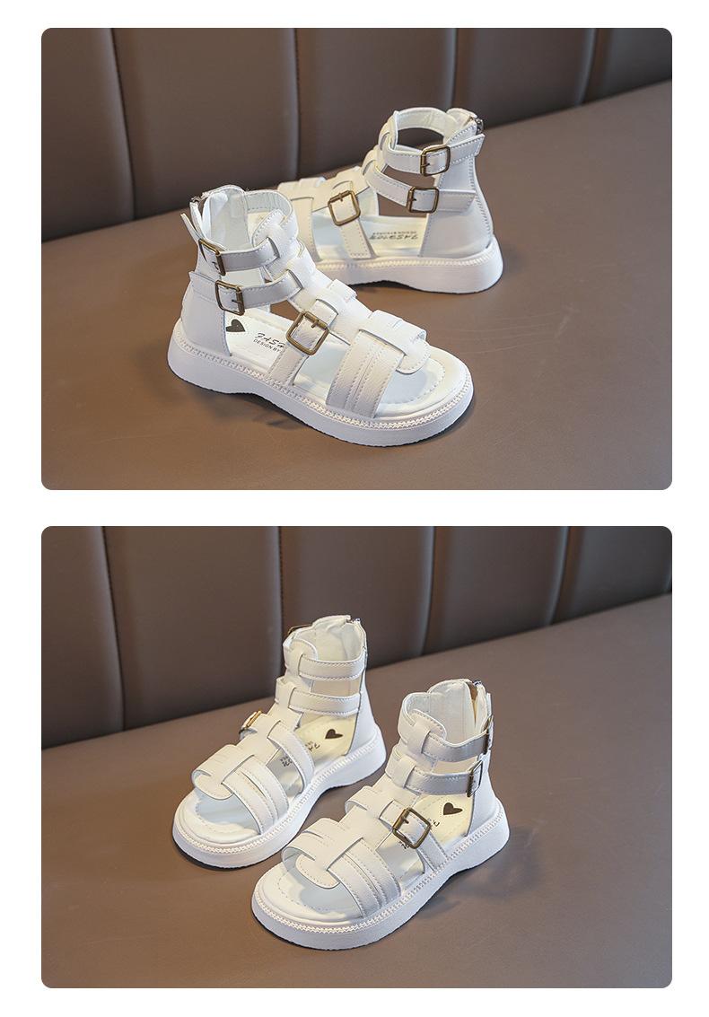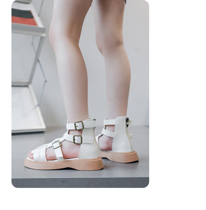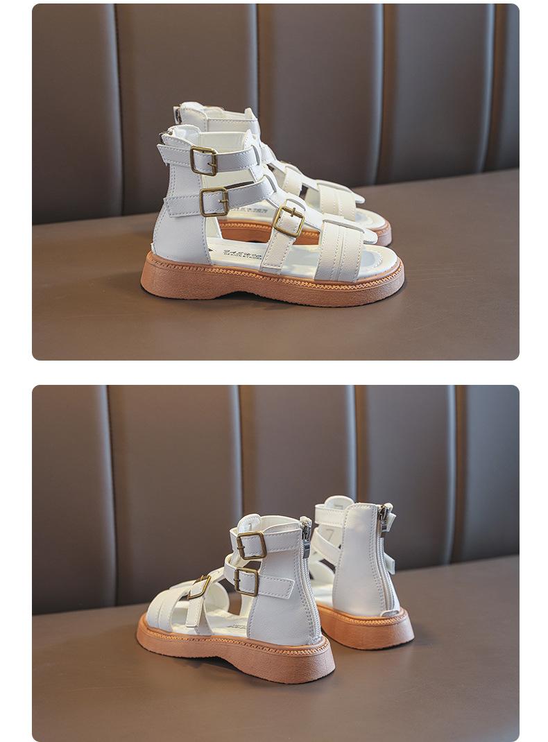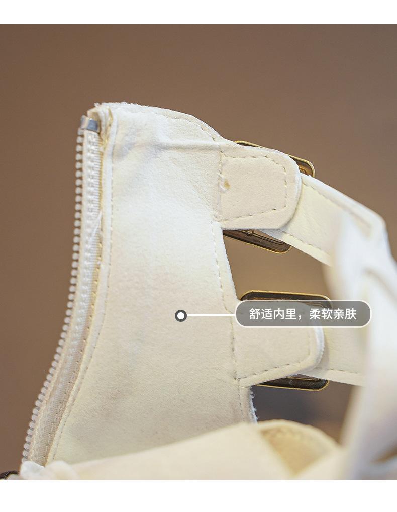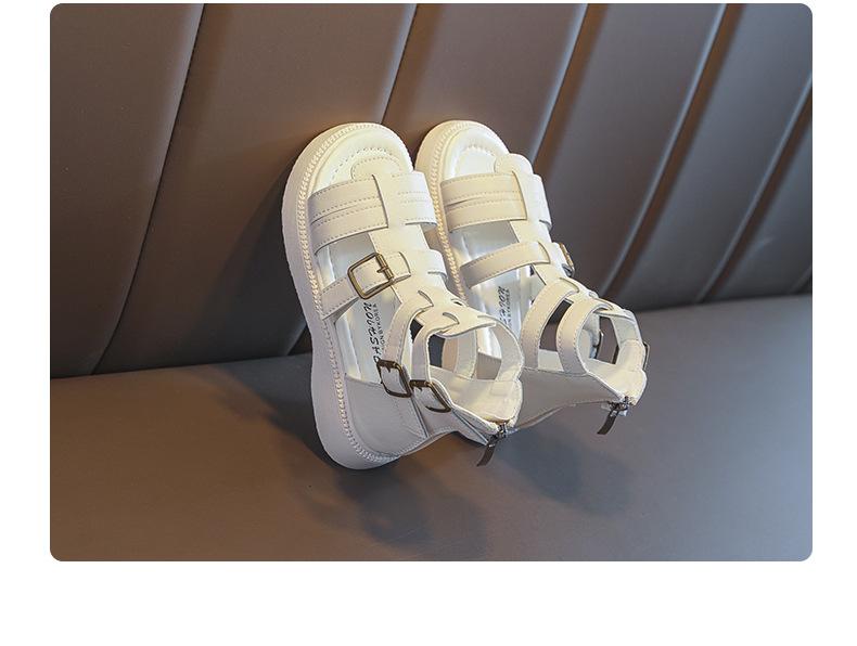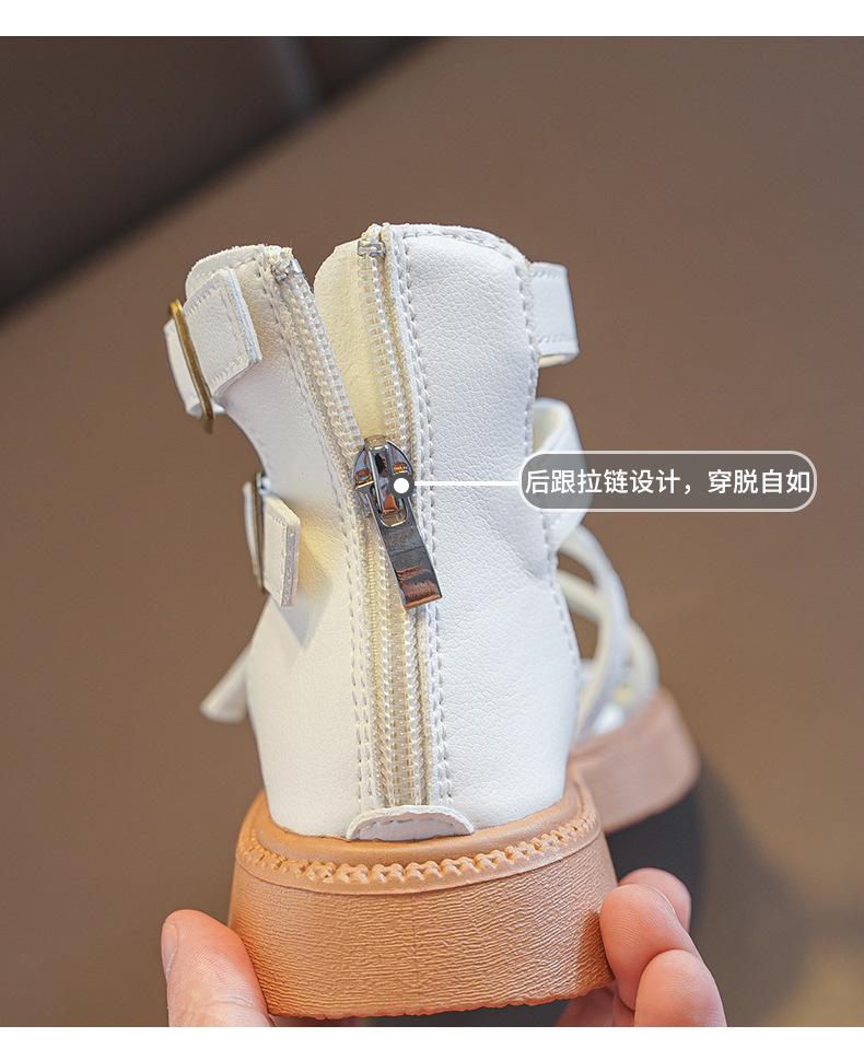 Sandalias Romanas para Niñas 2025 Verano Nuevo Estilo para Niños Mayores, Zapatos de Princesa Antideslizantes con Cremallera Trasera, Zapatos de Moda de Media Caña para Estudiantes