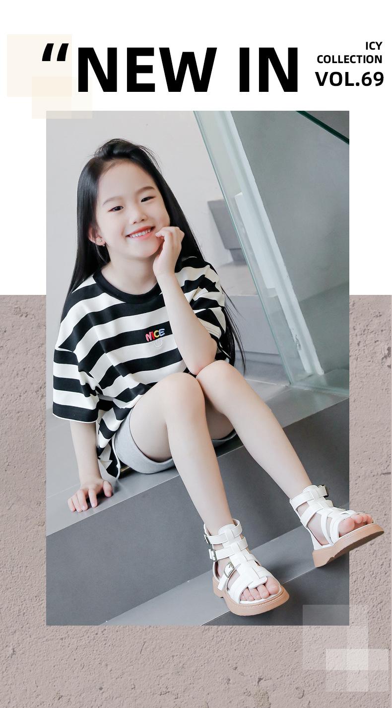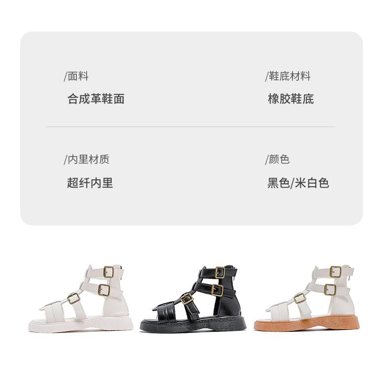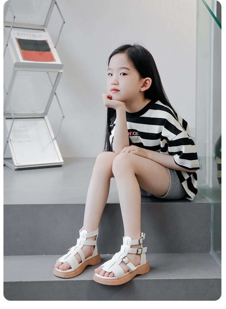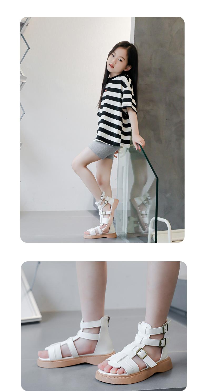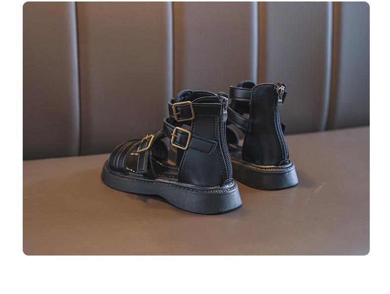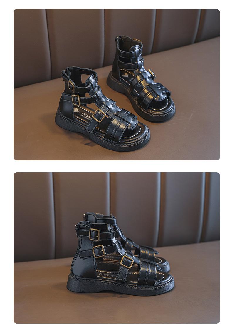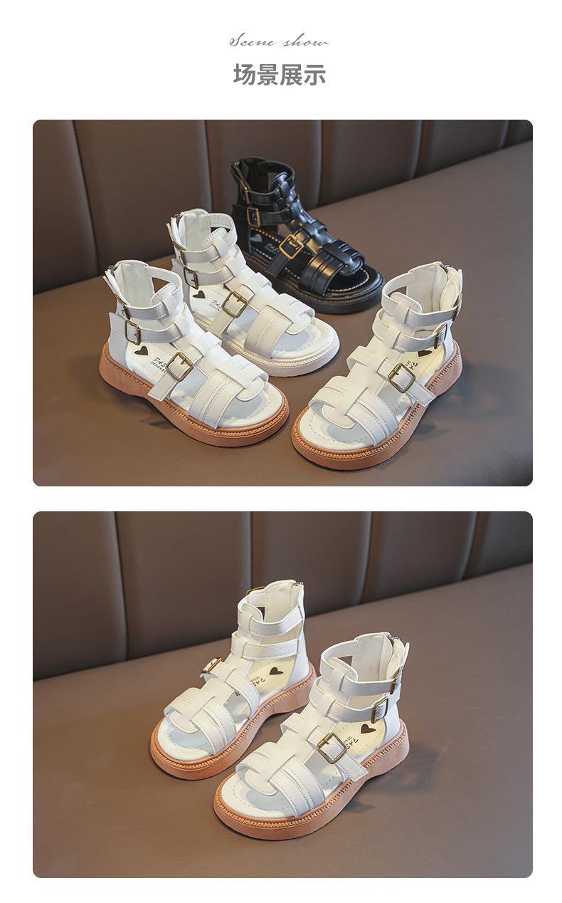 Sandalias Romanas para Niñas 2025 Verano Nuevo Estilo para Niños Mayores, Zapatos de Princesa Antideslizantes con Cremallera Trasera, Zapatos de Moda de Media Caña para Estudiantes