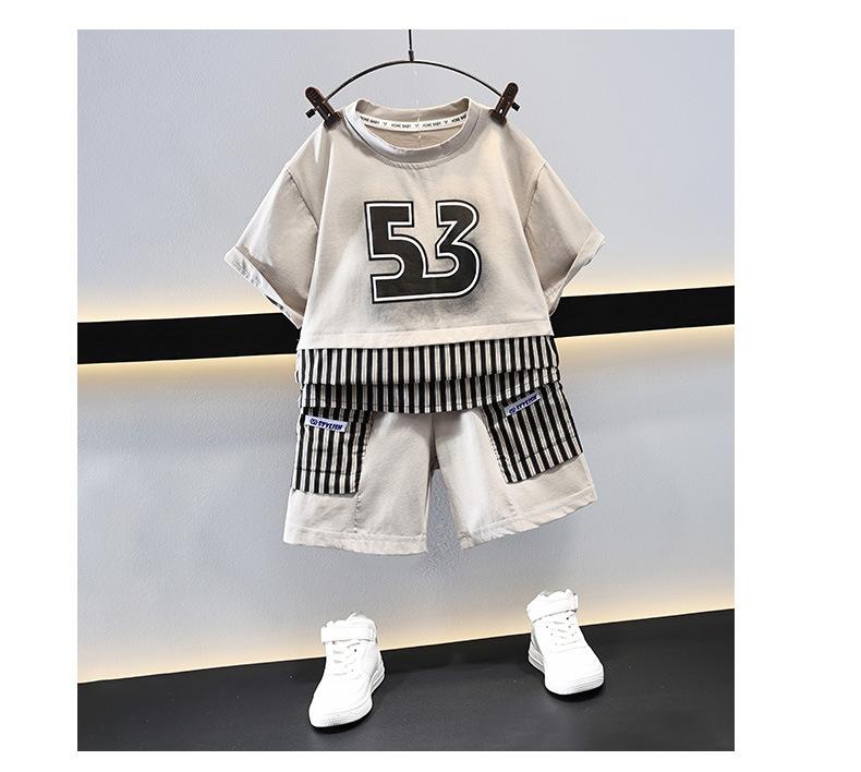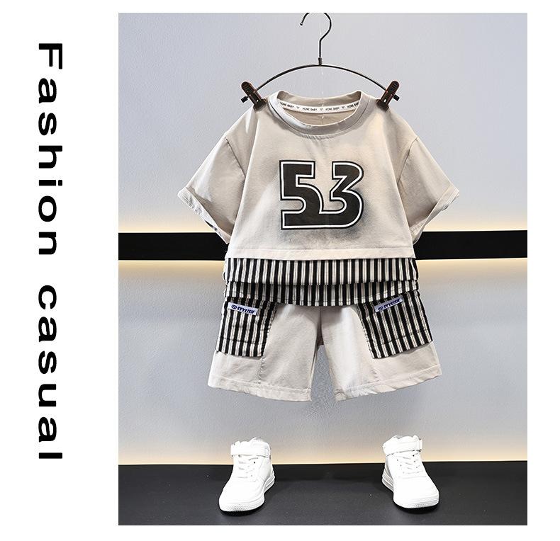 Traje de Verano para Niño 2025 Nueva Moda Bebé Verano Manga Corta Niños Celebridad de Internet Guapo Calle Conjunto de Dos Piezas Moderno