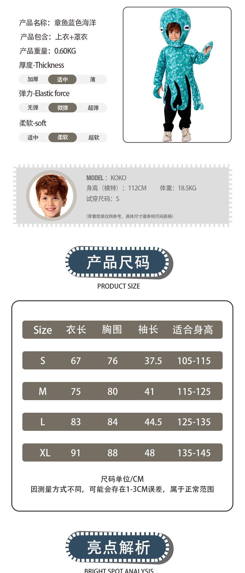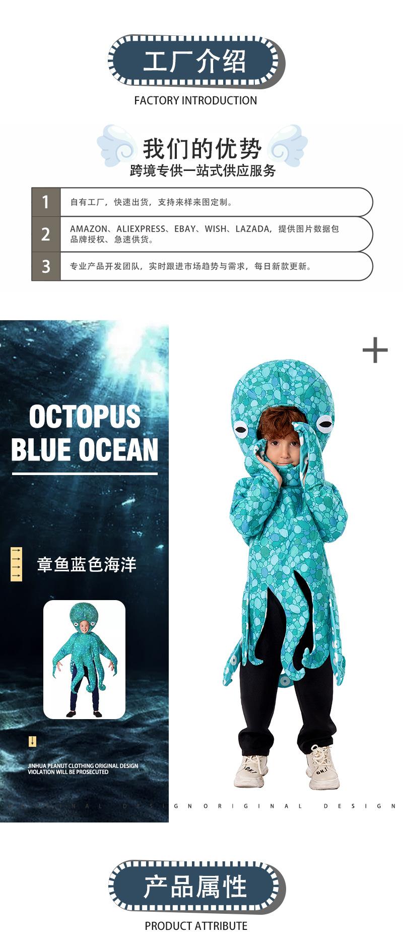 Disfraz divertido de Halloween océano animal cos pulpo ropa de actuación escénica para fiesta de festival de campus infantil
