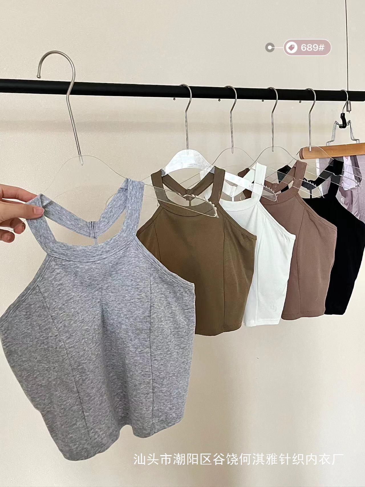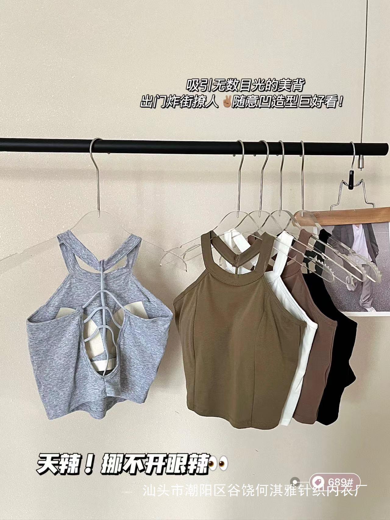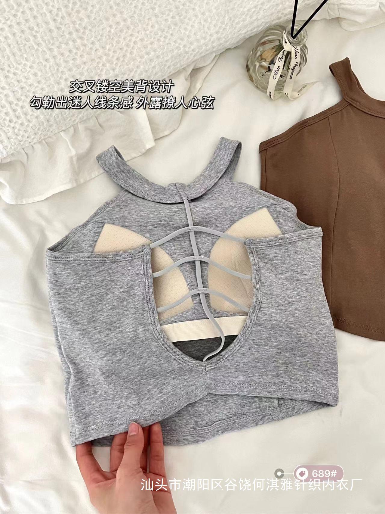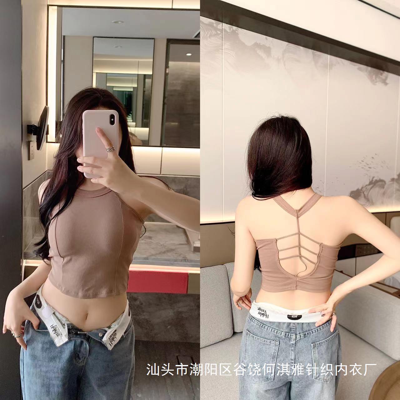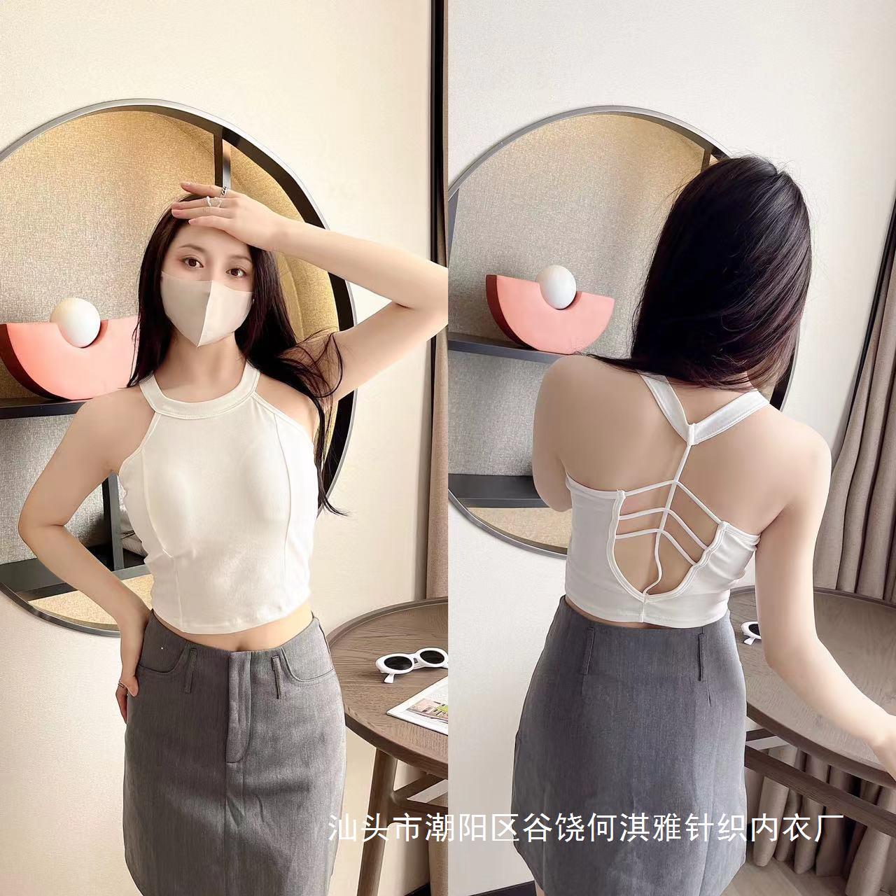 Camisola halter con espalda descubierta y huecos de primavera y verano para mujer, ropa interior sexy de copa fija de una pieza, ropa exterior, top sin mangas