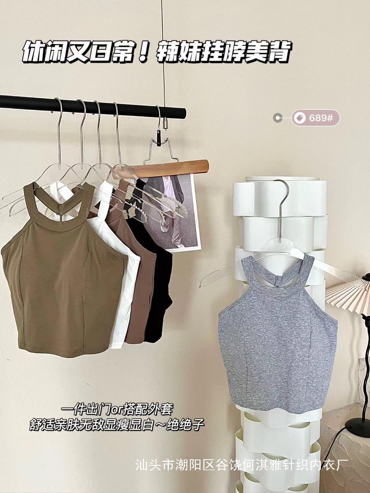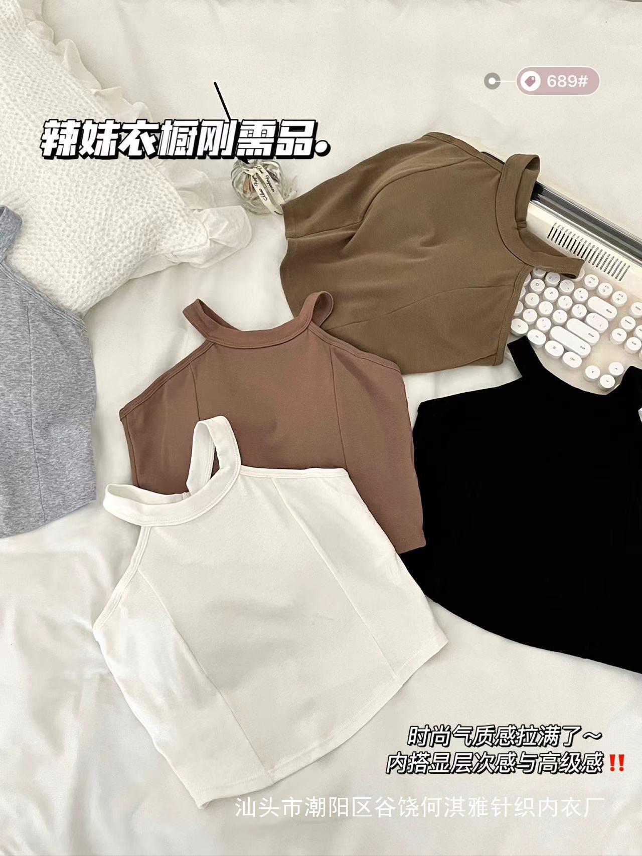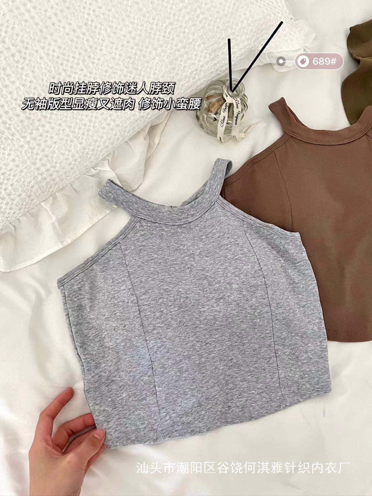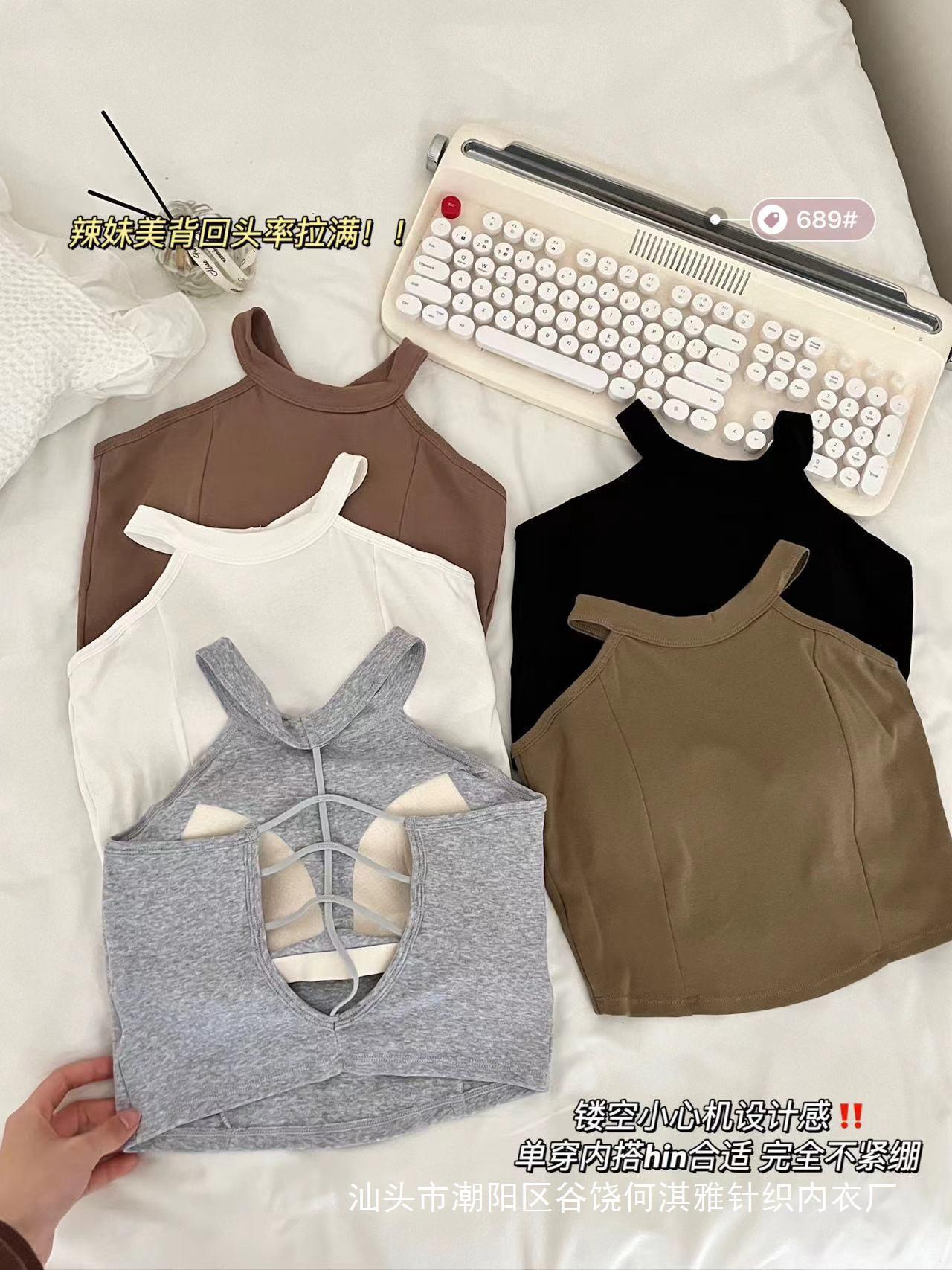 Camisola halter con espalda descubierta y huecos de primavera y verano para mujer, ropa interior sexy de copa fija de una pieza, ropa exterior, top sin mangas