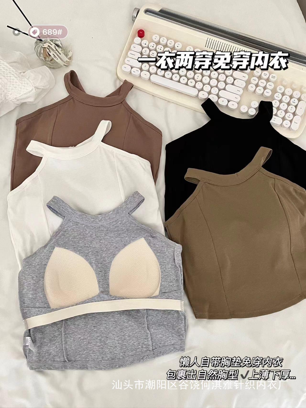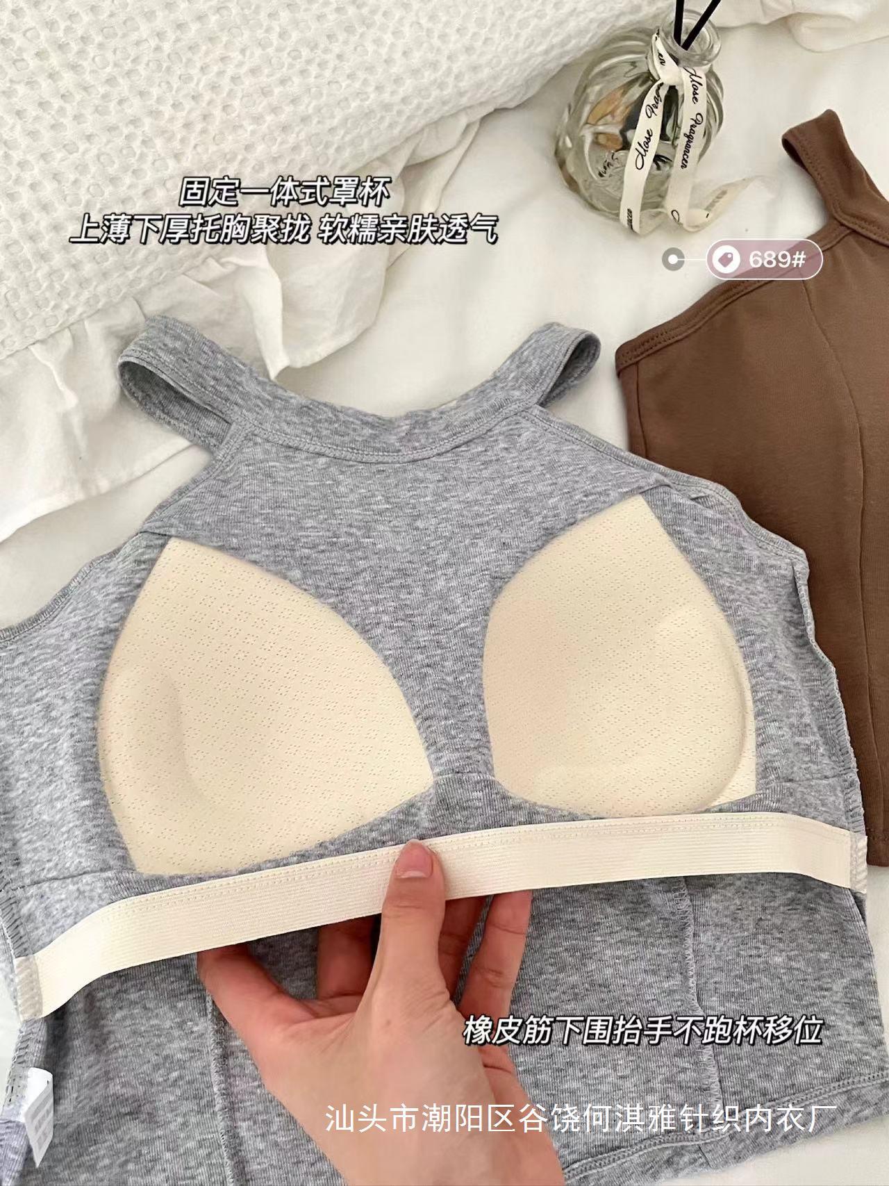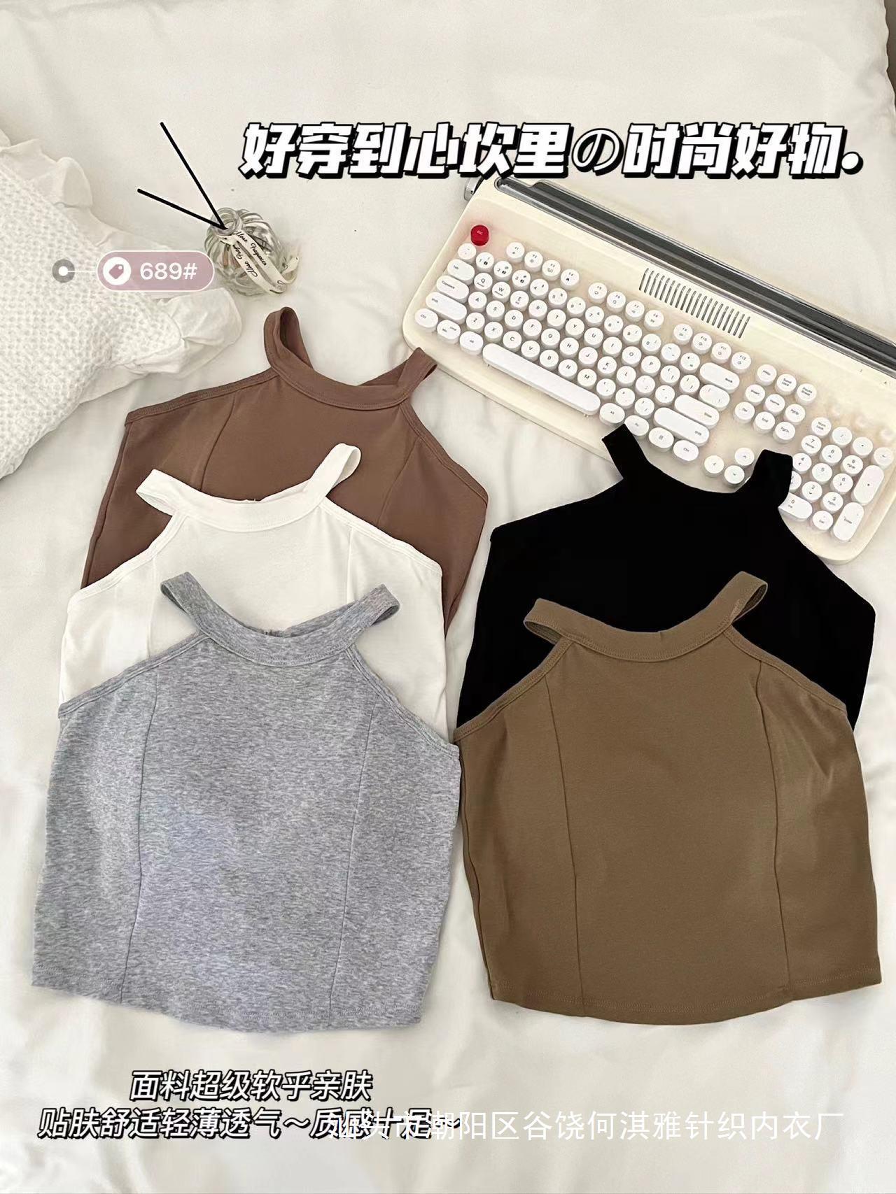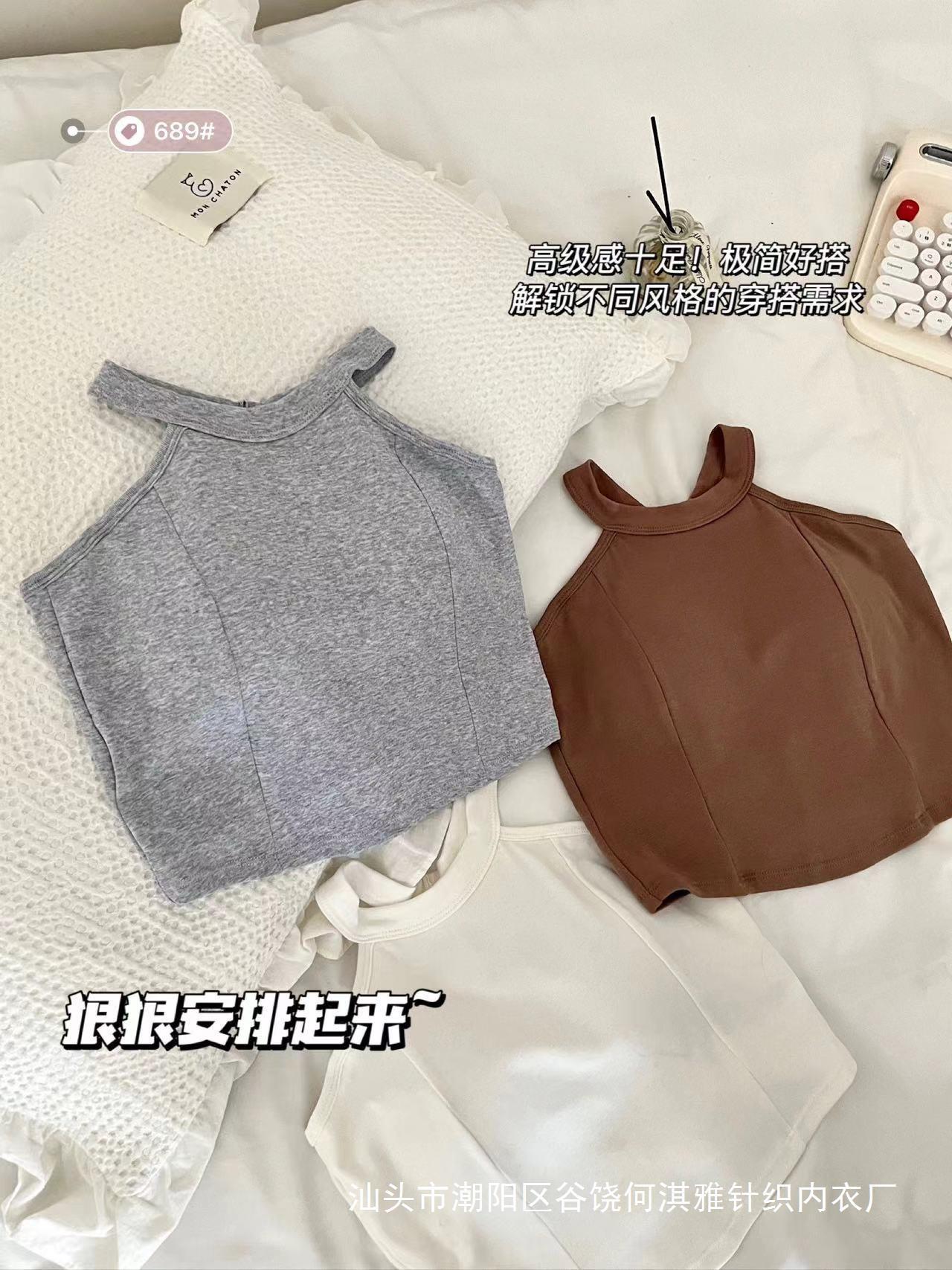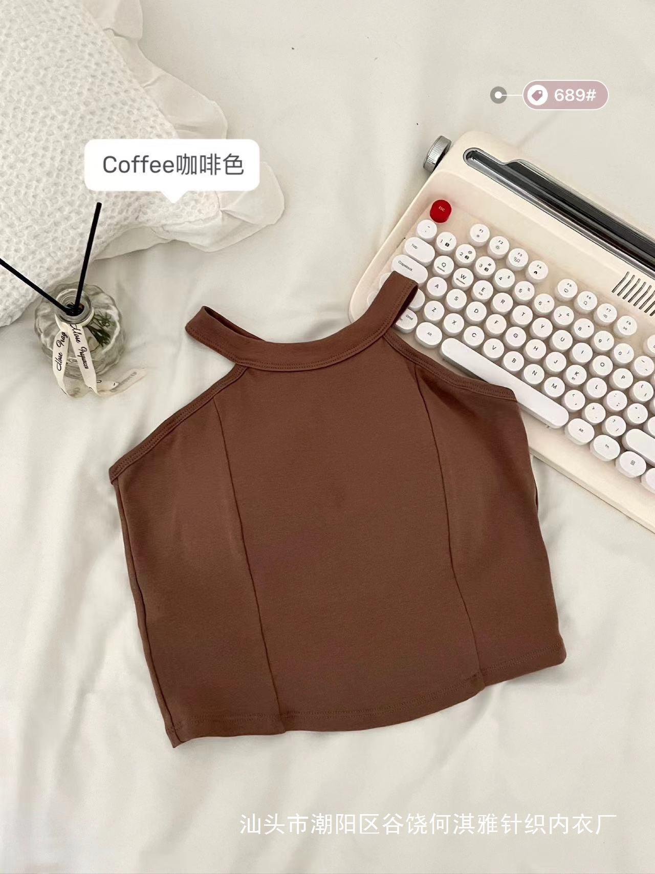 Camisola halter con espalda descubierta y huecos de primavera y verano para mujer, ropa interior sexy de copa fija de una pieza, ropa exterior, top sin mangas