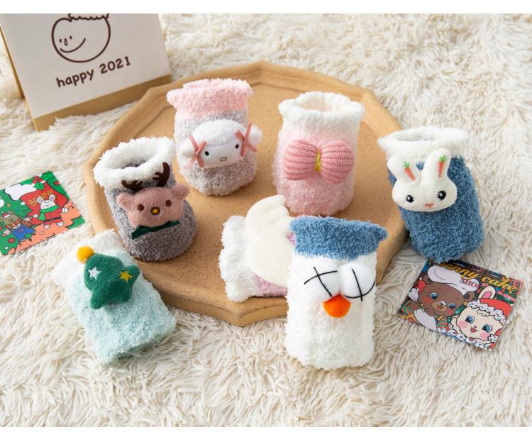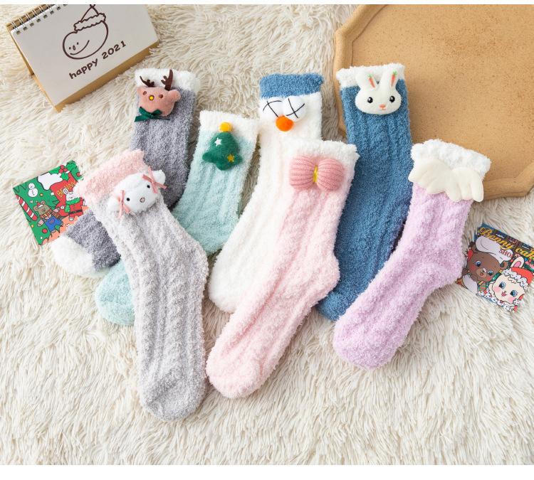 Calcetines de Nieve para Mujer Calcetines de Media Caña Calcetines Gruesos de Piso Muñeco Twist Otoño e Invierno Calcetines de Vellón Coral Calcetines de Dibujos Animados de Amazon