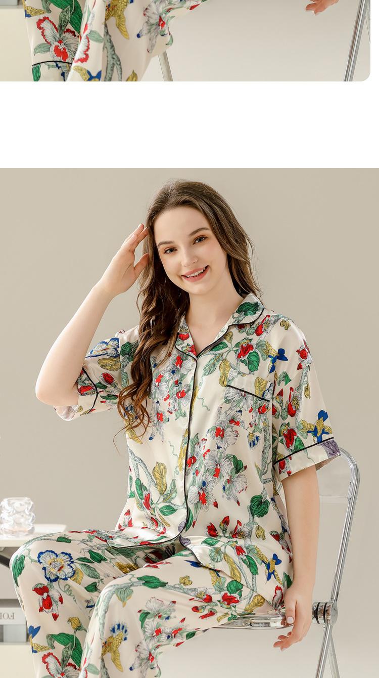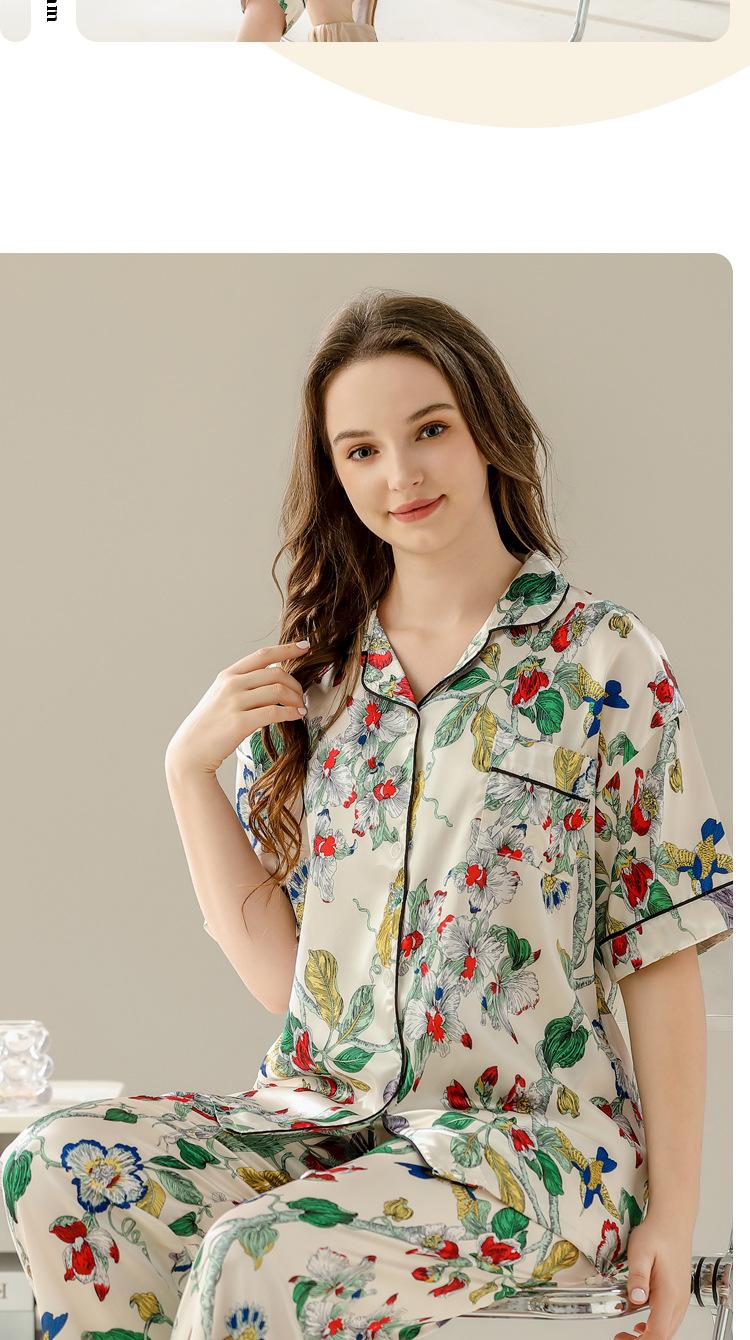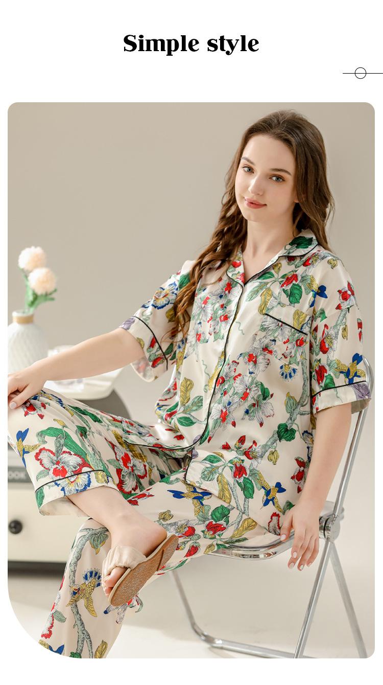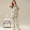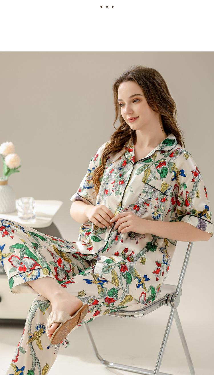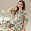 Pijamas de seda de hielo de estilo coreano transfronterizo para mujer, pantalones de manga corta de primavera y otoño, ropa de casa de moda de seda floral para traje