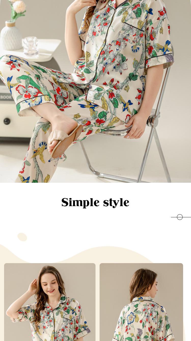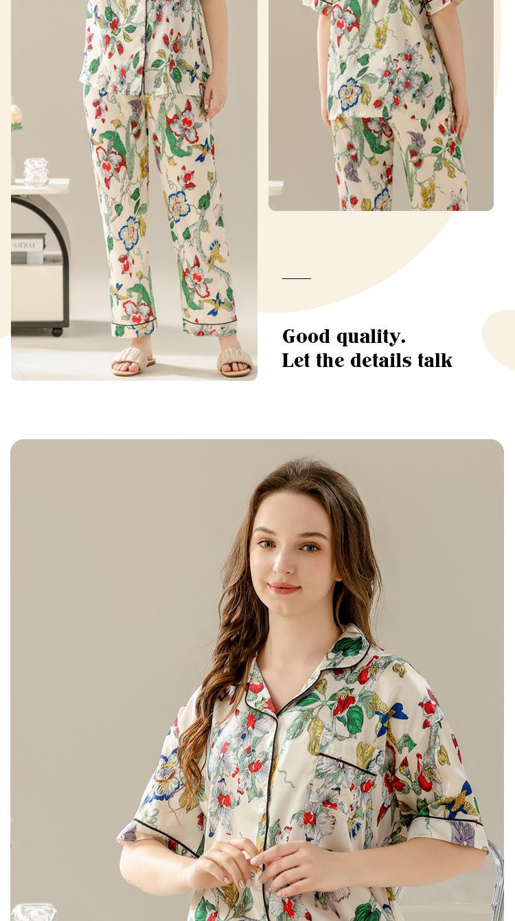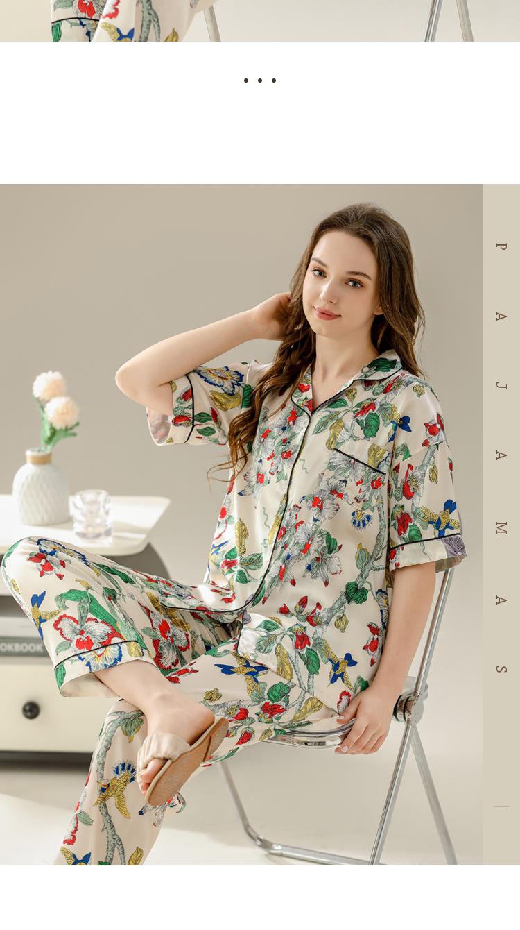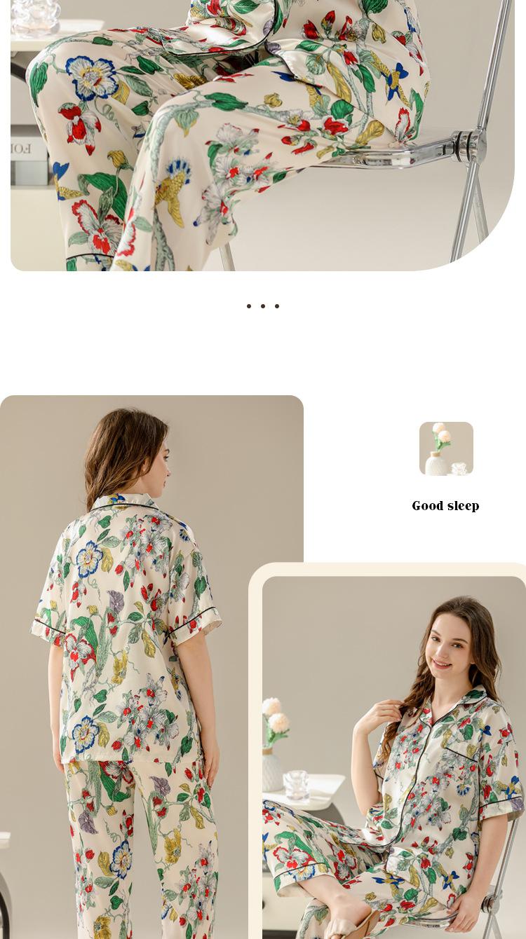 Pijamas de seda de hielo de estilo coreano transfronterizo para mujer, pantalones de manga corta de primavera y otoño, ropa de casa de moda de seda floral para traje