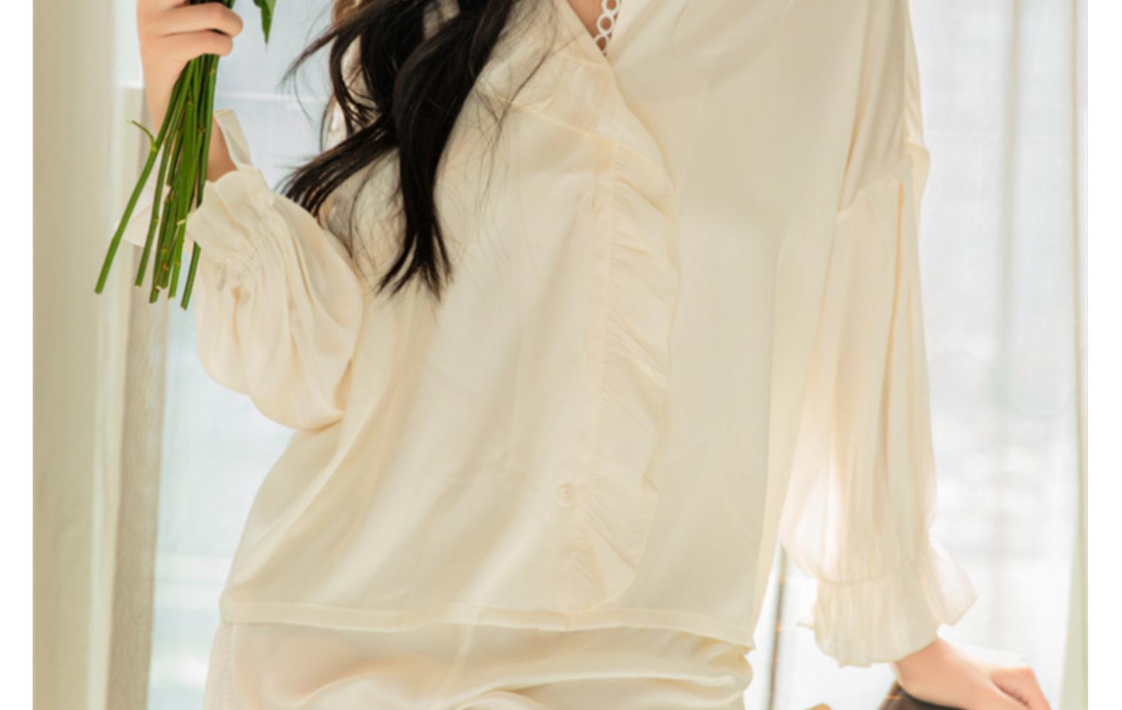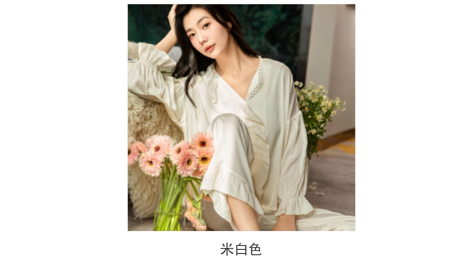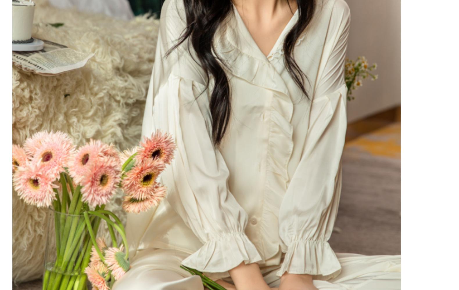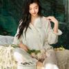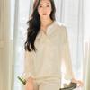 Pijamas de seda de hielo para mujer, primavera y verano, pantalones de manga larga, color liso, estilo corte, Pure Desire, ropa de casa de dos piezas para mujer, 2024