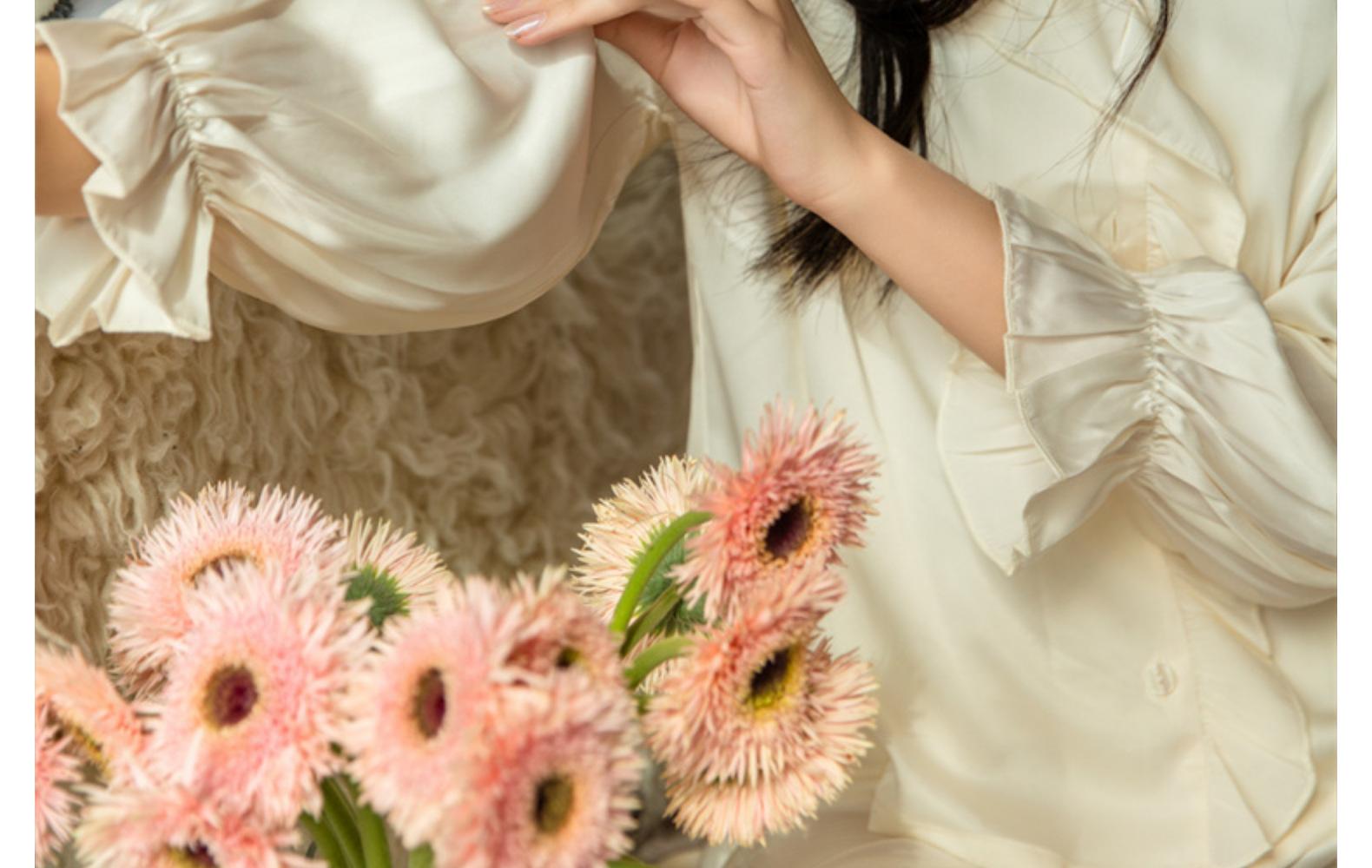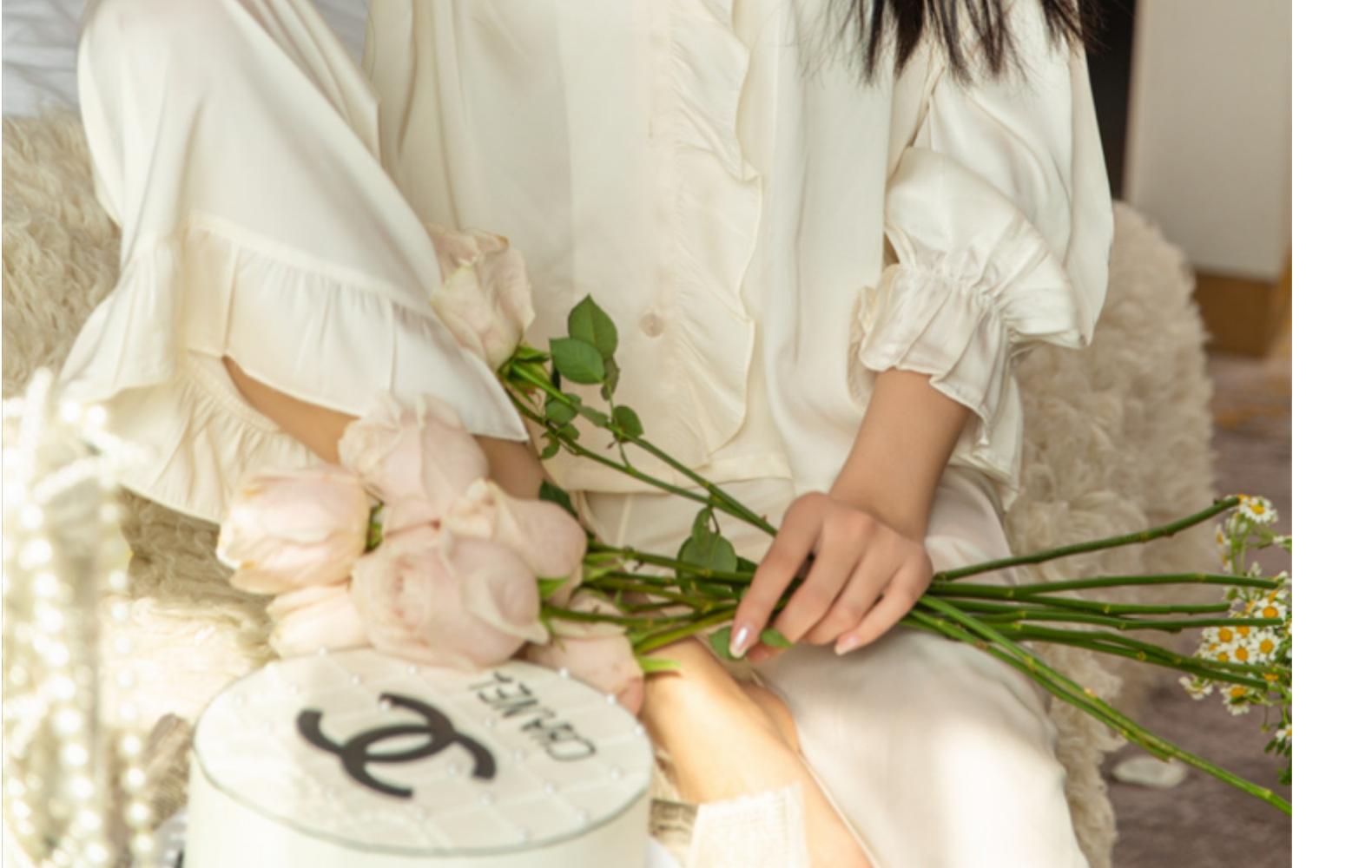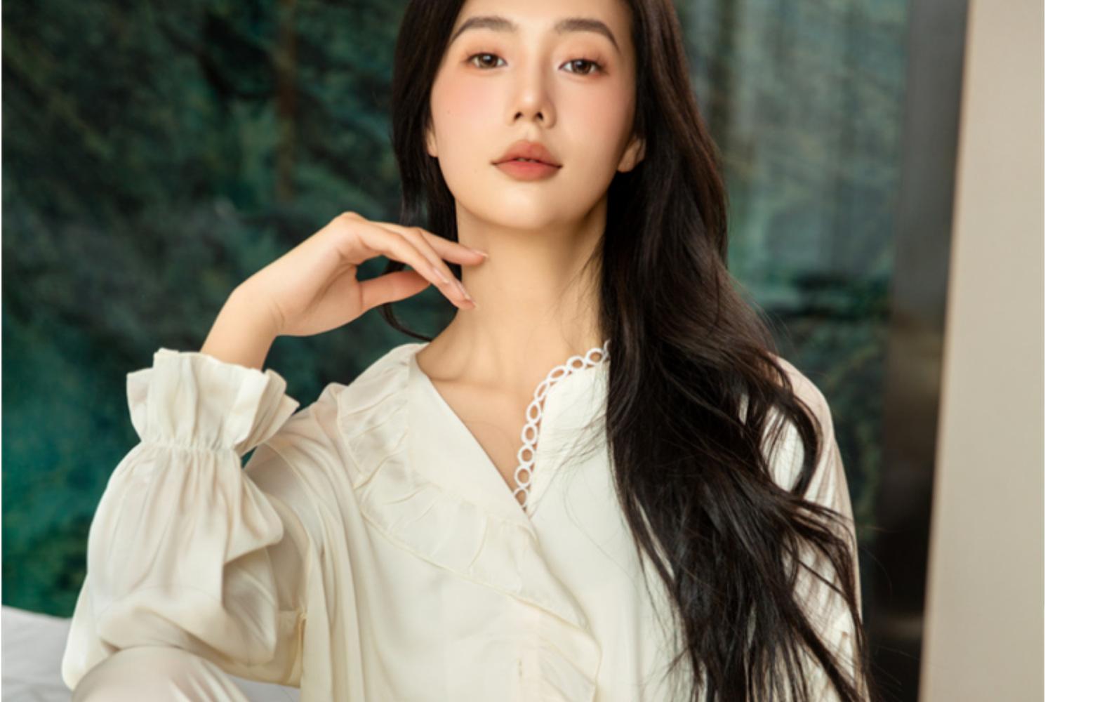 Pijamas de seda de hielo para mujer, primavera y verano, pantalones de manga larga, color liso, estilo corte, Pure Desire, ropa de casa de dos piezas para mujer, 2024