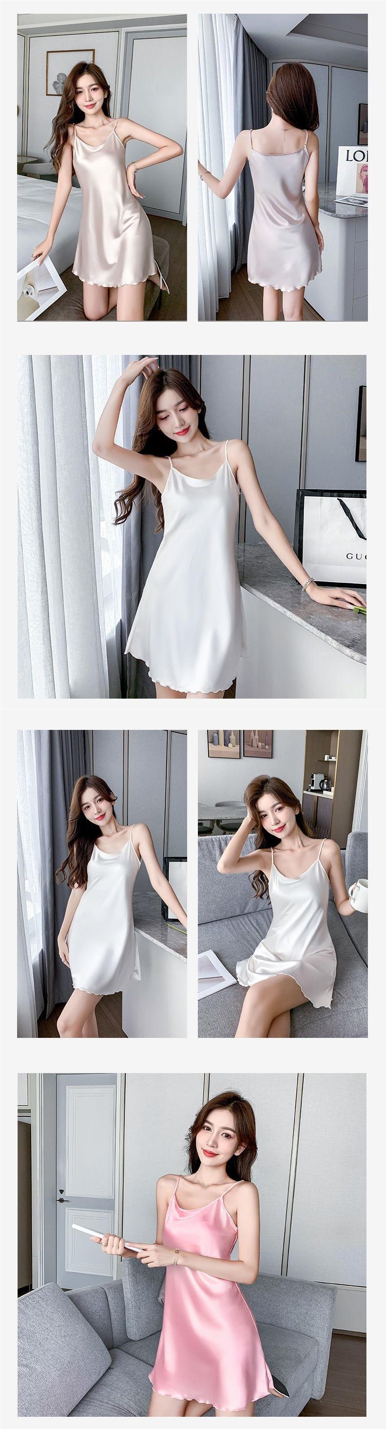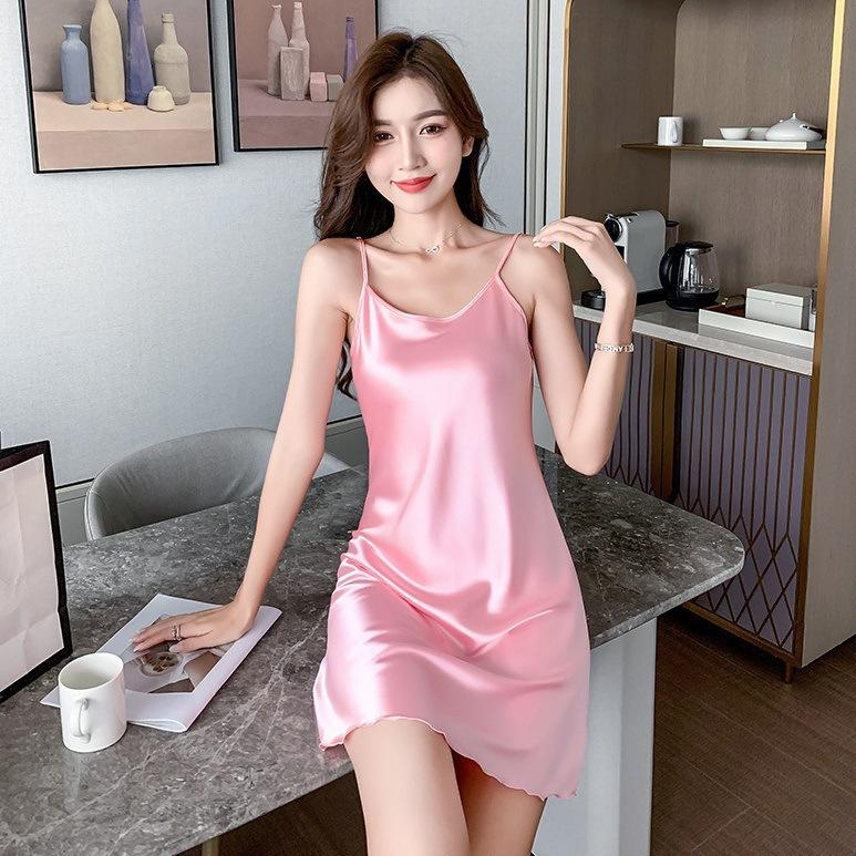 Camisón de seda de hielo de verano para mujer, de seda fina, sexy, similar a la seda, ropa para el hogar, camisola, pijama, prenda inferior usable.