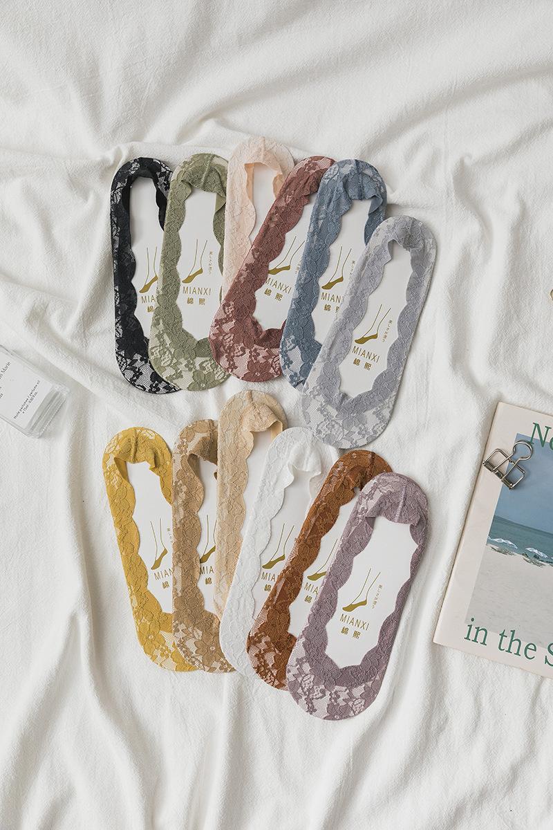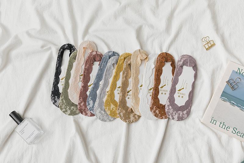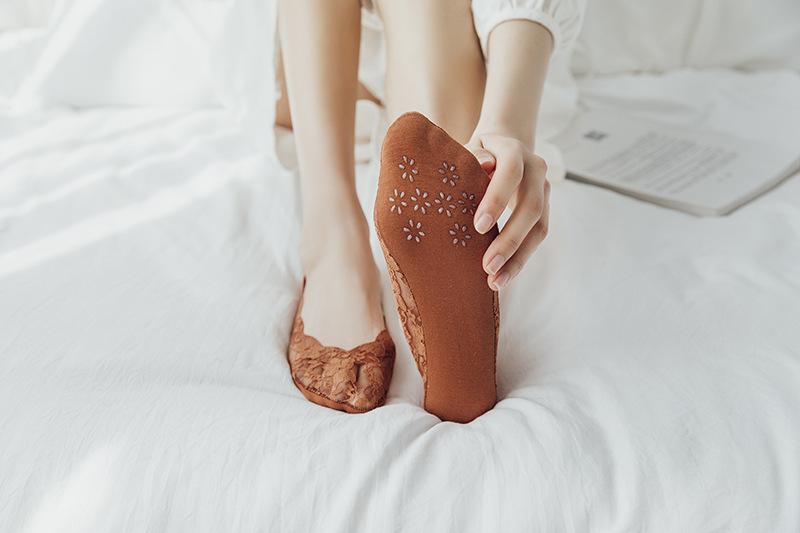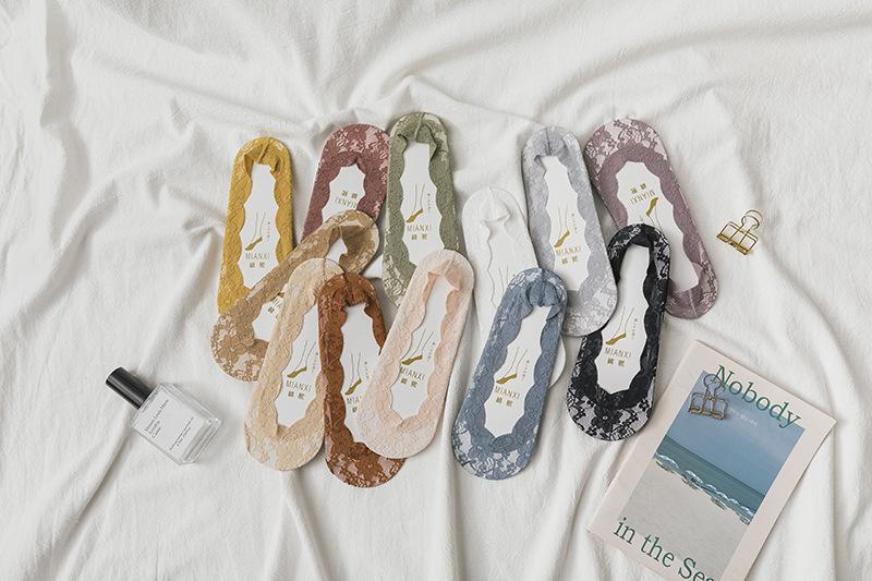Calcetines invisibles de encaje sexys para mujer, de boca baja, de silicona, antideslizantes, para primavera y verano, venta al por mayor, 2020
