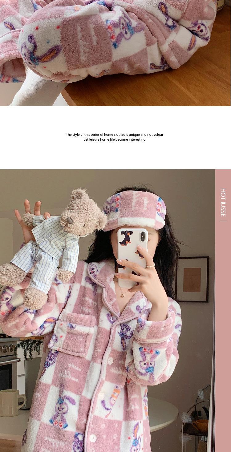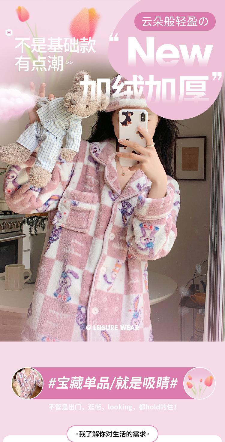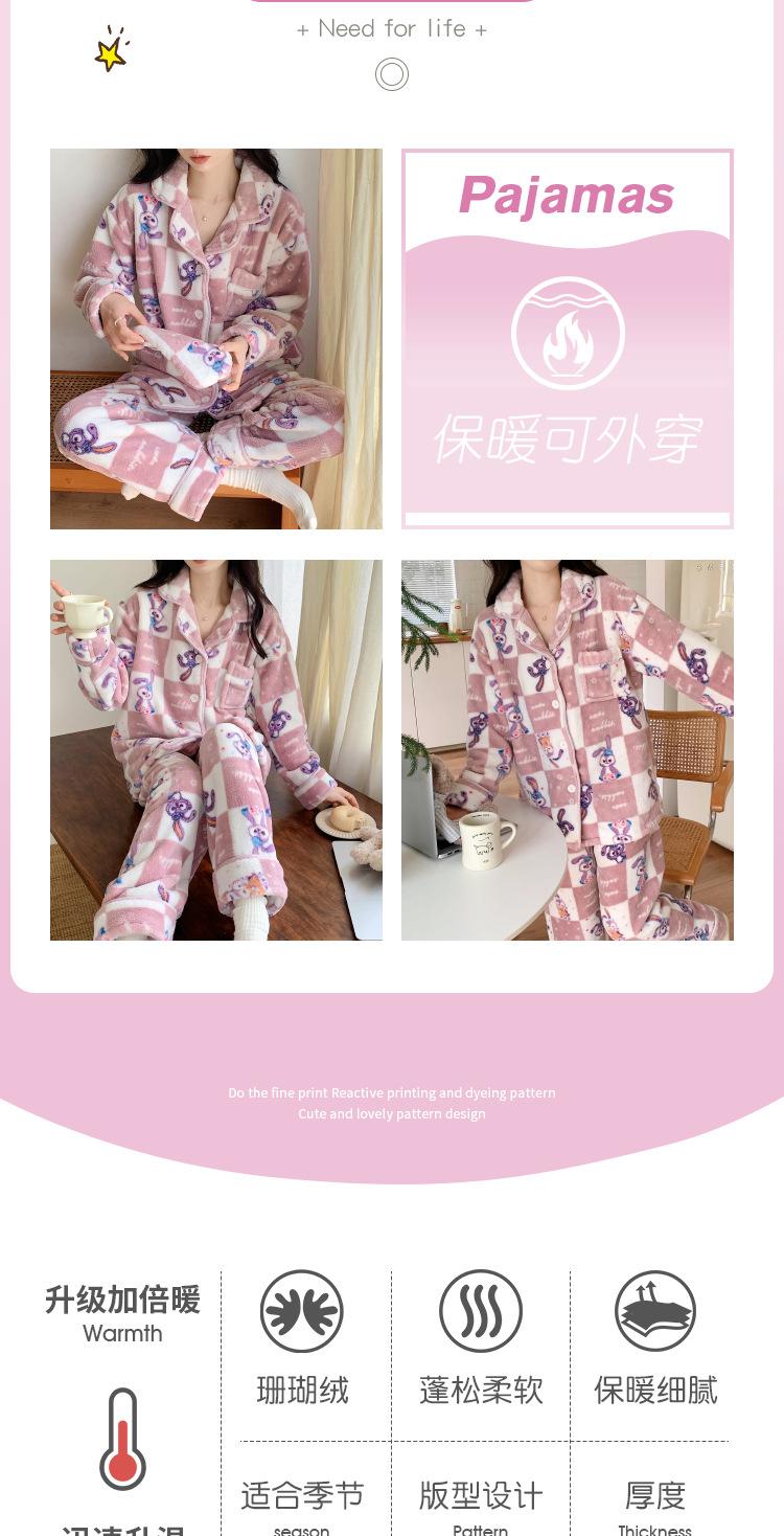 Pijama de Felpa Coral de Dibujos Animados Dailou Estrella Suave y Glutinoso Otoño e Invierno para Dama Grueso con Forro Polar Cálido Traje para Estar en Casa Venta al por Mayor