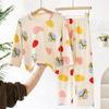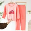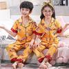 Pijamas para niños Traje de manga larga para niños Ropa de aire acondicionado para niñas Seda de hielo Verano Delgado Ropa familiar para niños de mediana edad Ropa para el hogar