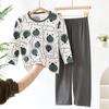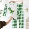Hi-Long Sleeve Ice Silk suit) Plaid Dinosaur