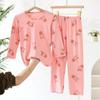 Hi-Long Sleeve Ice Silk suit) Pink Bear