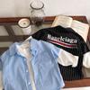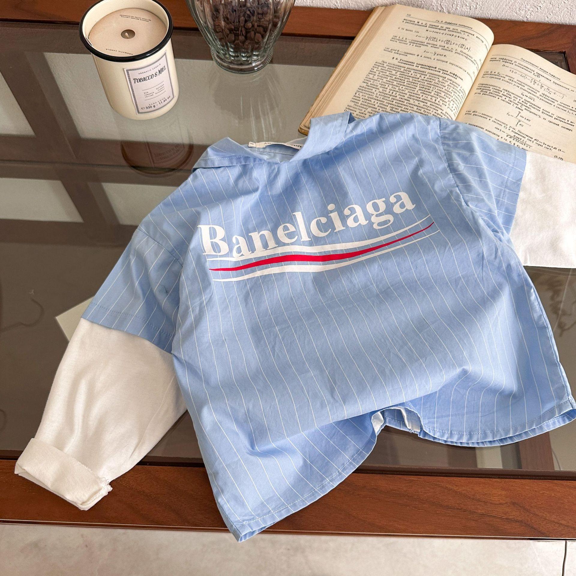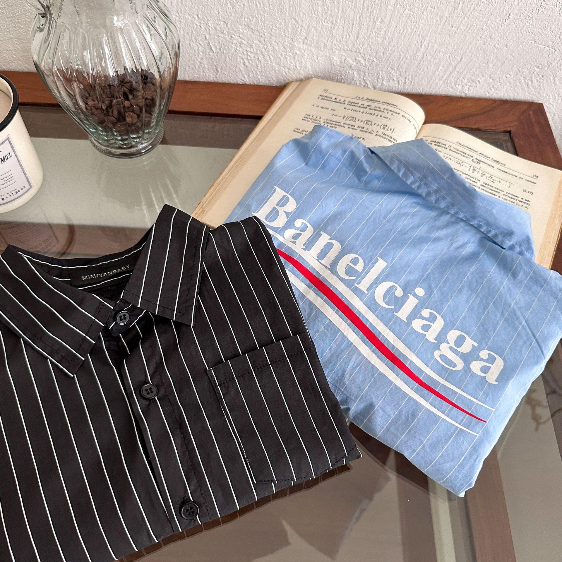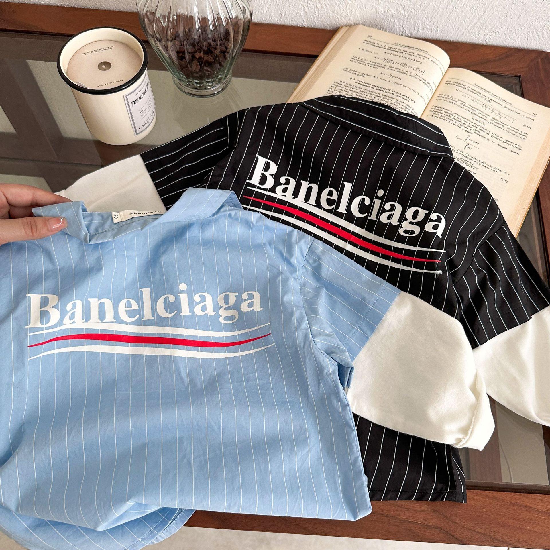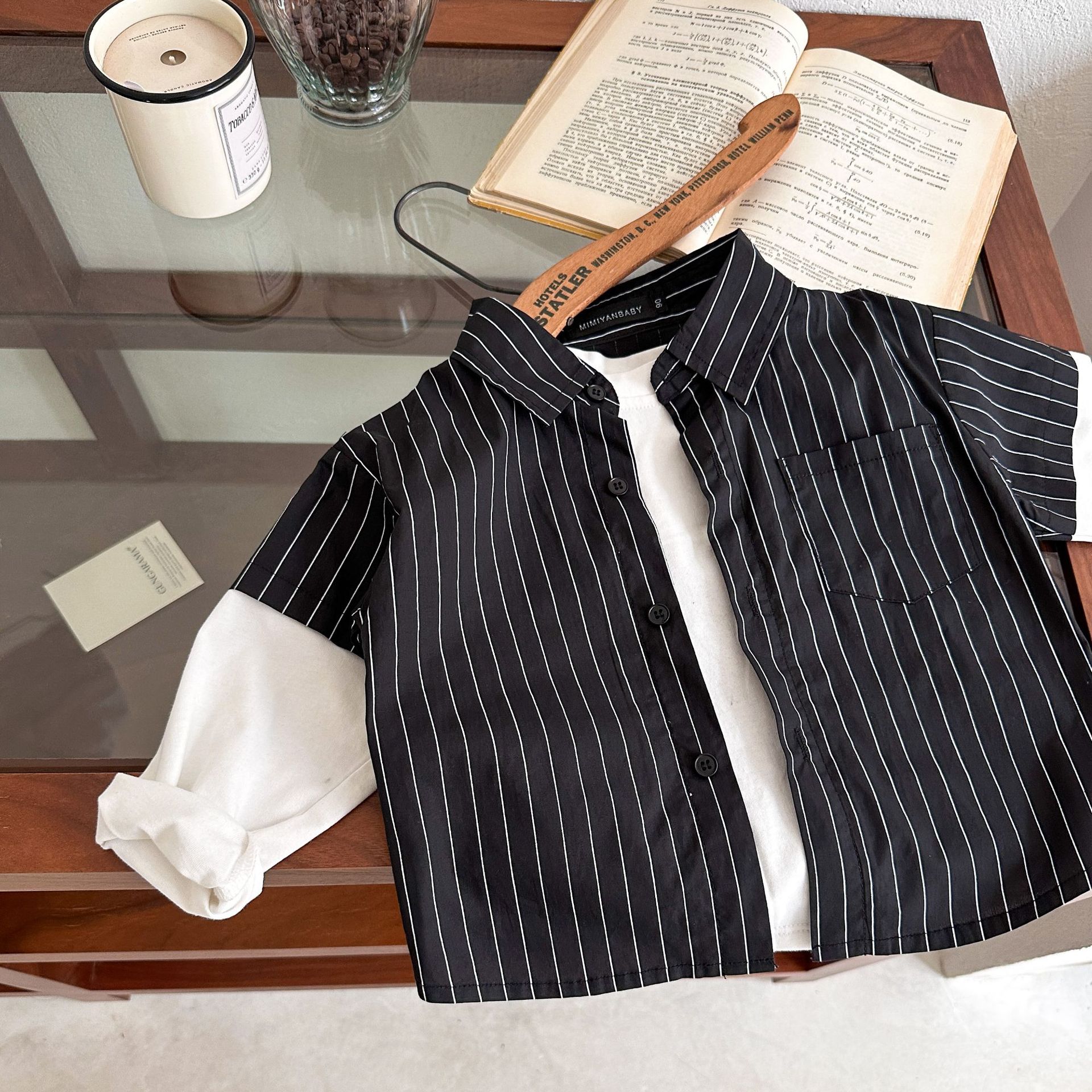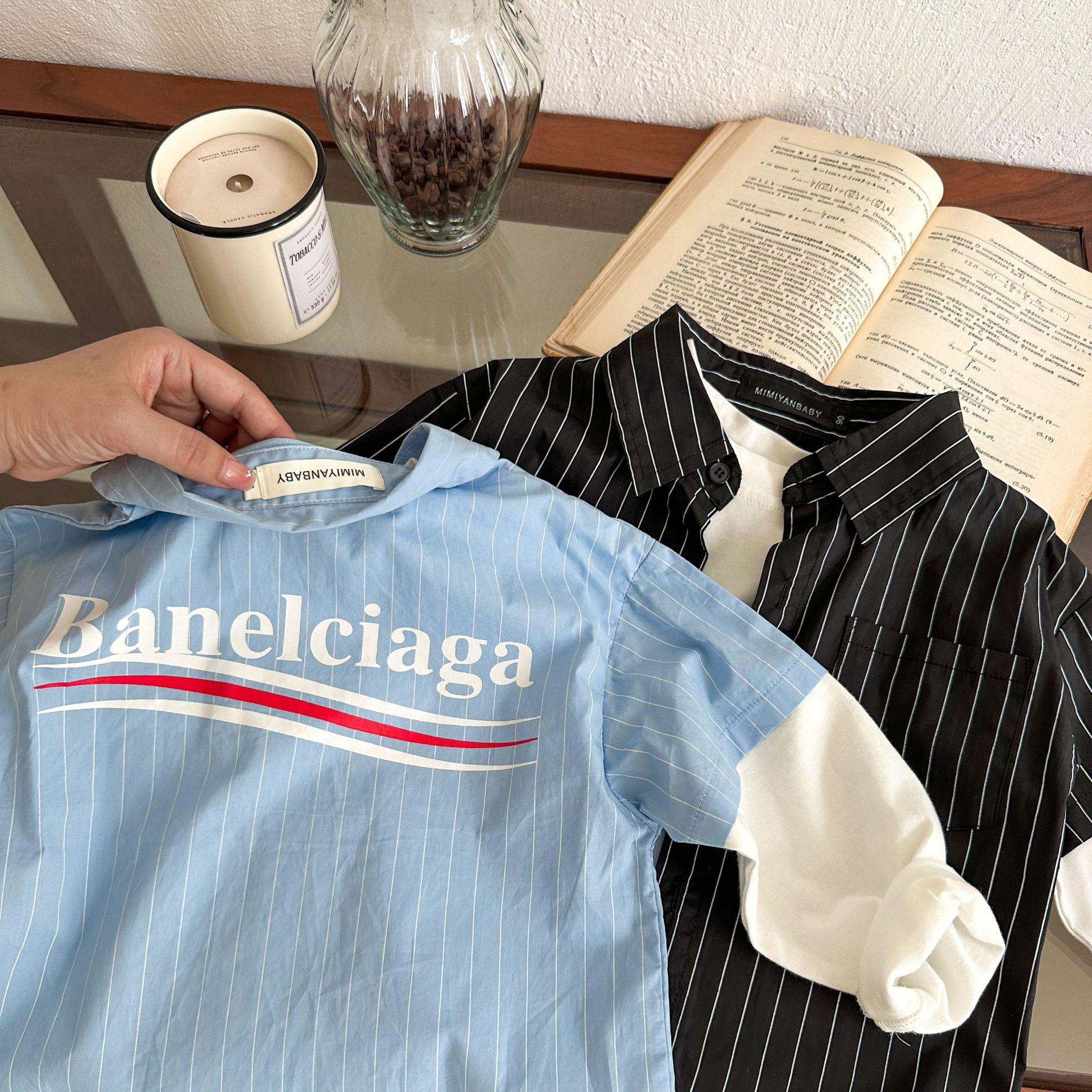 Camisa infantil de primavera 2024 con estampado de rayas para niños y niñas, chaqueta con letras para bebés