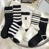 Calcetines de Media Caña para Mujer Ins Trendy Primavera y Otoño Simple Japonés Coreano Versátil Letra Patrón Oscuro Blanco y Negro Calcetines Largos