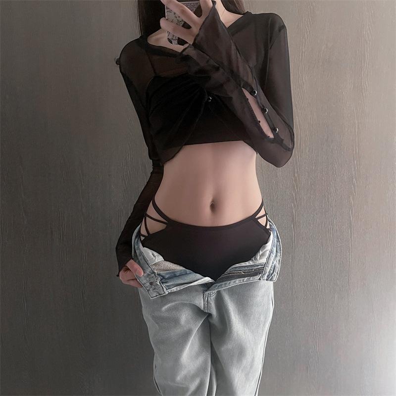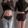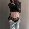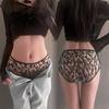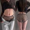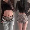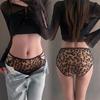 Ropa Interior de Malla con Estampado de Leopardo para Mujer, Transpirable y Cómoda, Tirantes Finos que Cubren la Cadera, Ropa Interior de Cintura Media Elástica con Abertura Cruzada para Mujer
