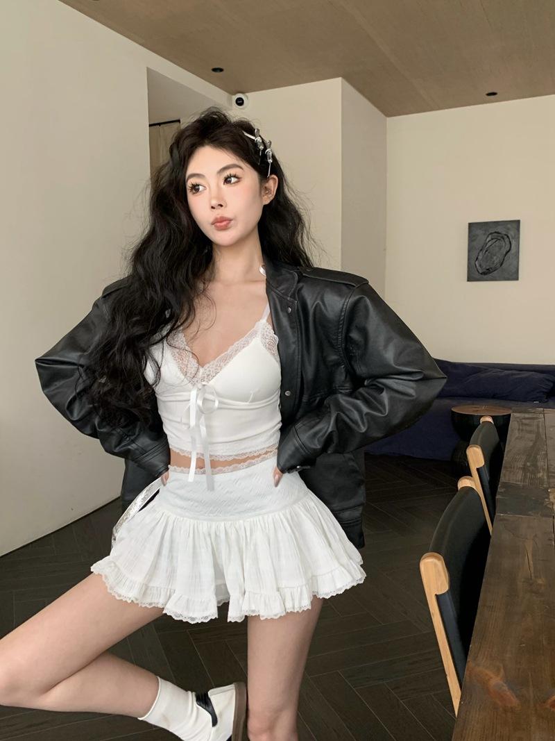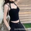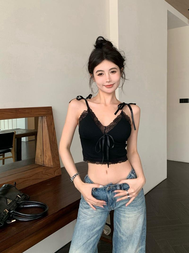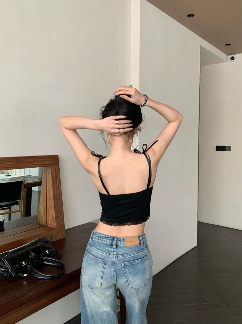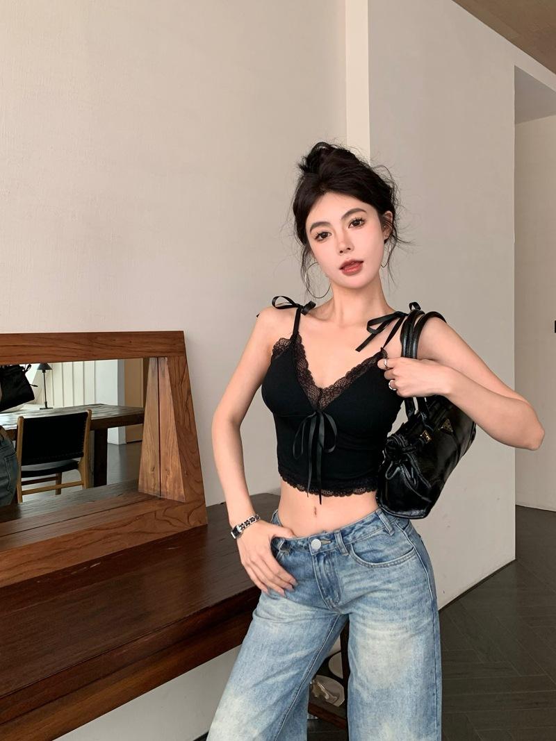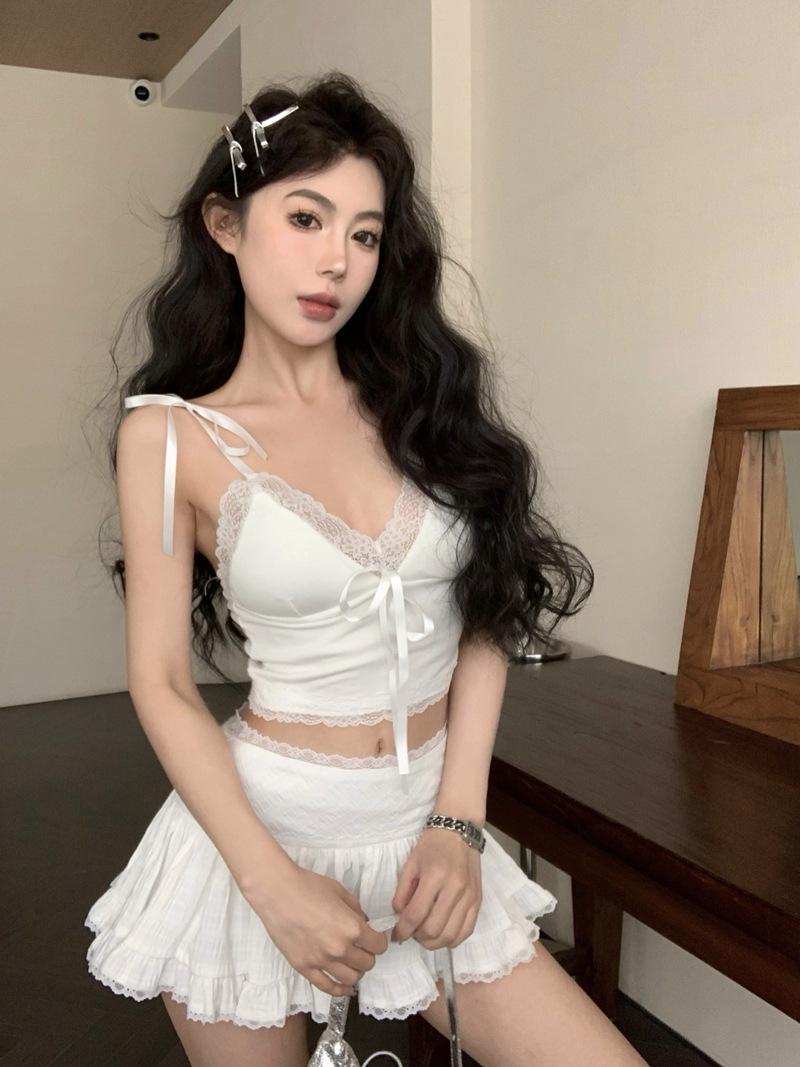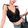 Camisola de Verano Ajustada con Lazo y Encaje para Mujer, Deseo Puro, Chica Caliente, Ajustada, Interior, Top Corto